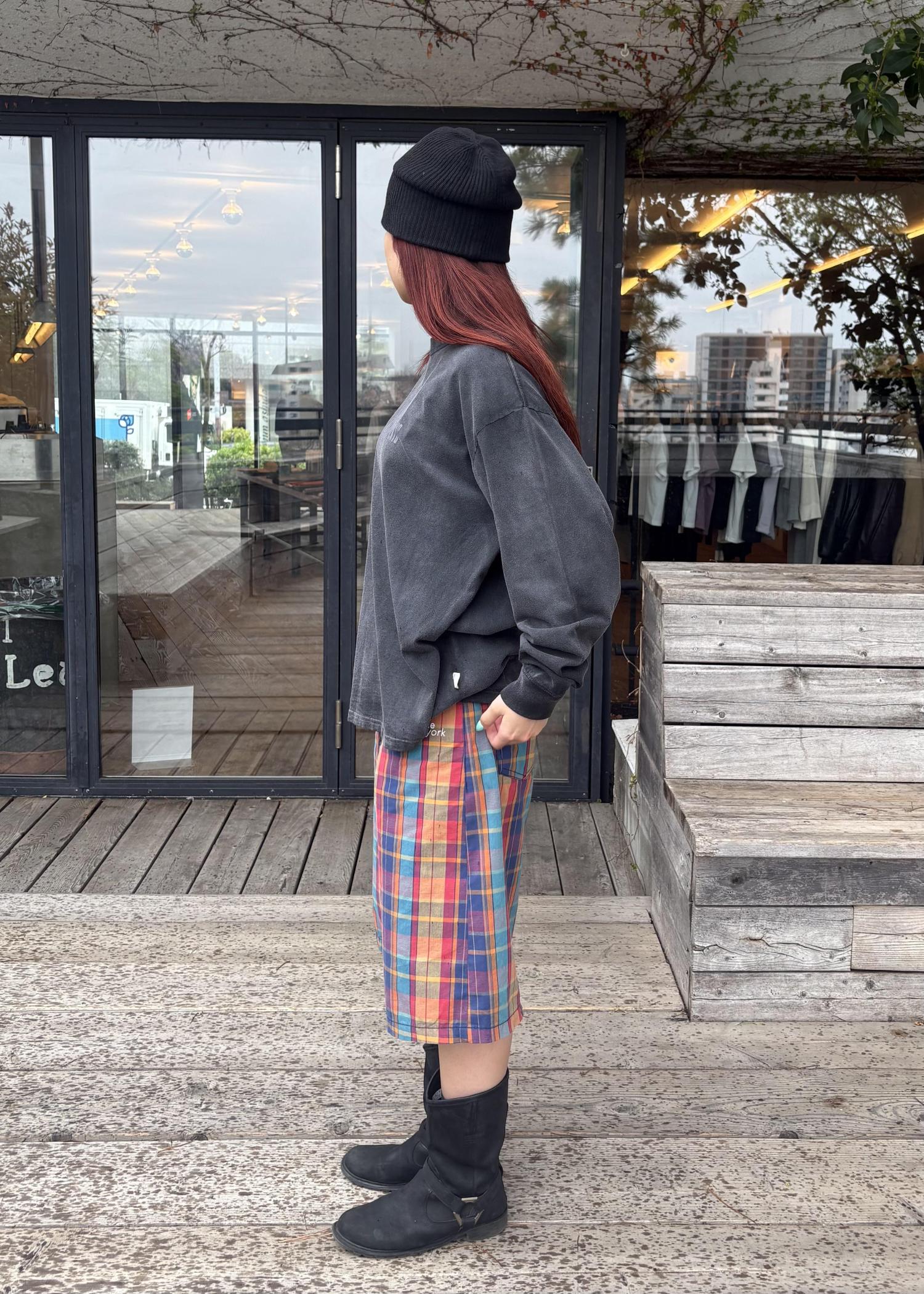 程よい生地感のロングスリーブTシャツと、大きめのバギーショートパンツで合わせたがっつりメンズコーデです。