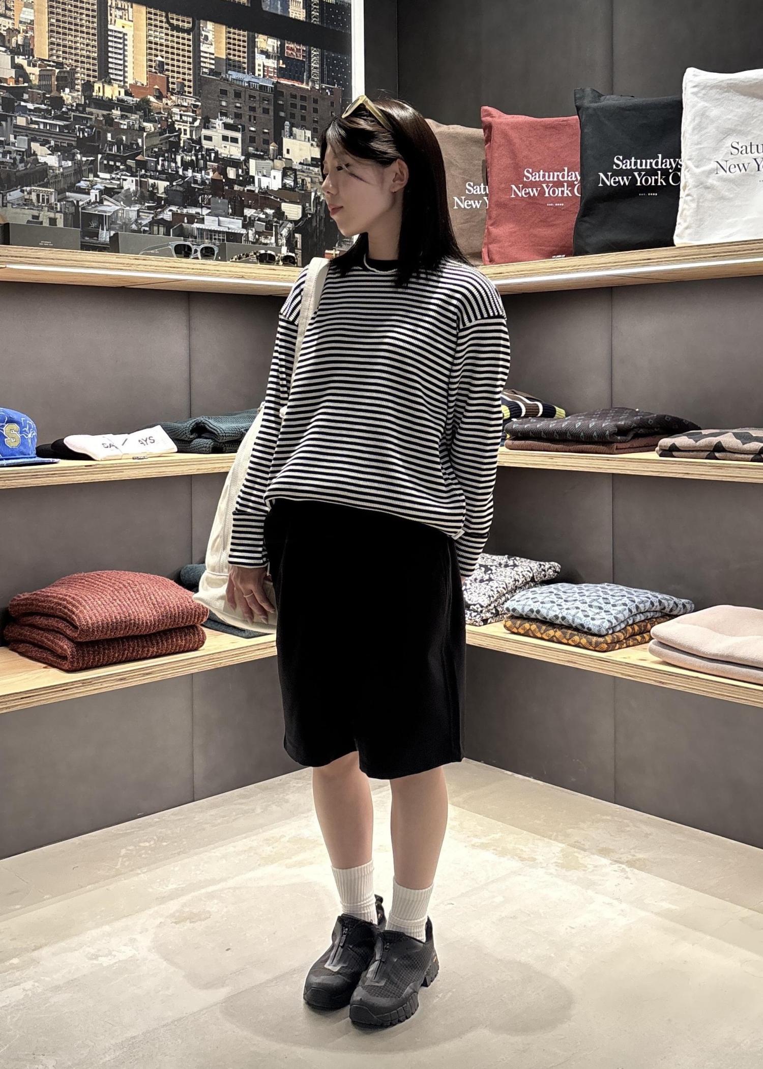 まだまだ人気のサーマルTは、温かくありつつも、通気性がいいのでその日の気候に合わせてボトムス選びを楽しめます♪黒のショートパンツは着回し無限大なので1つ持っておくと便利です!