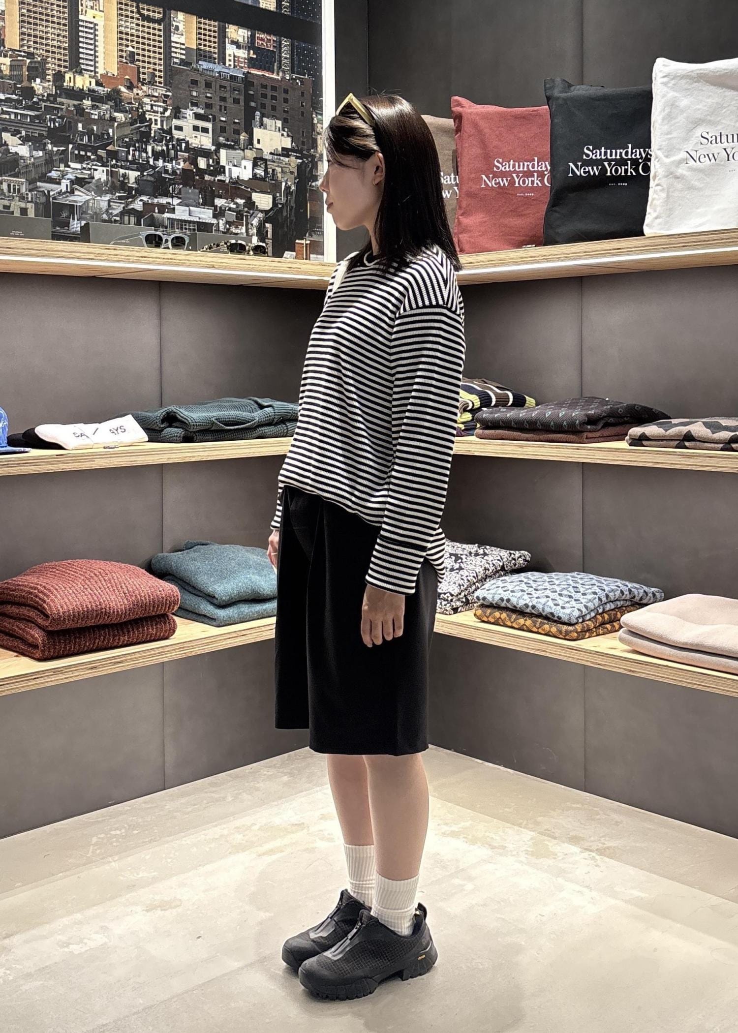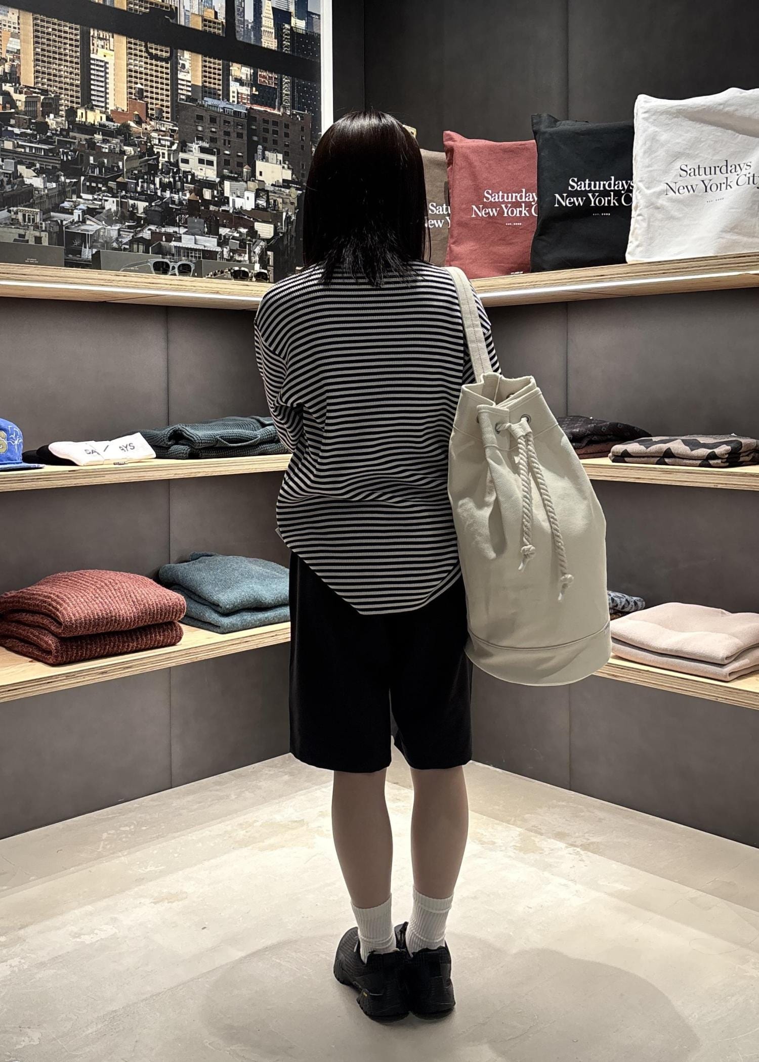 ボンサック型のバッグは底面にSaturdays NYCのロゴがプリントされており、さりげなくもポイントになりとても可愛いです♡