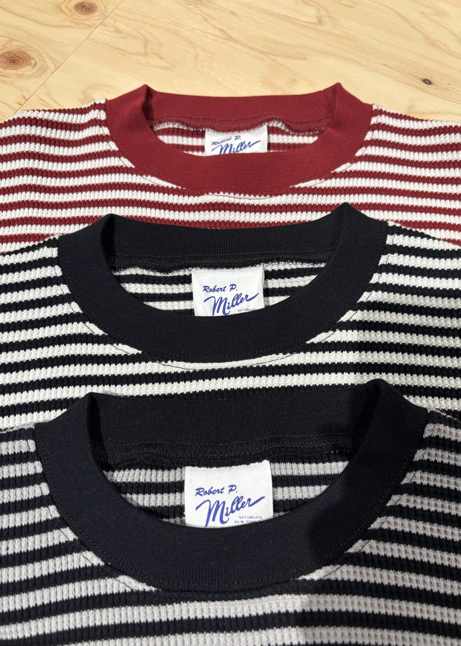 サタデーズNYCオリジナルの配色で構成されたボーダーのワッフル生地を使用したサーマルのロングスリーブTシャツです。