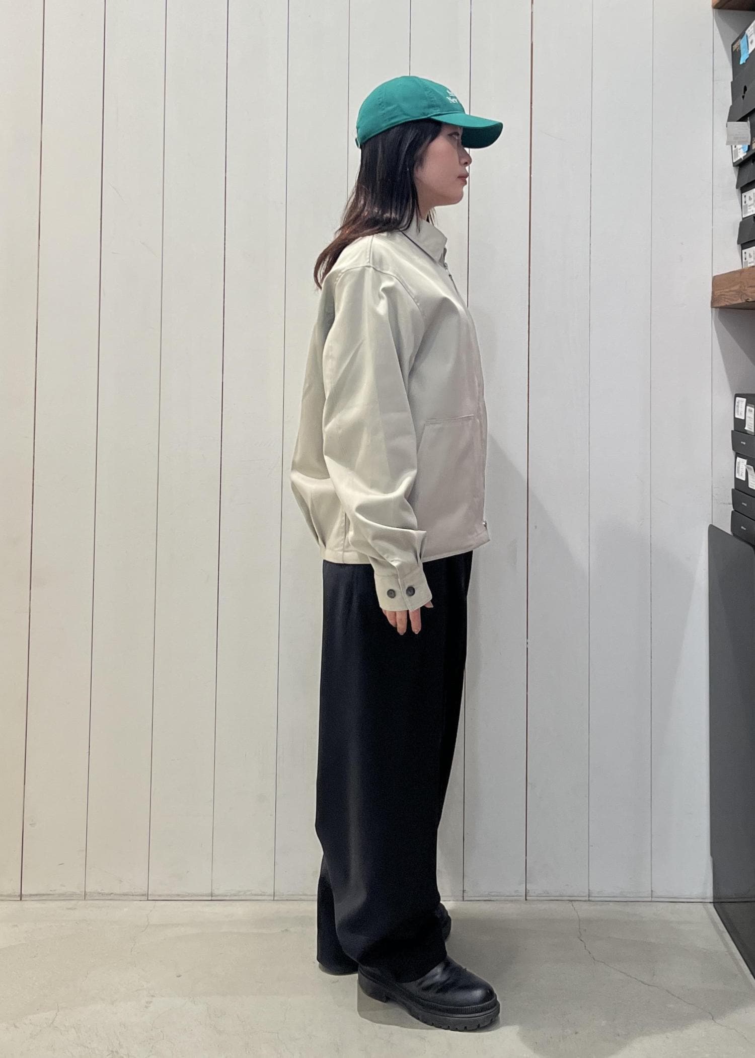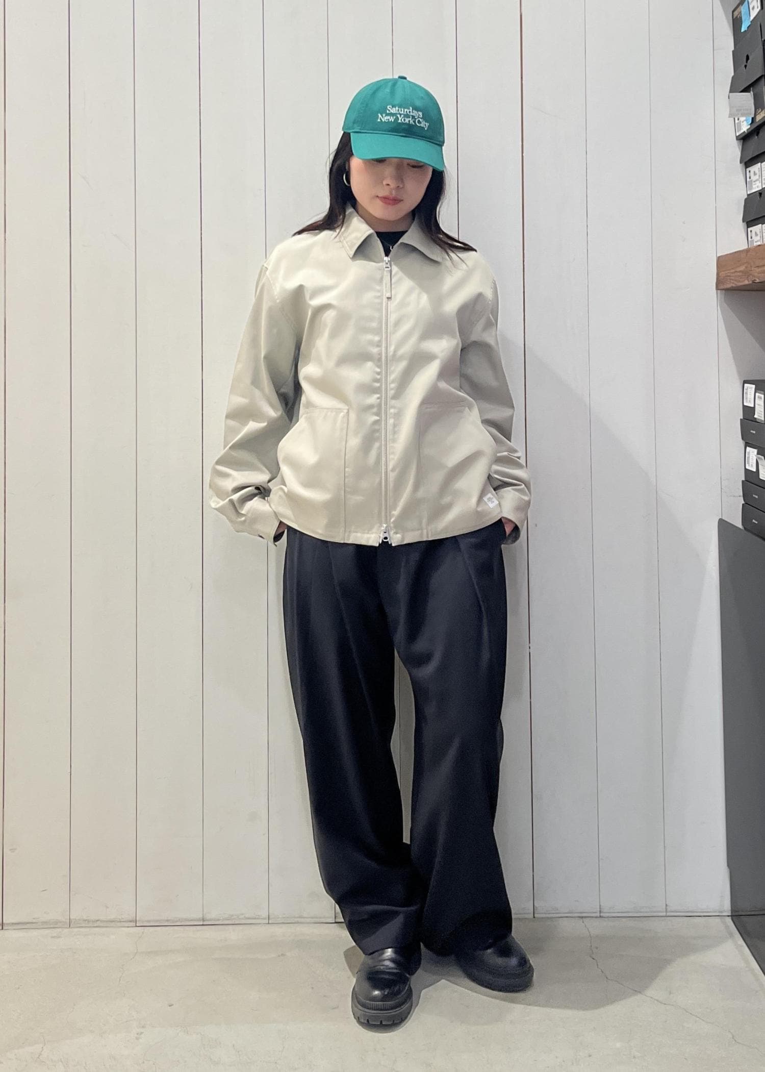 コーデの差し色にグリーンのキャップをプラスしました!