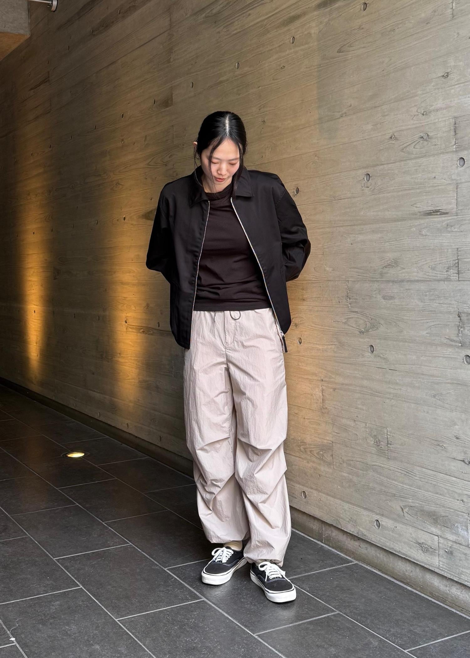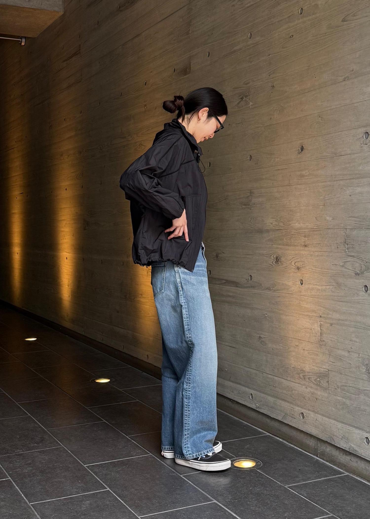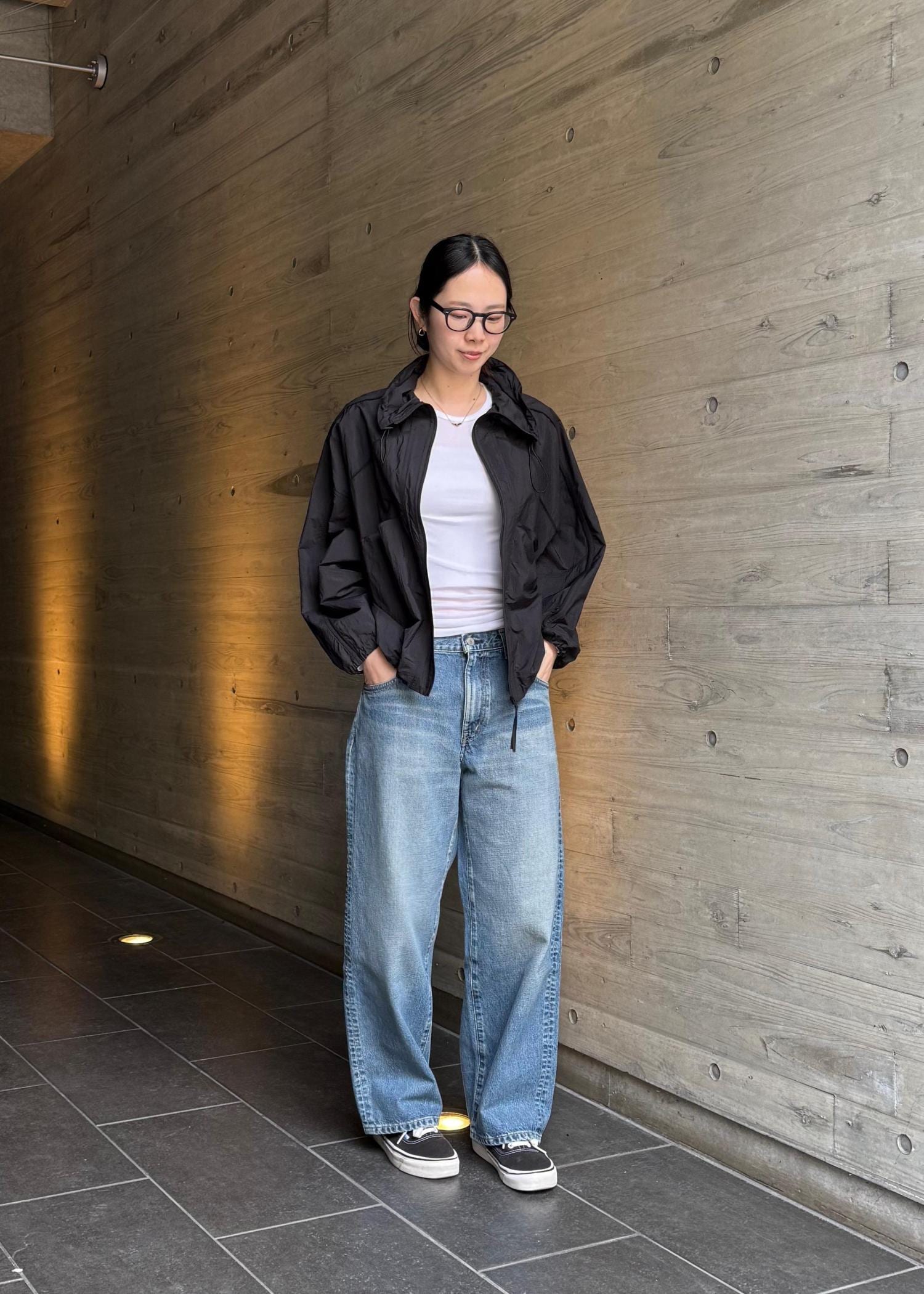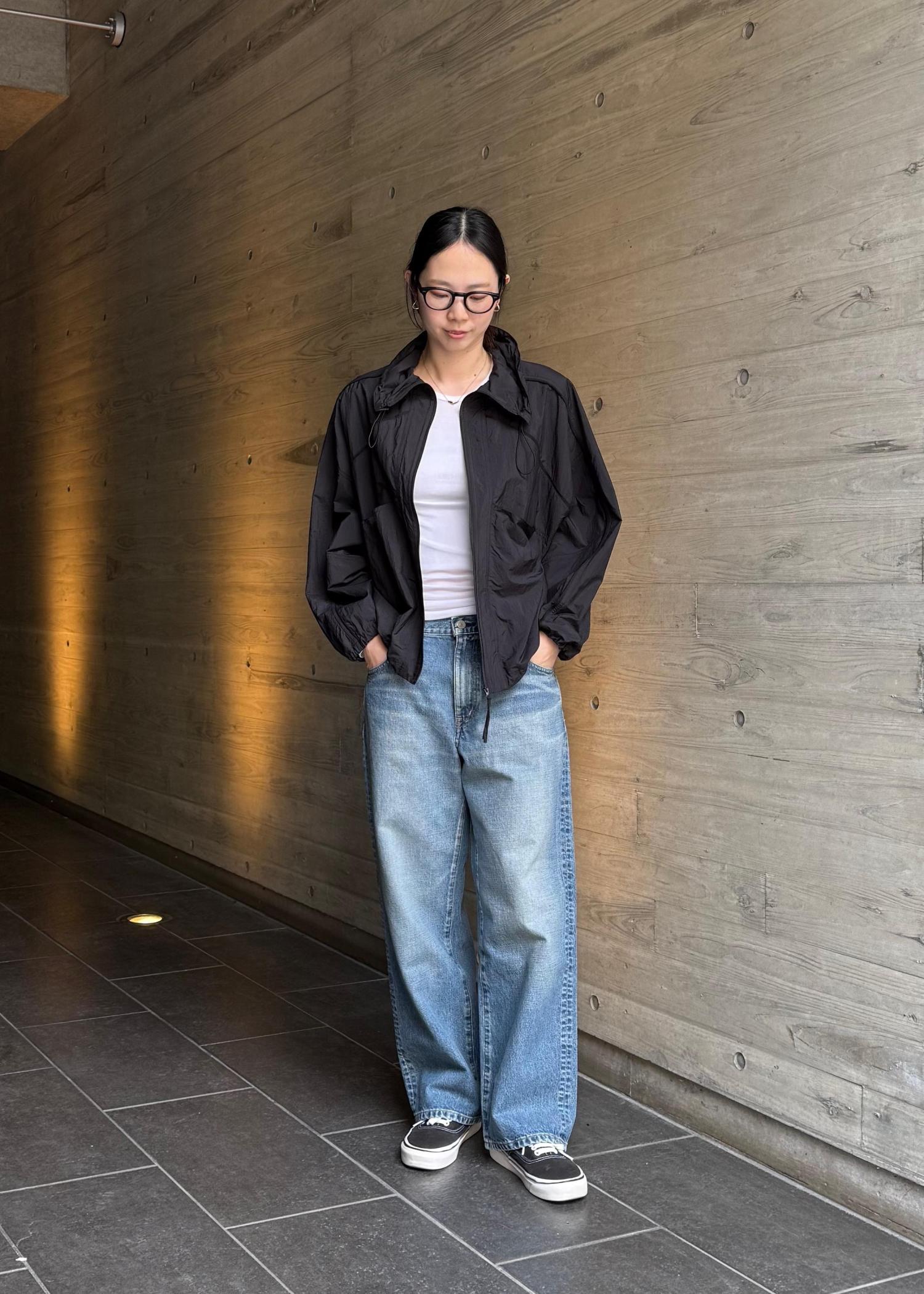 ライトウェイトのナイロンを使用した、リラックスフィットのライトブルゾン。 レギュラー丈でフロントファスナー仕様。