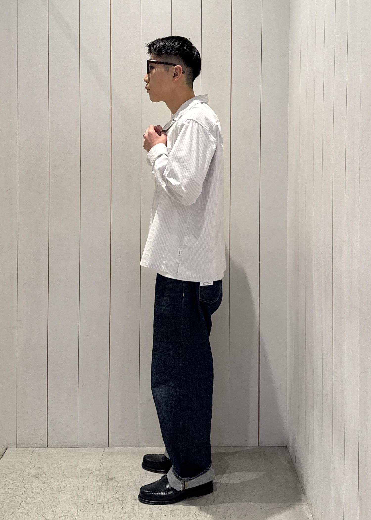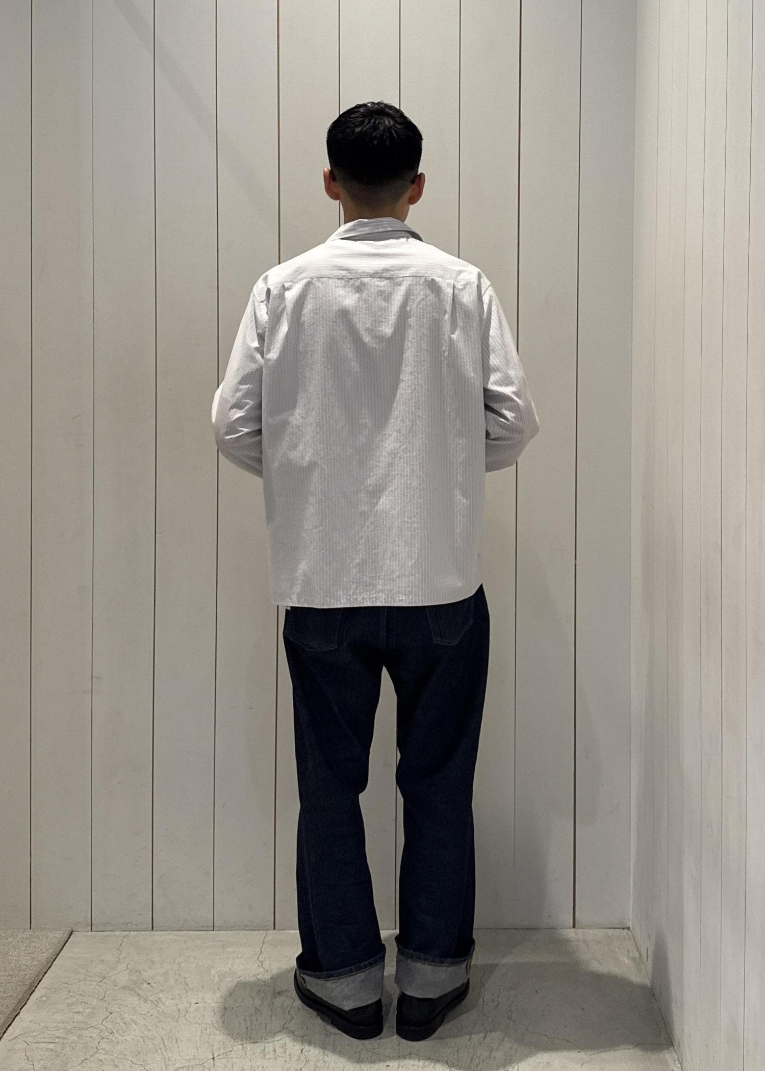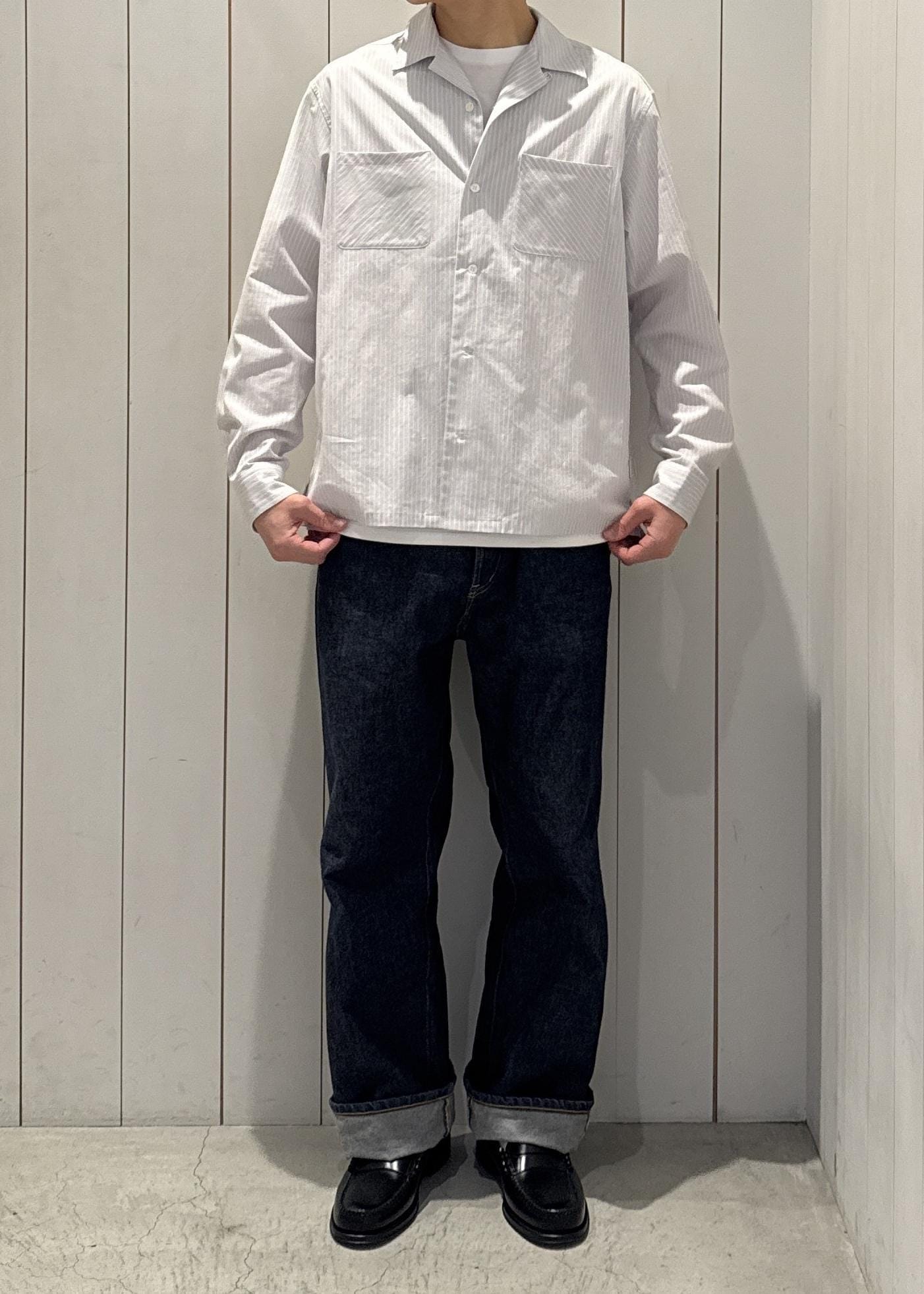 特徴のある素材感と落ち着いた配色のストライプ柄を活かしたミニマルなデザインは、汎用性が高い大人のオープンカラーシャツに仕上がっています!