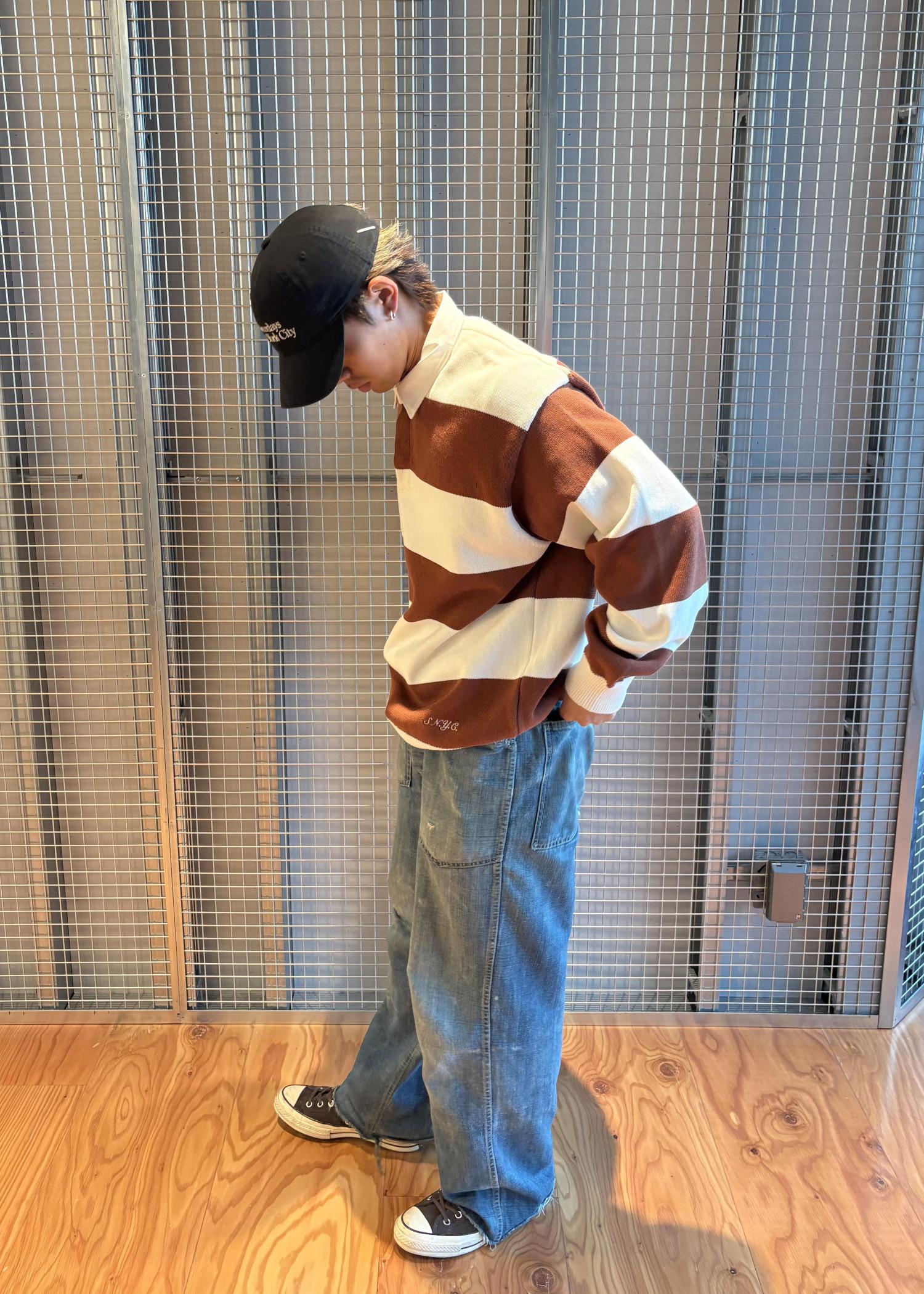 クラシックでありながらトレンド感のあるラガーシャツをニットに!