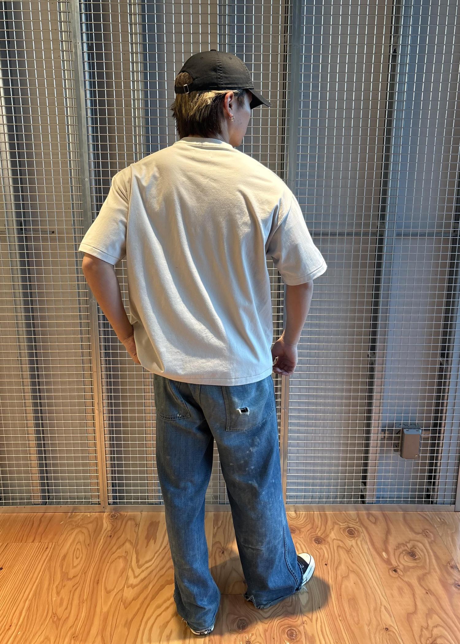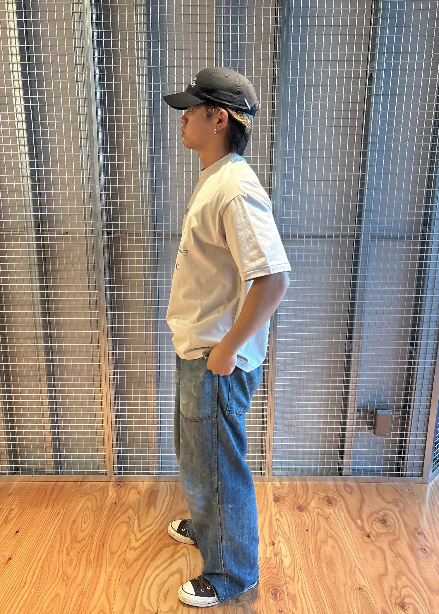 コットン素材にオゾンウォッシュ加工を施したビンテージライクなアイテムでリラックスしたサイジングは現代的なシルエットになっています。