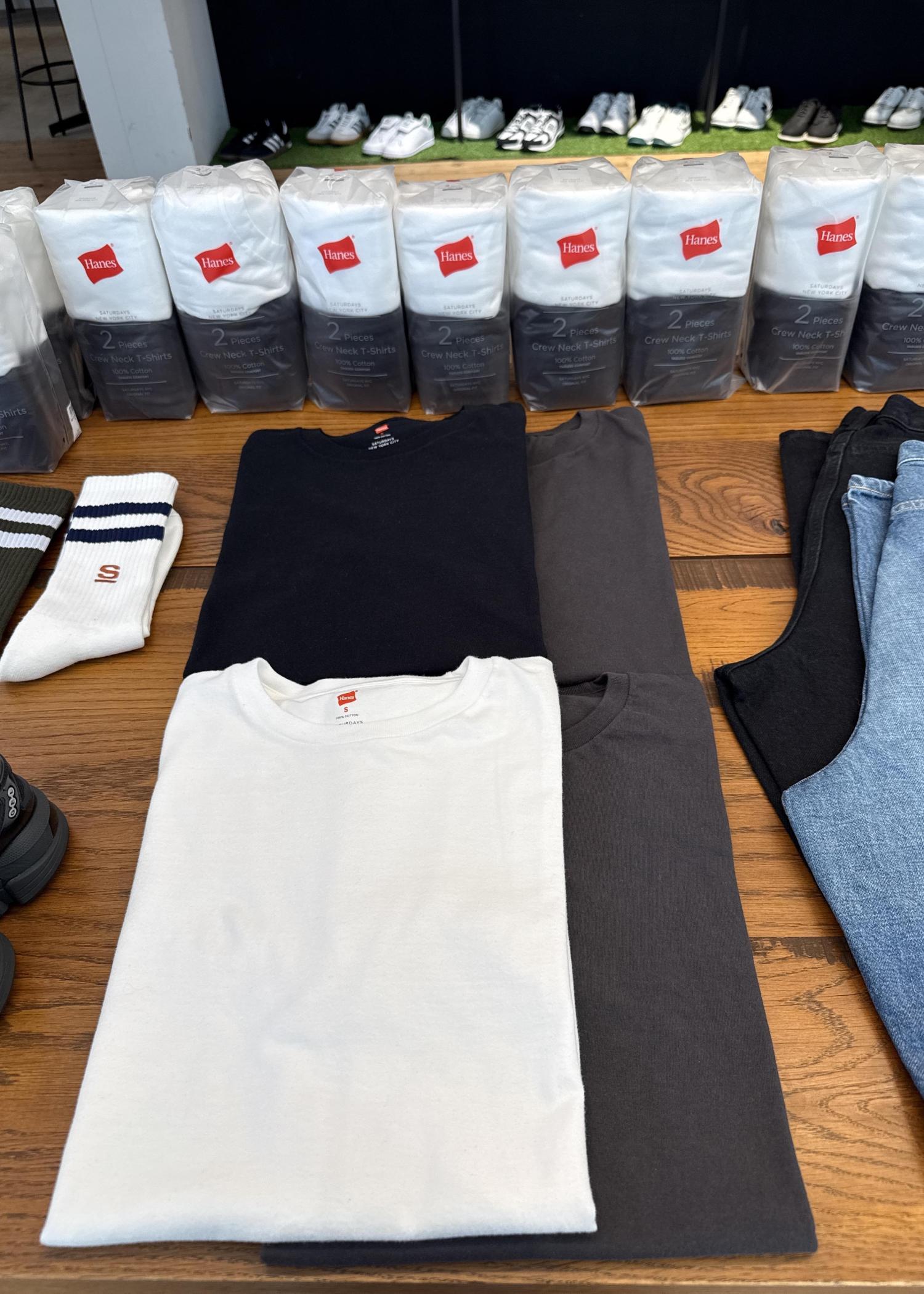別注チャコールを含むベーシックカラーの2枚セットで、ギフトにも最適なパッケージです。
