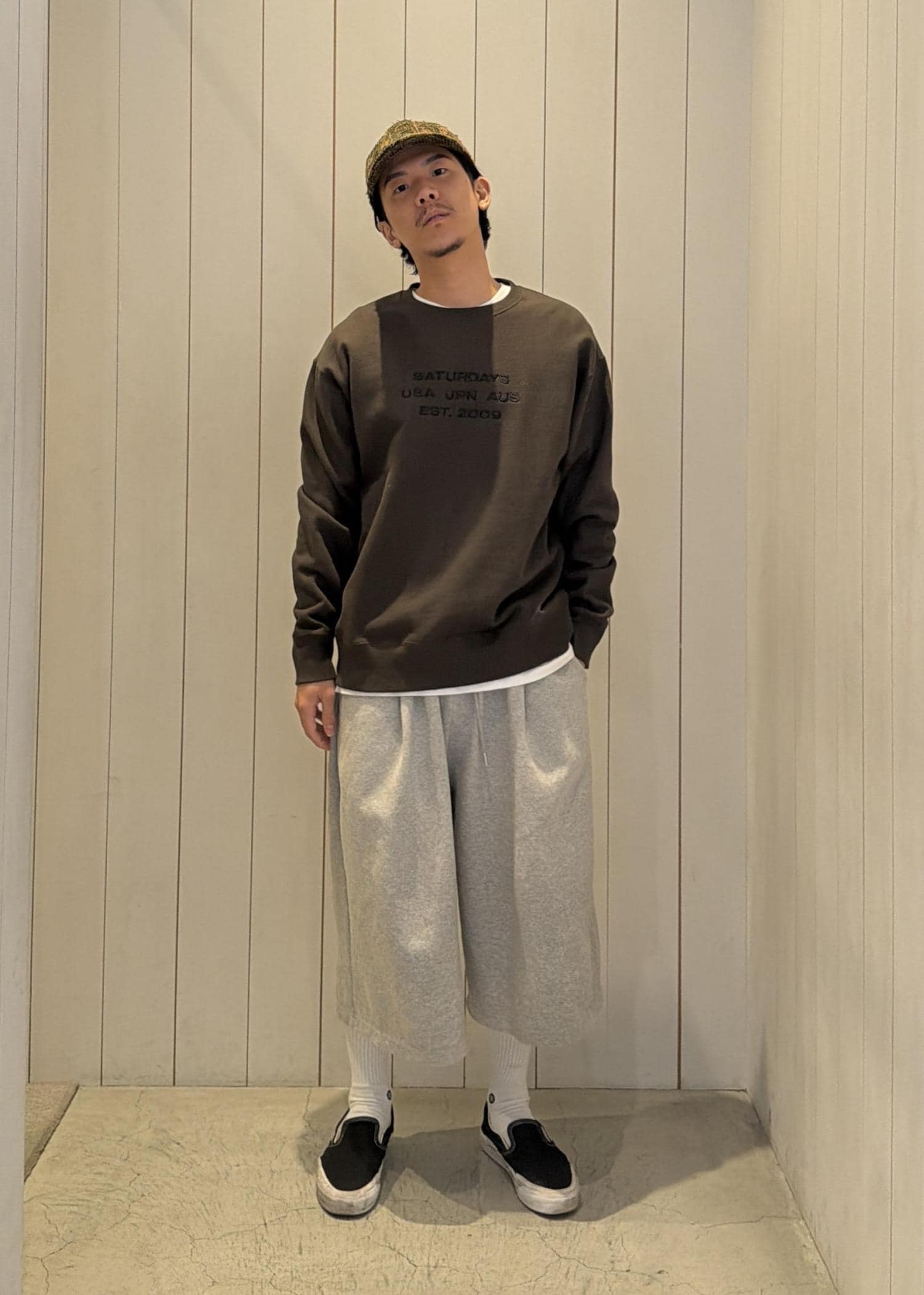 今回は、ロゴスウェットを主役にしたシンプルなスタイリング。