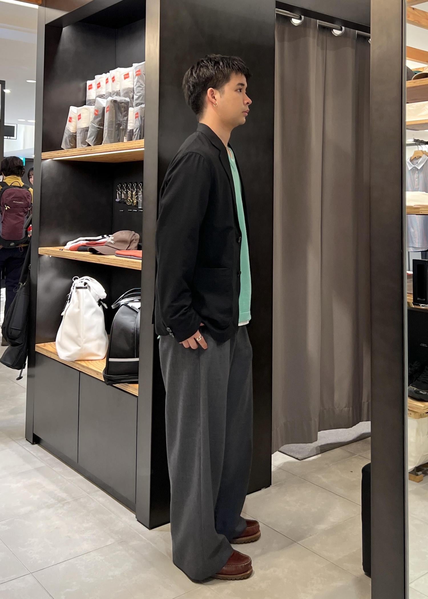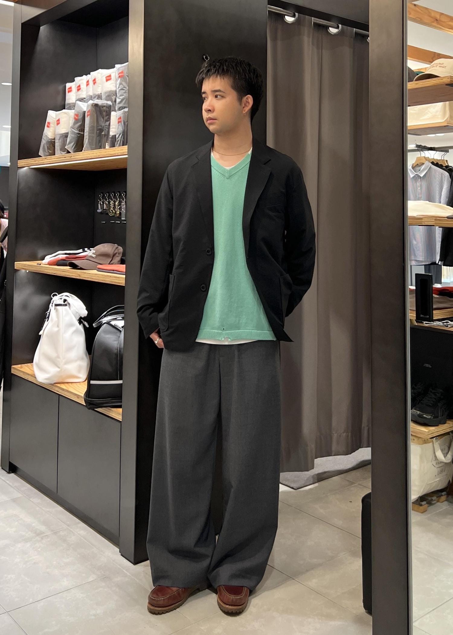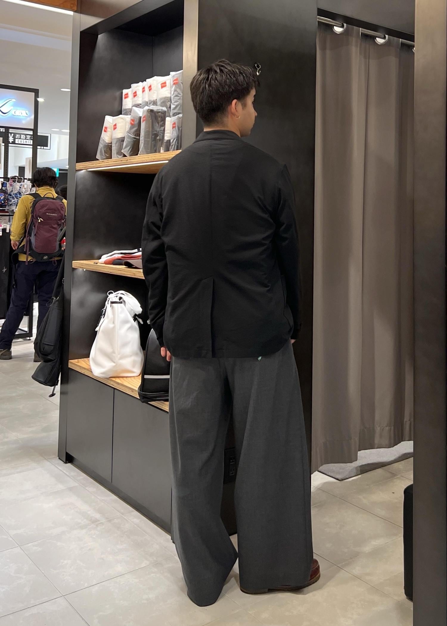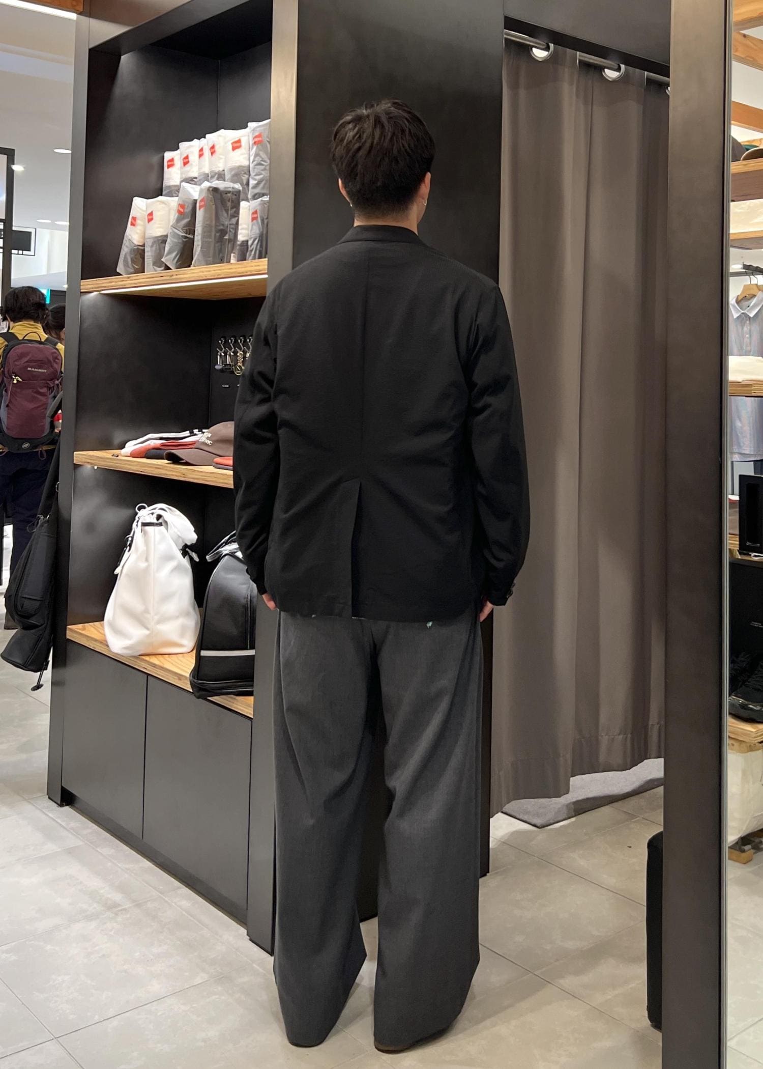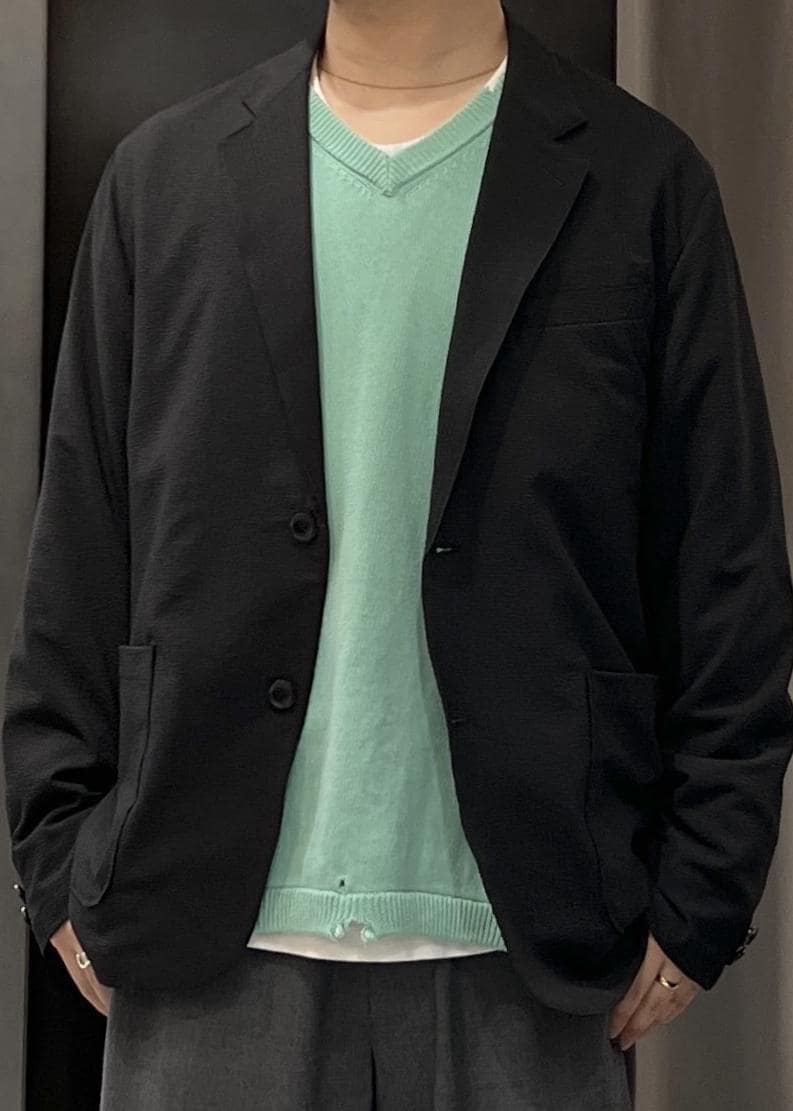 今回着用しておりますのは凹凸がありサラッとした肌触りの布帛素材を使用したテーラードジャケットです!