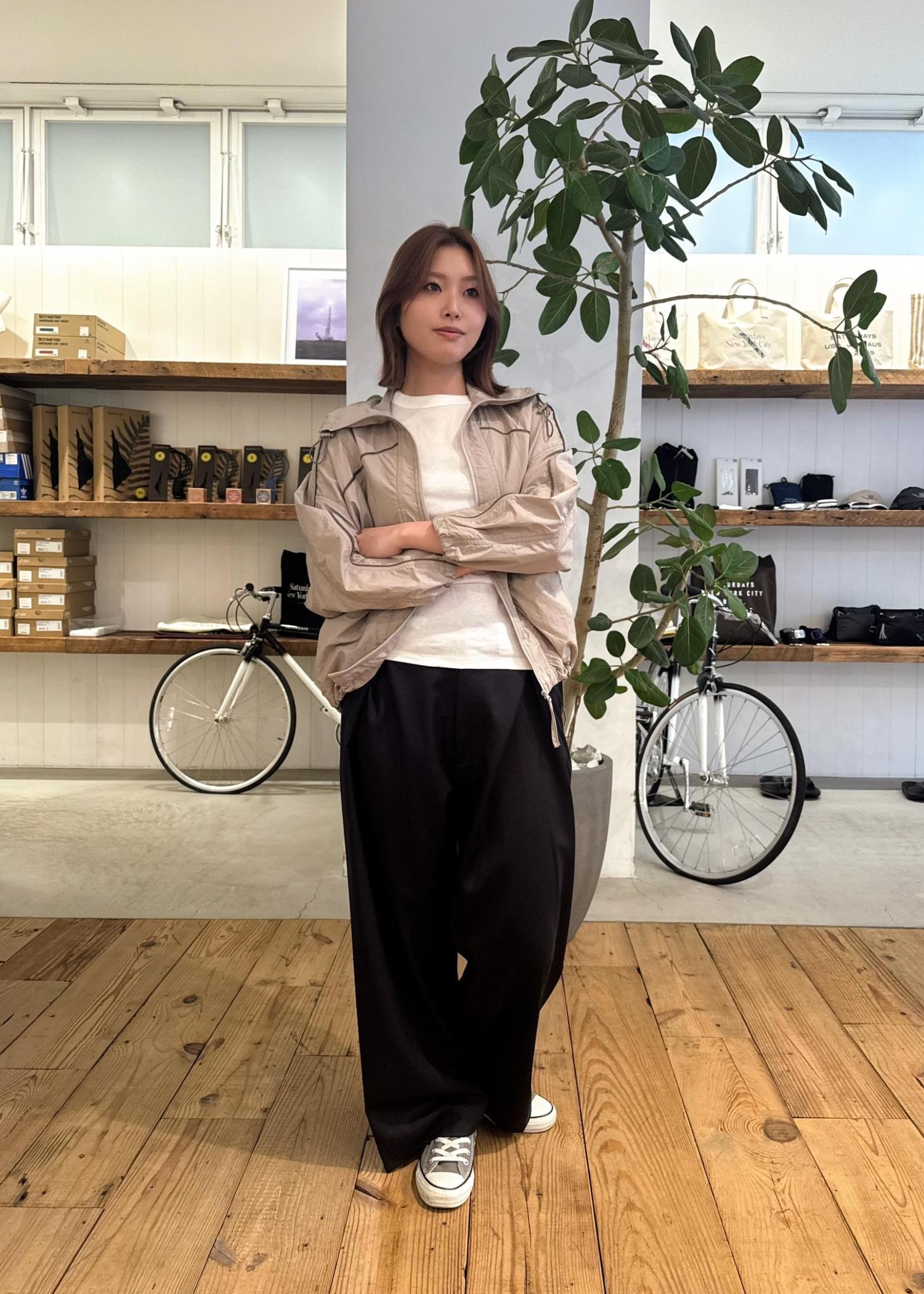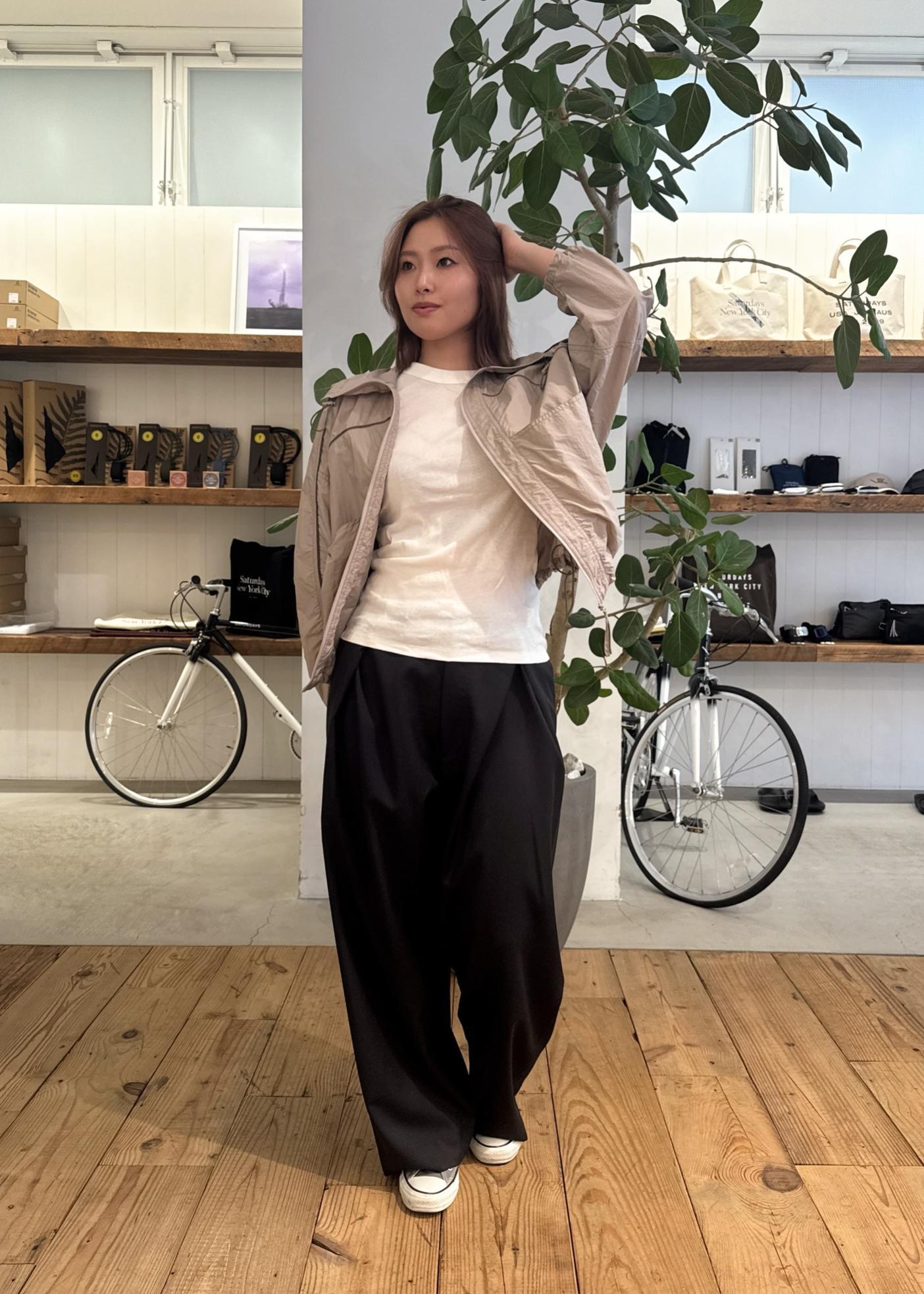 同素材のパンツと合わせれば、こなれたセットアップスタイルも楽しめる一着。軽くて羽織りやすく、季節の変わり目に頼れる万能アイテムです!