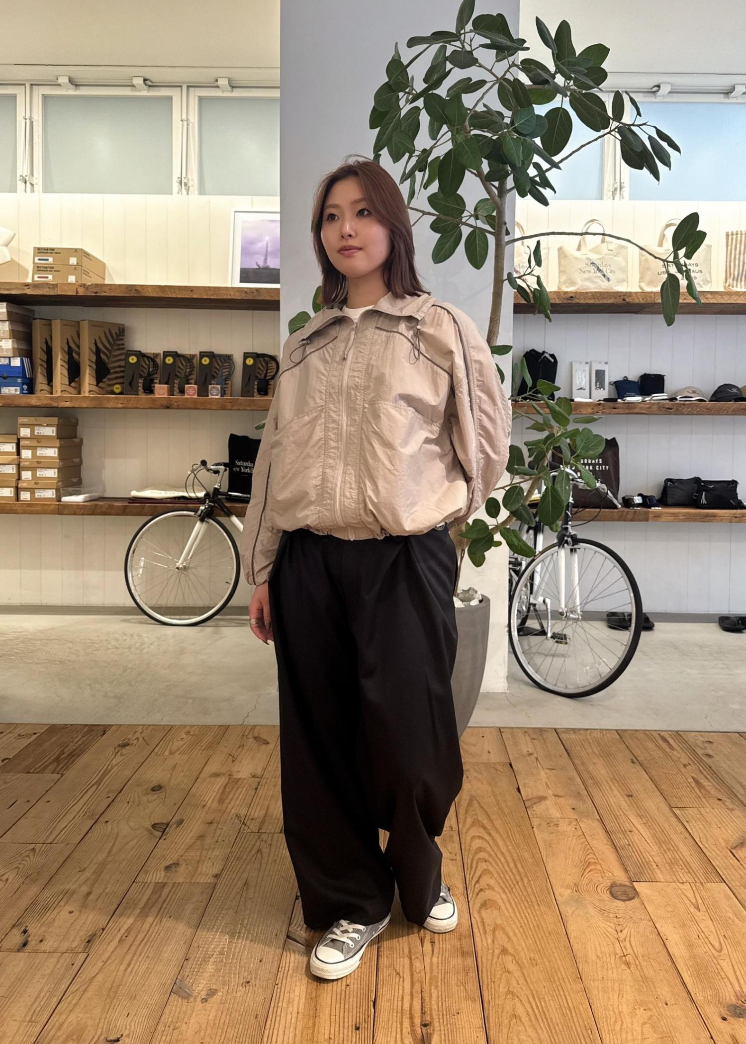 ナイロンブルゾンは3カラー展開で、同素材パンツとのセットアップも可能◎