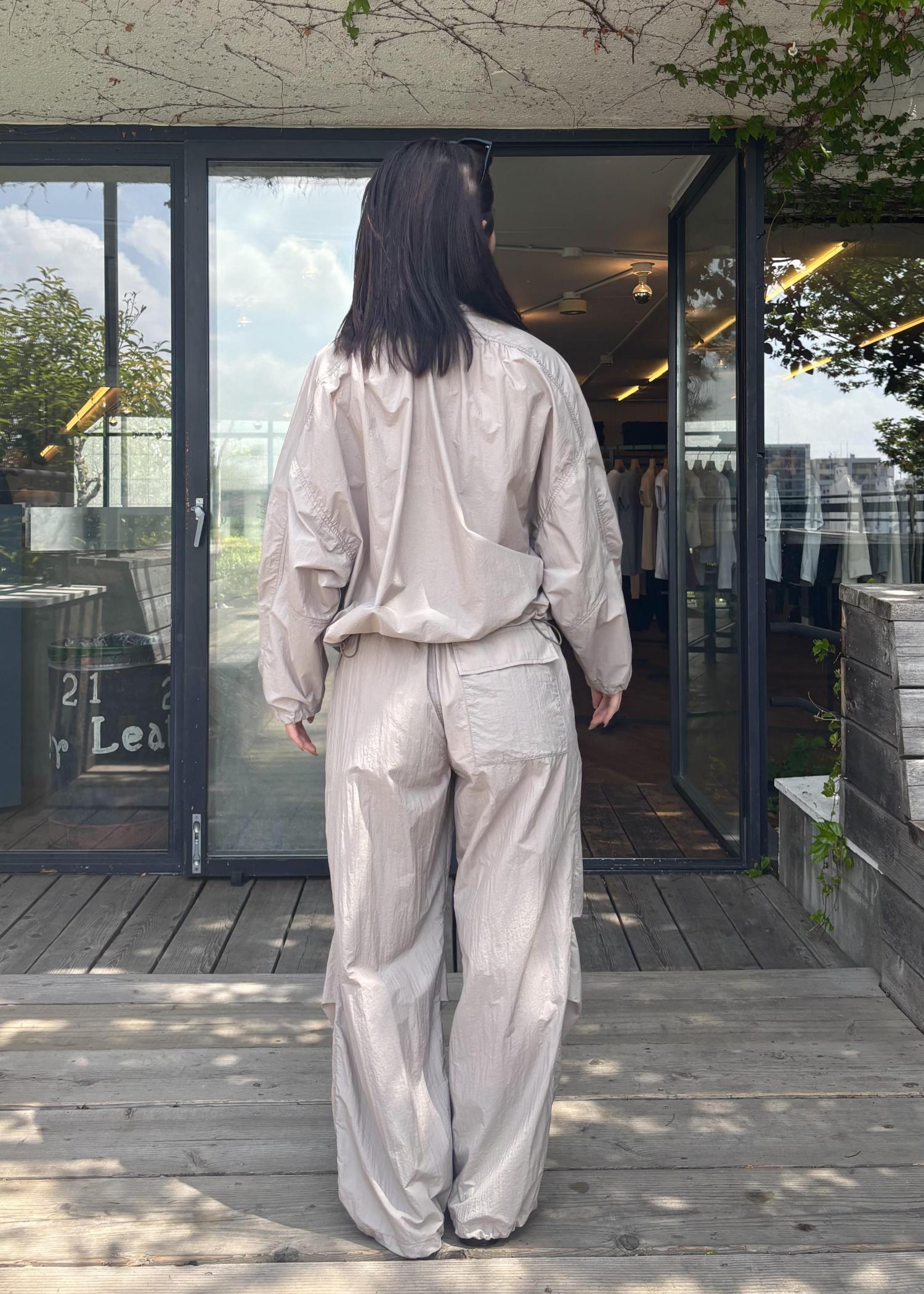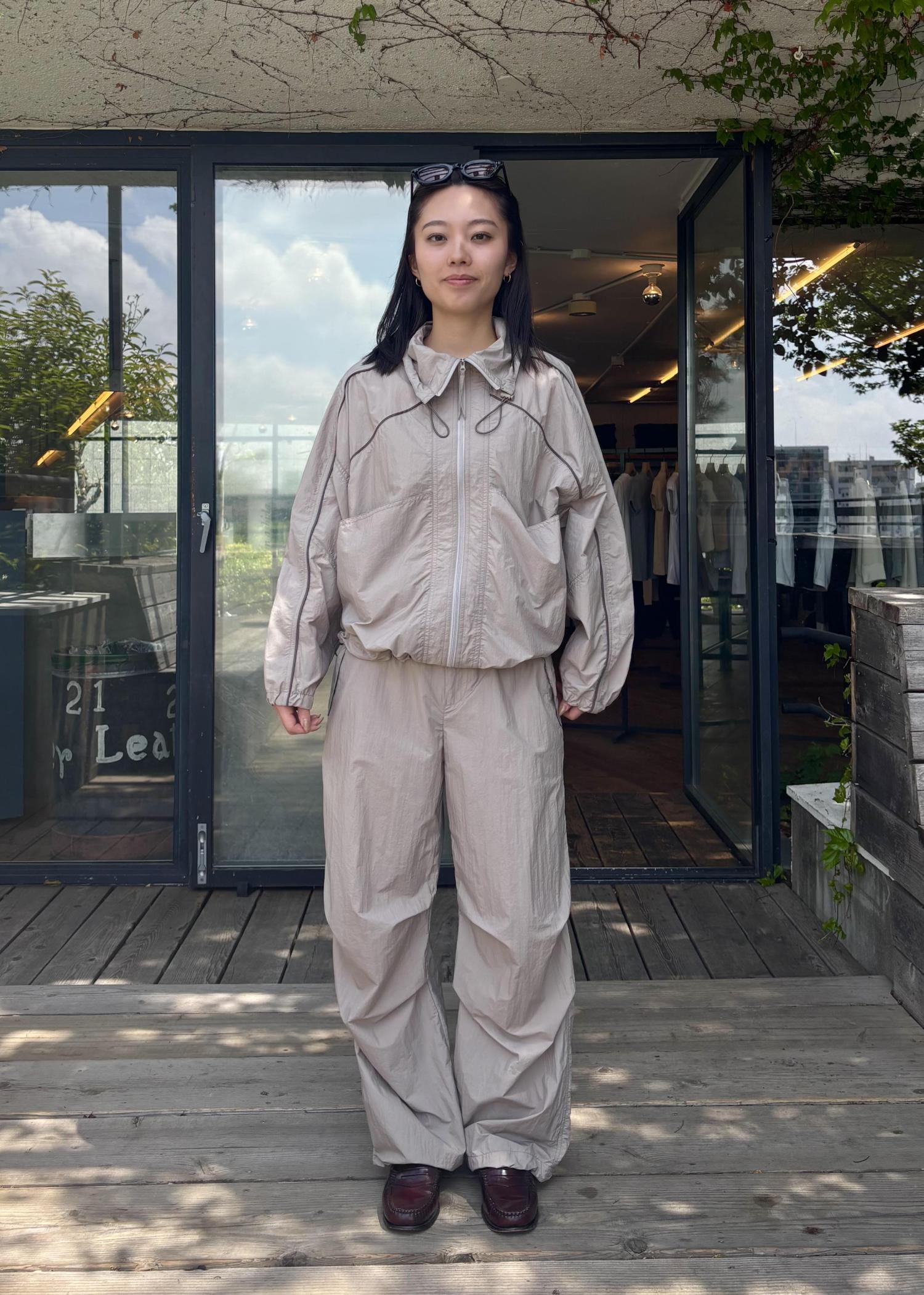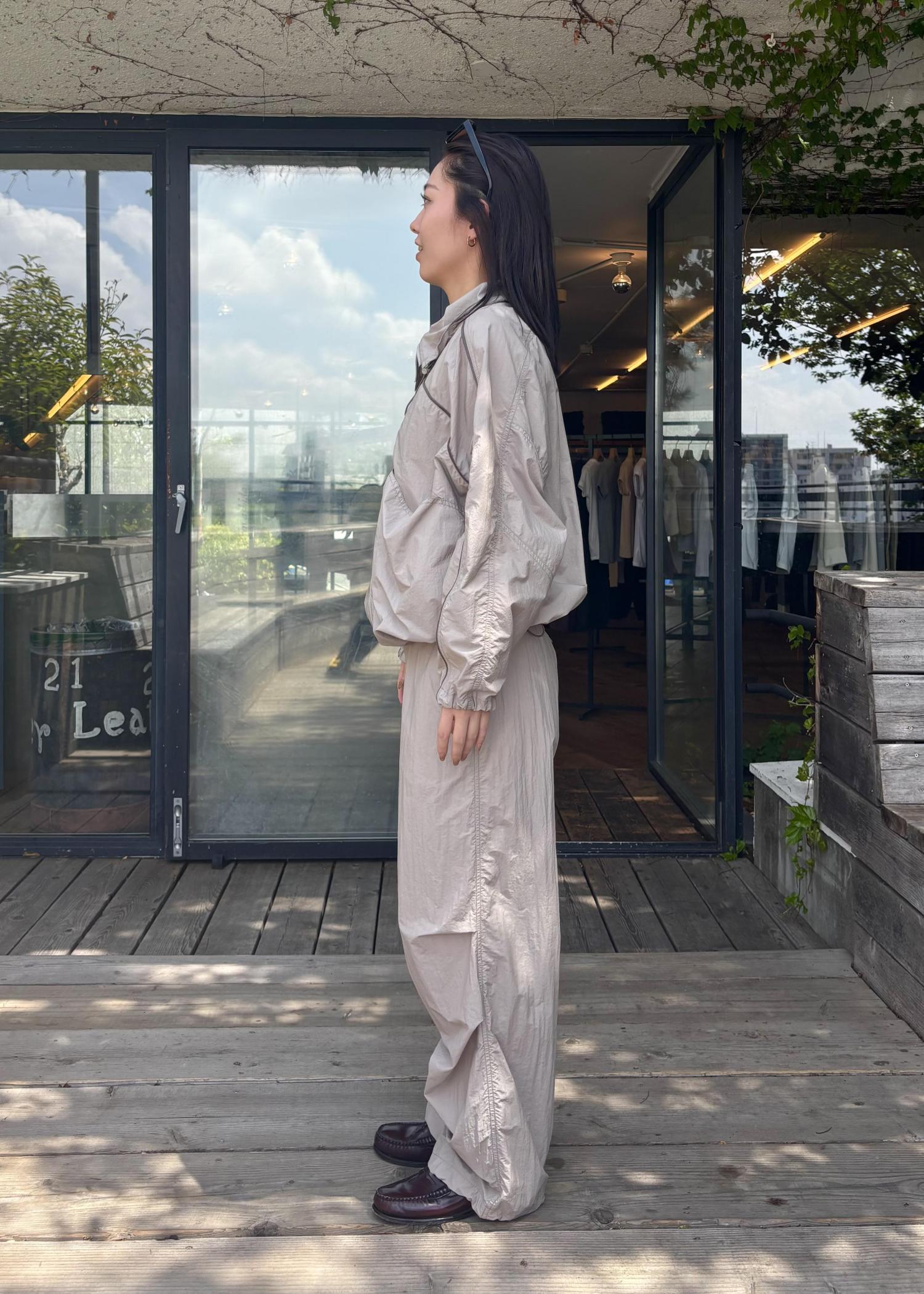 スタンドネックと裾には調節可能なドローストリング付きでシルエット変化を楽しめます。