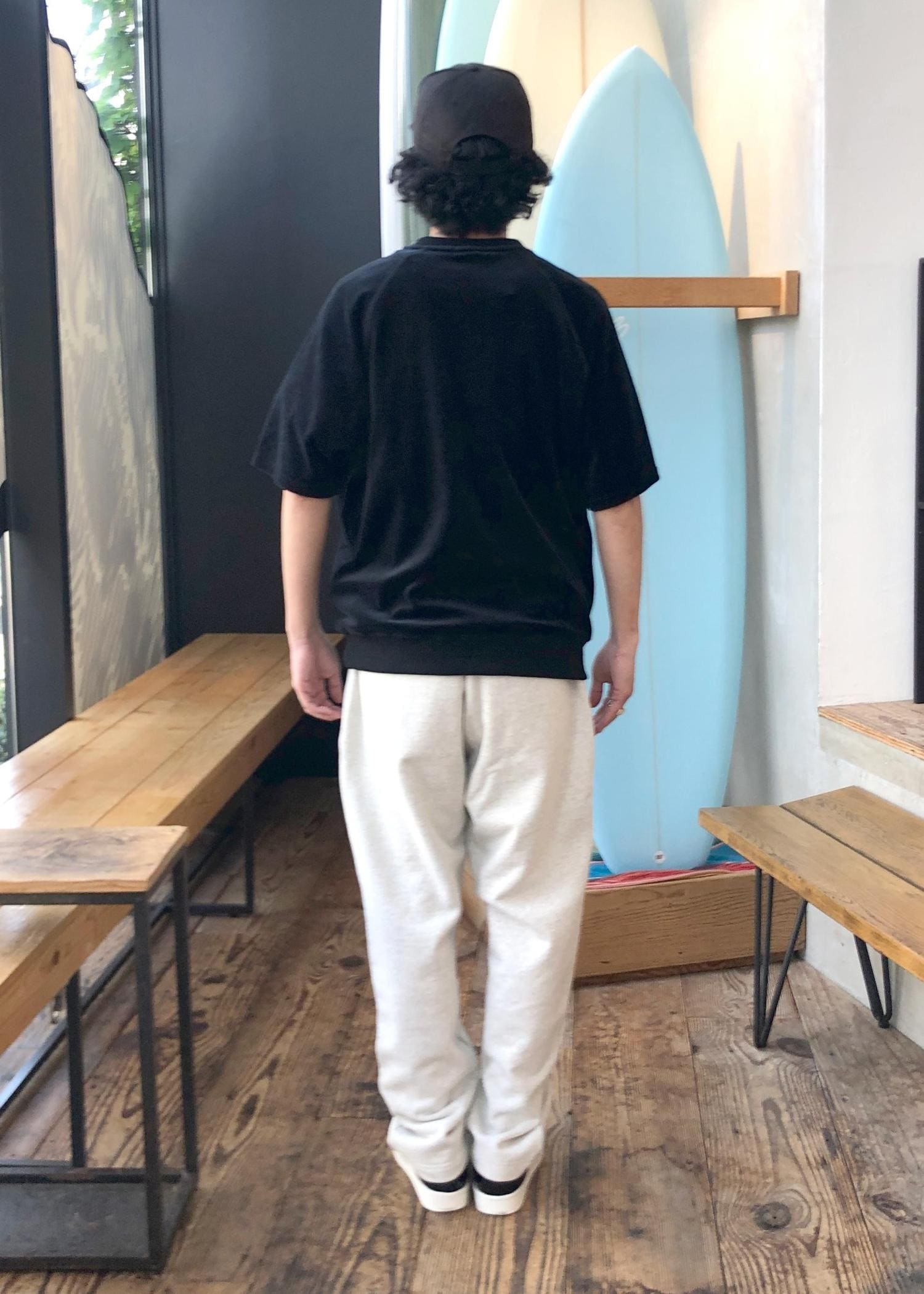 スウェットパンツを使ったシンプルコーディネート。