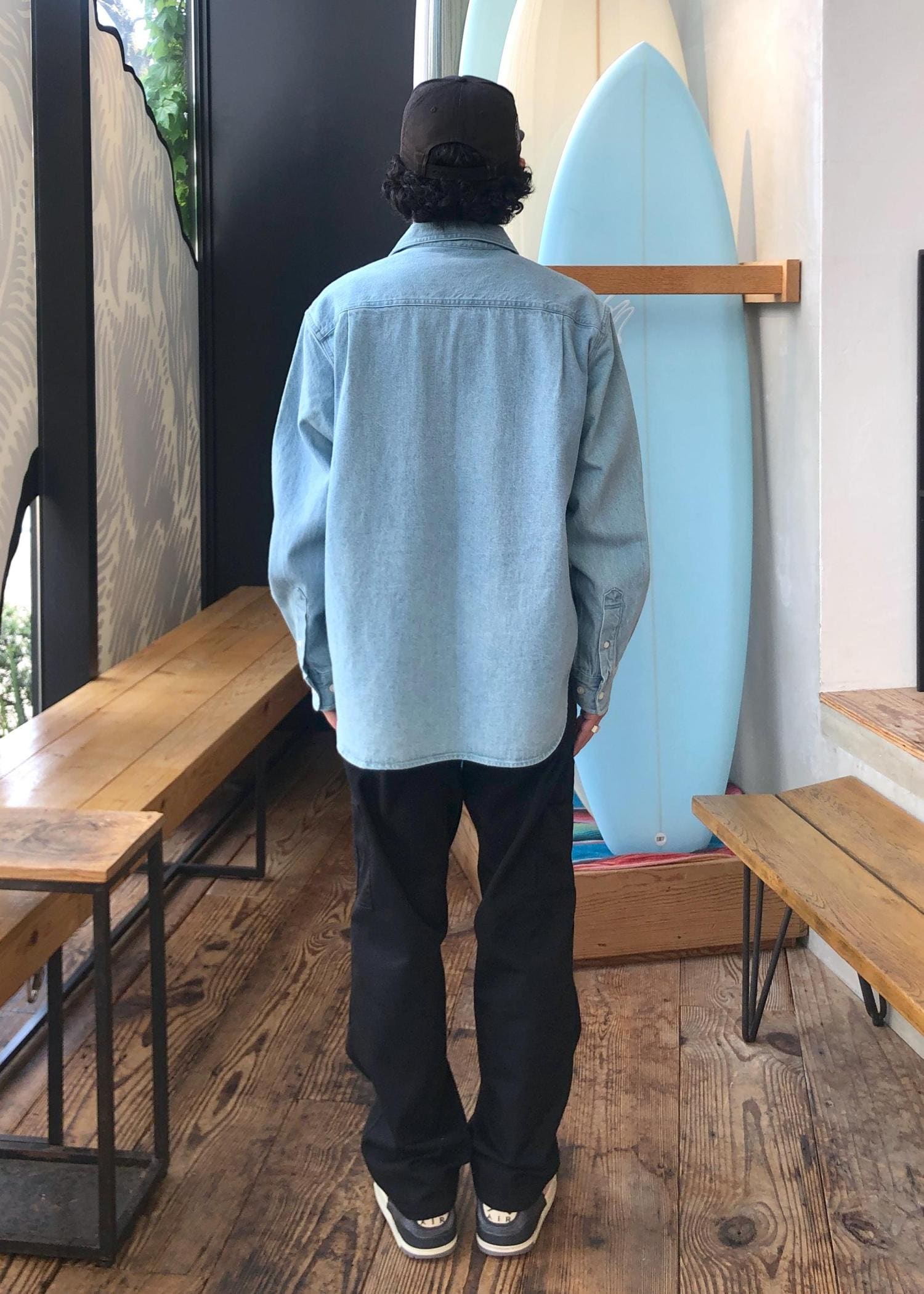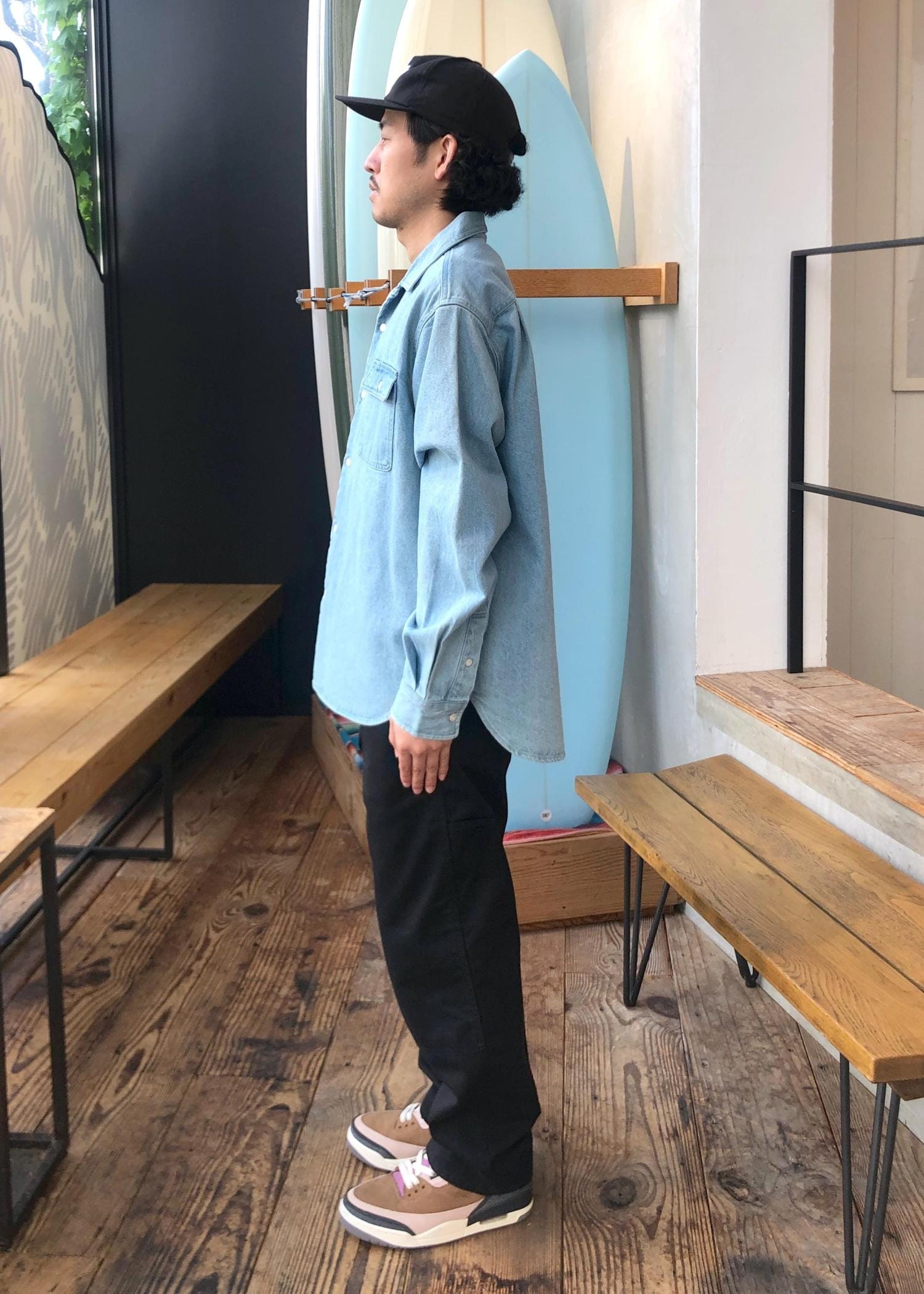 オンスも適度で合わせやすいカラーも良く、もし合う色のデニムパンツがあればセットアップ風にしたり、自分はブラックベースのパンツに合わせました。