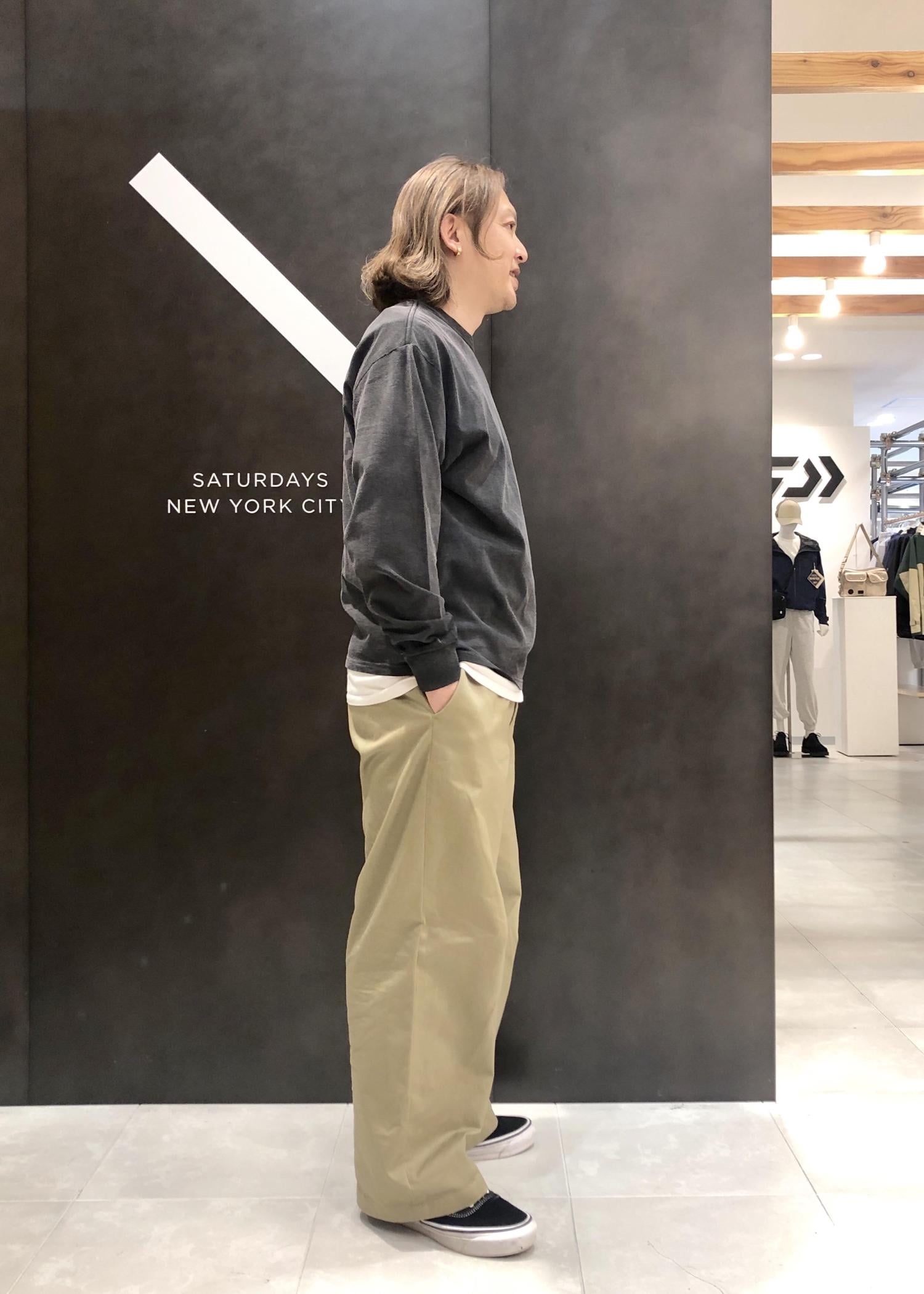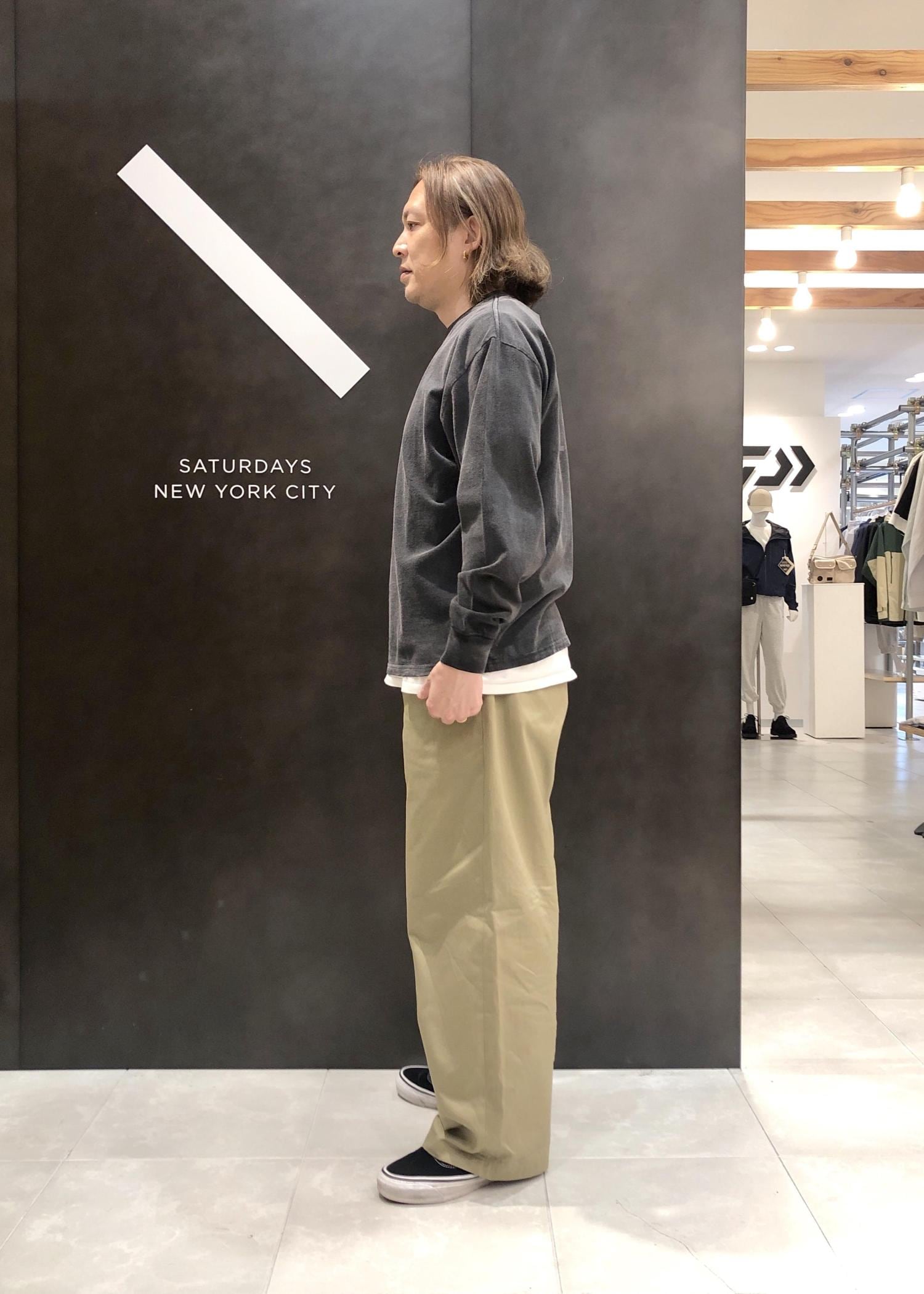 Saturdays NYCRoss Wide Chino Pantベージュ / L¥22,000レビュービンテージのパンツをベースに、腰回りからまっすぐ落としたワイドストレート型のリラックスシルエットになっています。