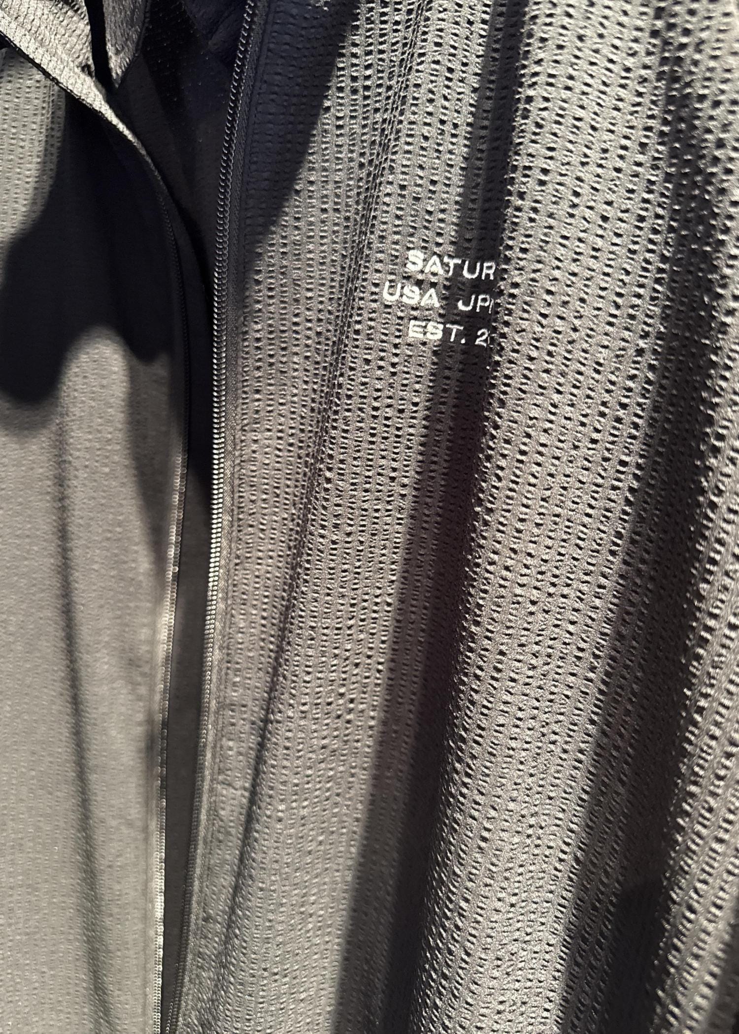 左裾にSaturdays NYCを象徴するスラッシュプリントを配し、ミニマルなデザインにほどよいアクセント効果を演出。