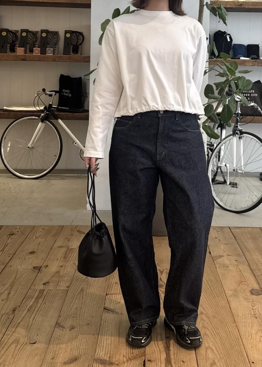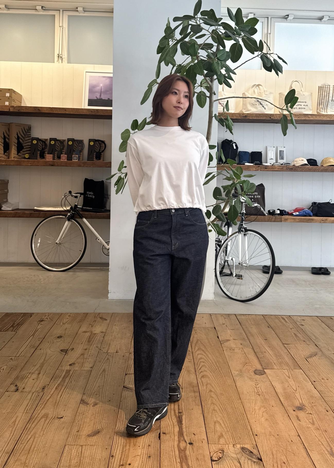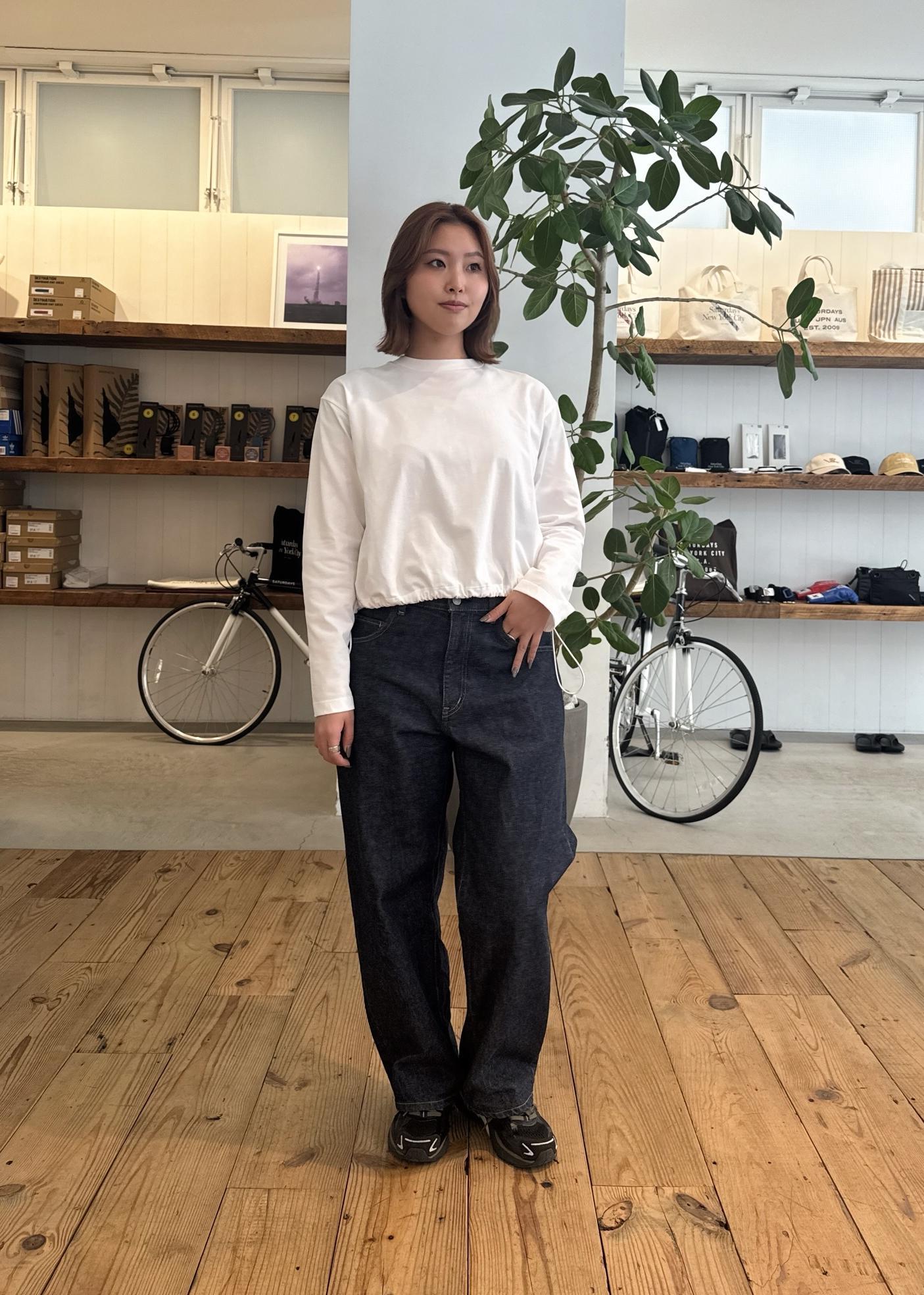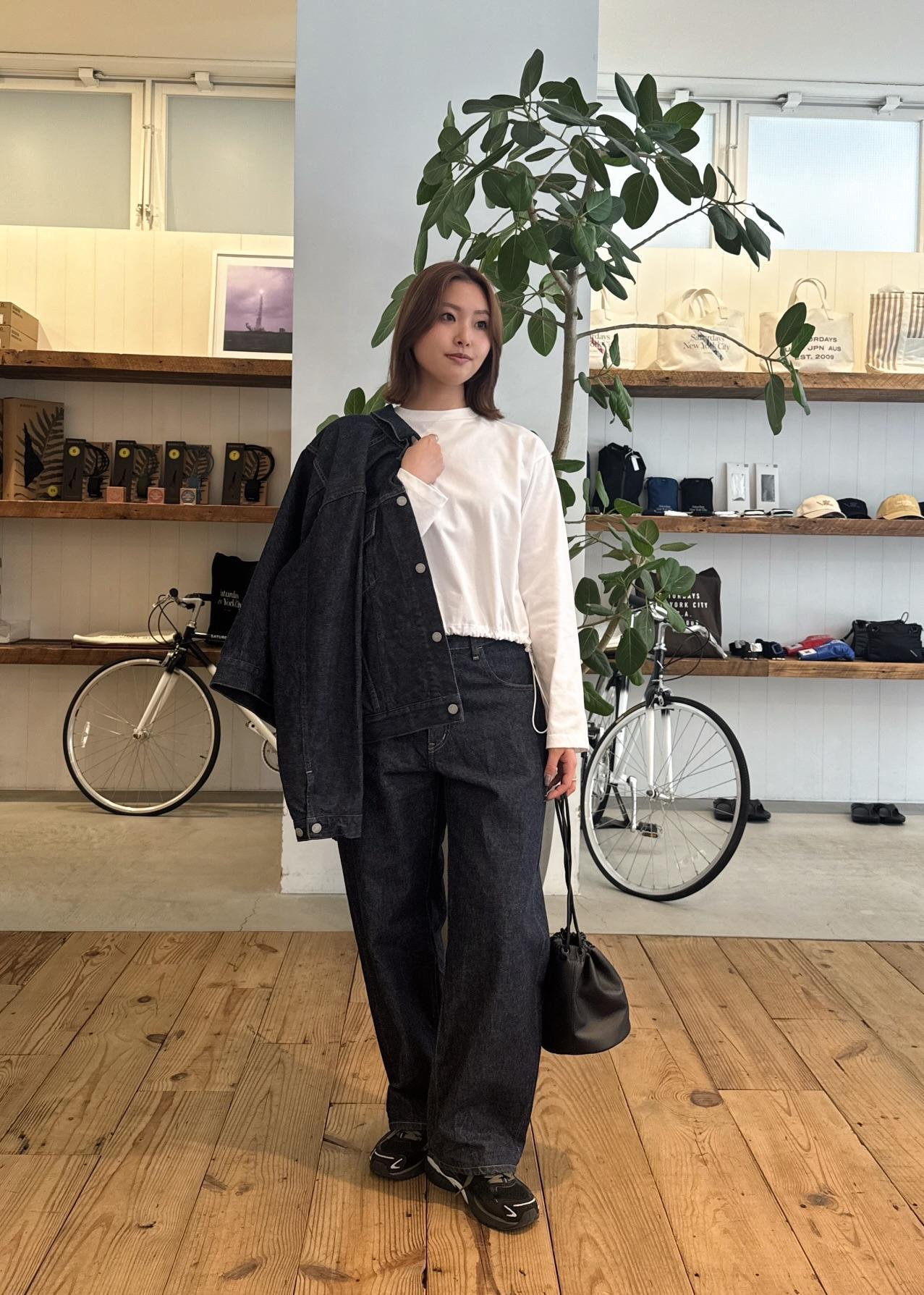 リラックス感のあるロングスリーブTに、存在感のある岡山デニムを合わせた、シンプルながらもこなれた大人カジュアル。