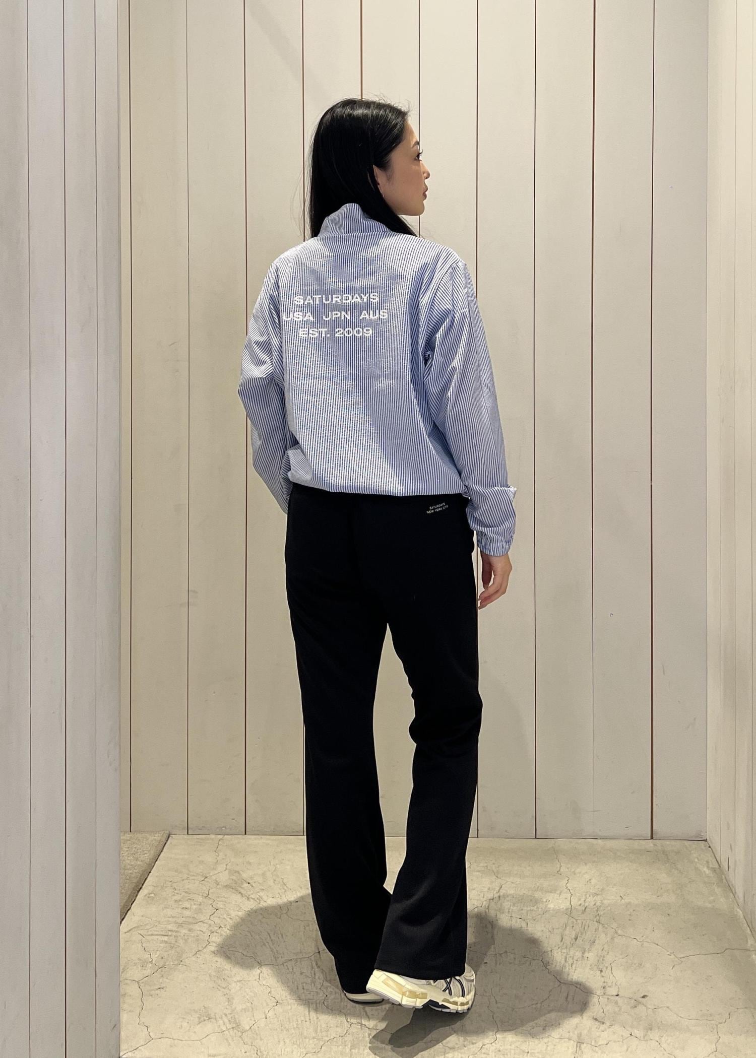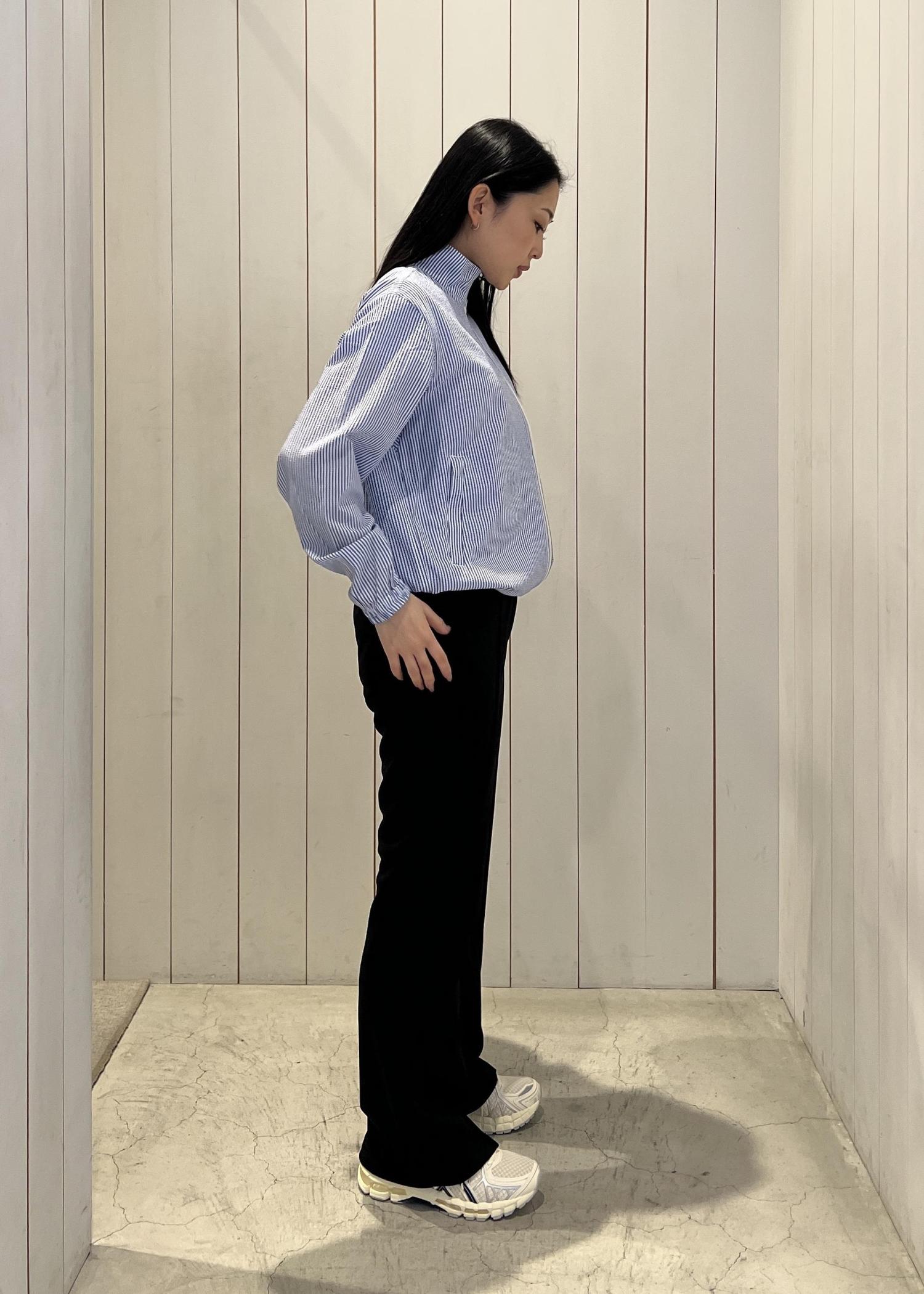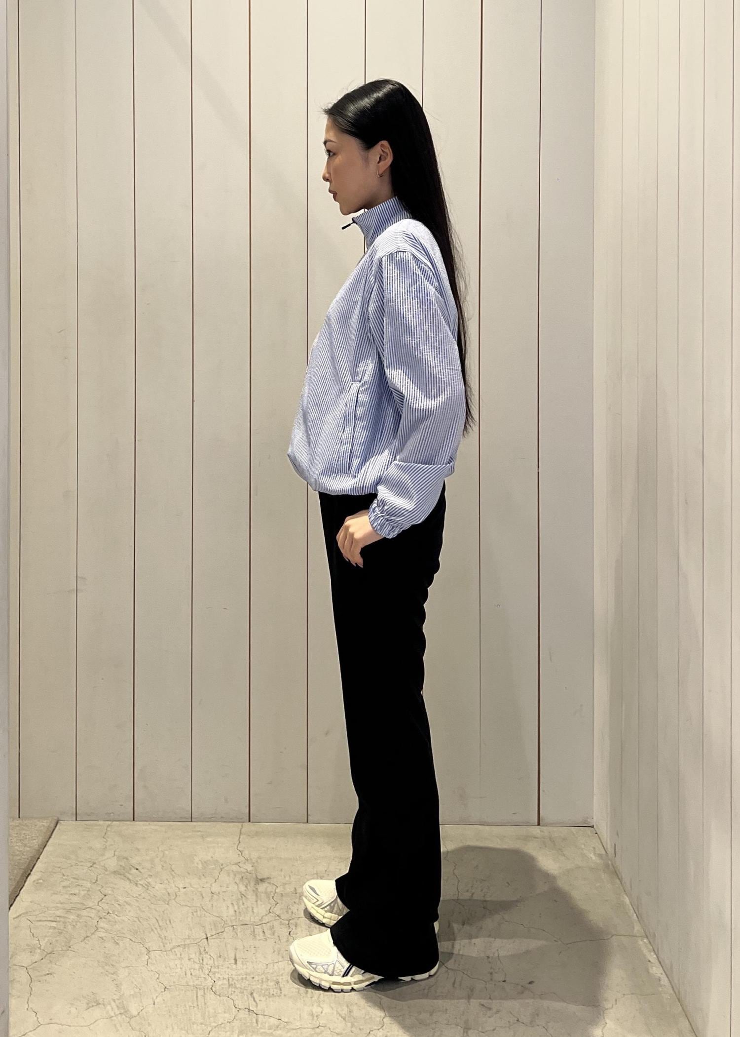 爽やかなストライプトップスが主役⭐︎ 黒パンツで締めたシンプルなゴルフコーデです 動きやすさときれい見えどっちも叶うスタイル◎
