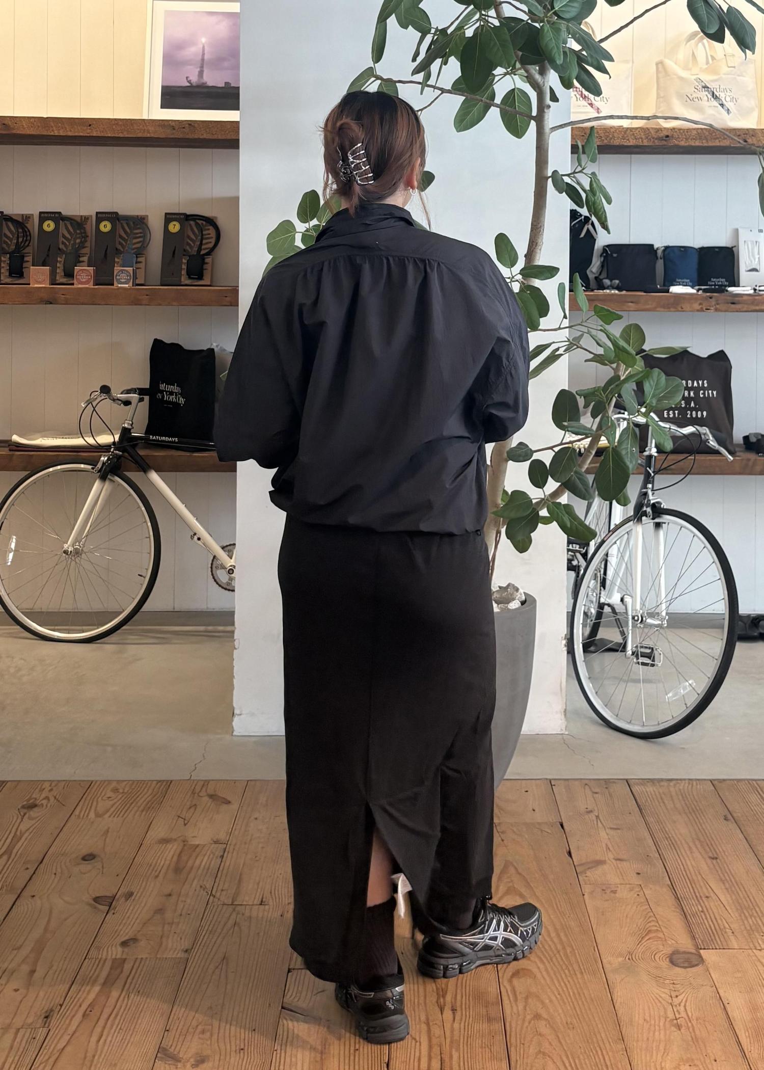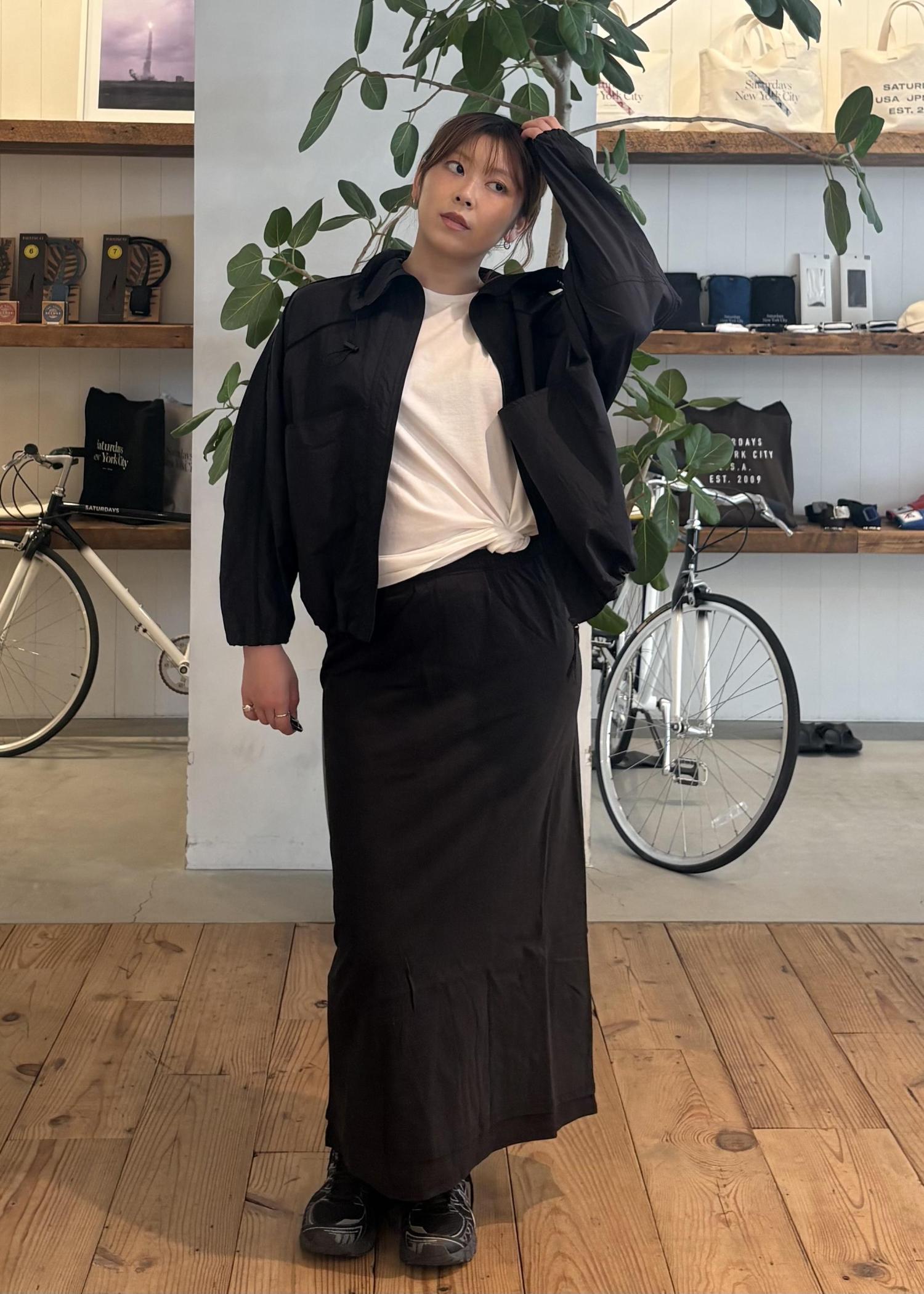 Saturdays NYCAmy Midi Skirt | WOMENブラック / L¥11,000レビュー後ろのスリットが程よく入っていて、さらにサラッとした着心地で、履けるので夏まで重宝します。