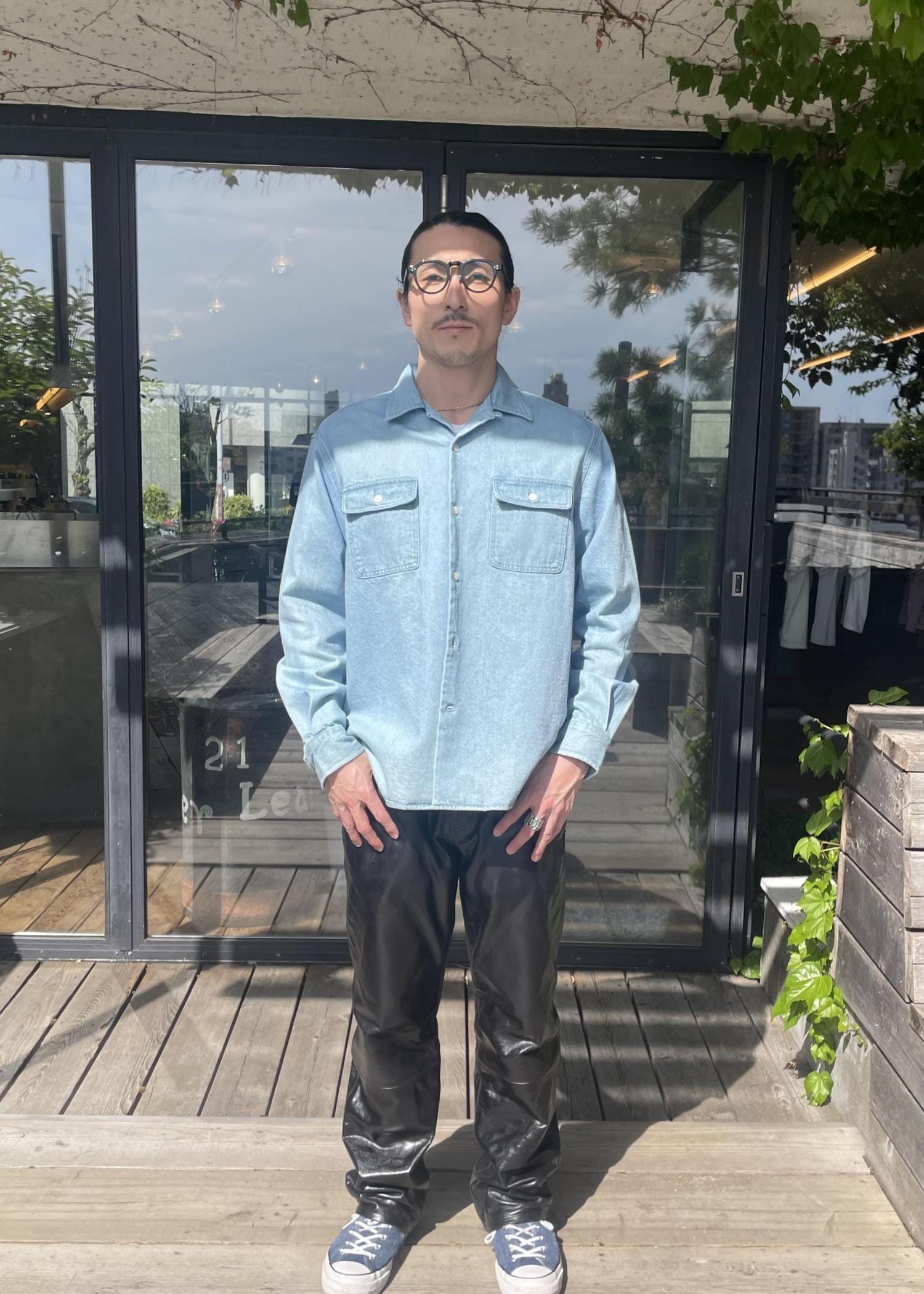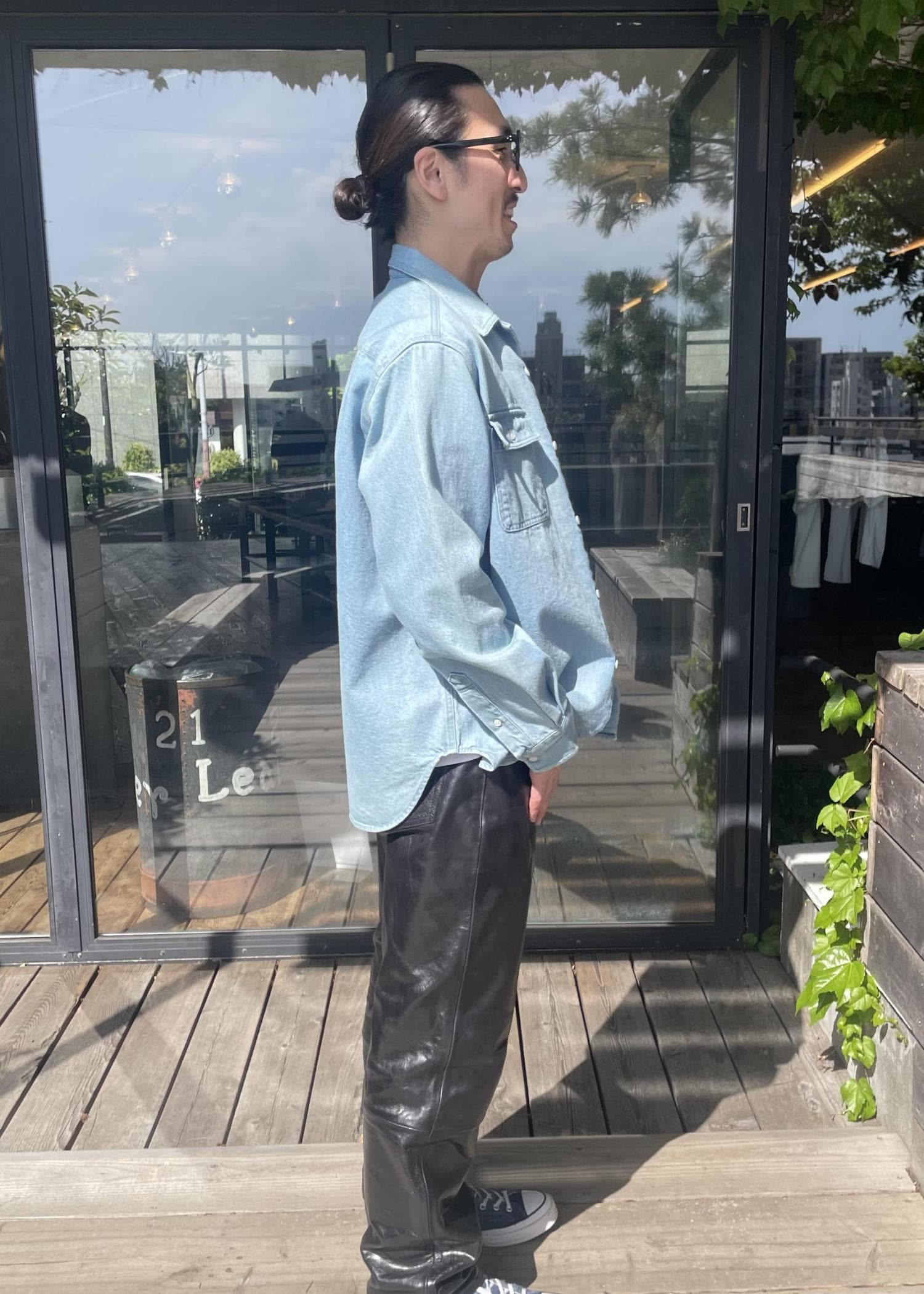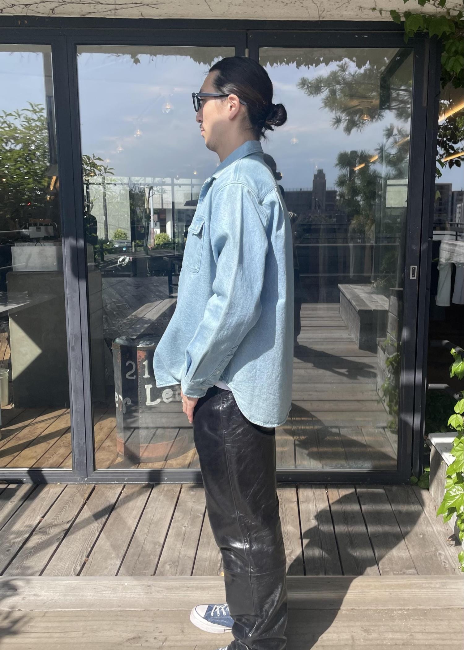 トップスのシャツは、デニムのシャツです!