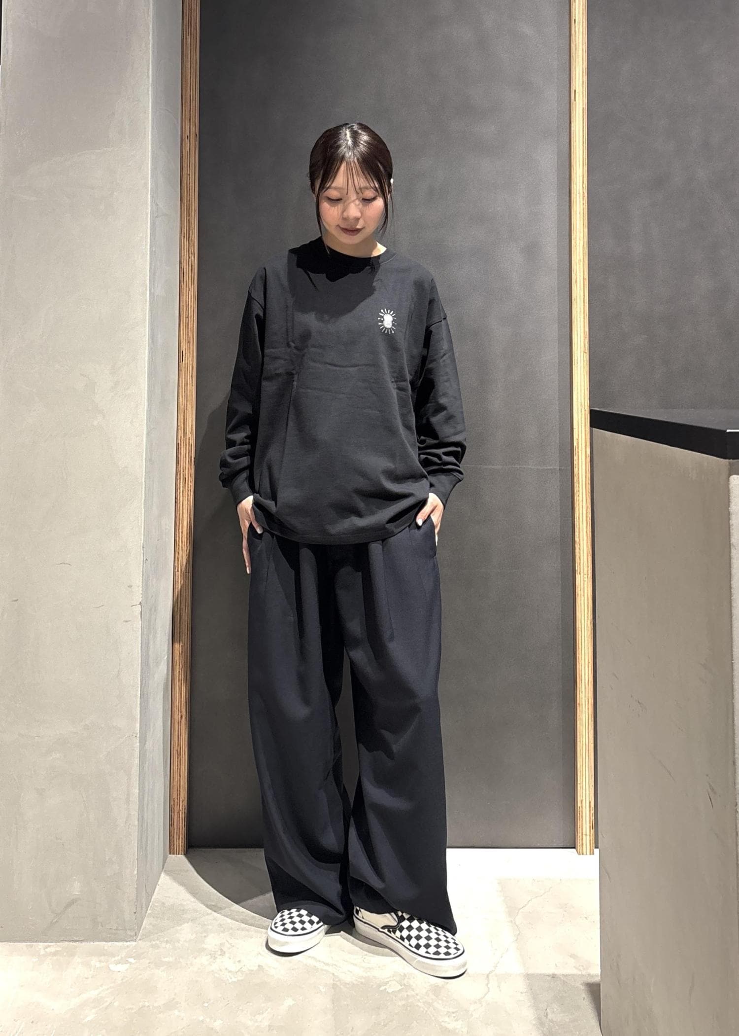 着用しているロンTは、アウトレット限定アイテムです!