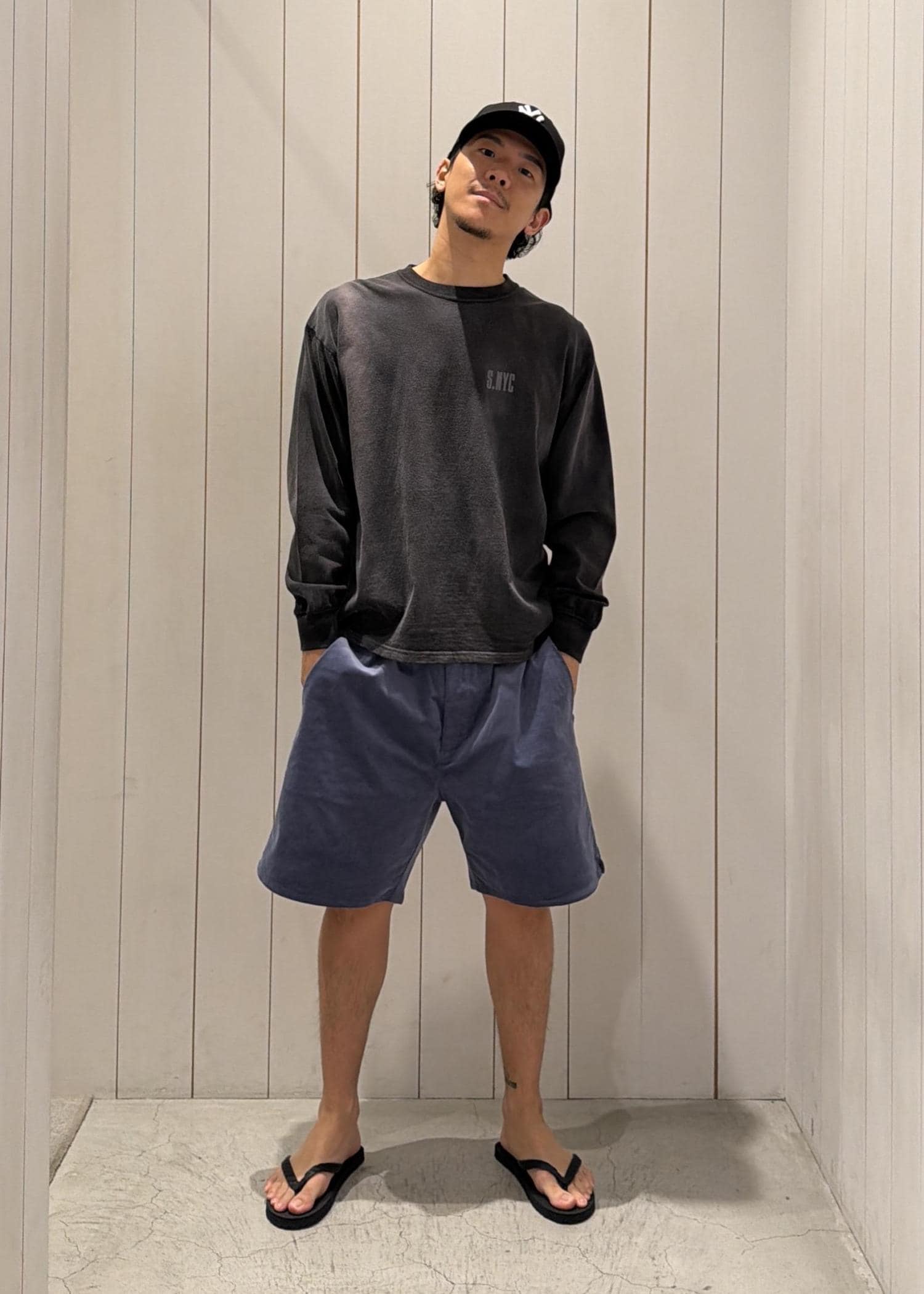 足元はサンダルで抜け感を出し、肩の力を抜いて楽しめる都会的なカジュアルスタイルです☺︎