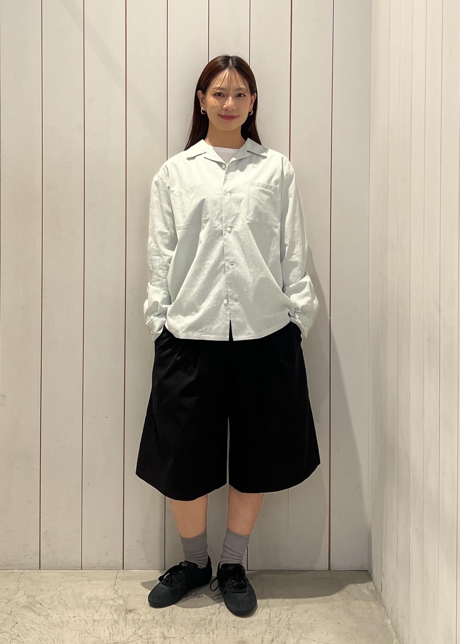 日本製の特徴のある生地を使用したオープンカラーシャツ☆
