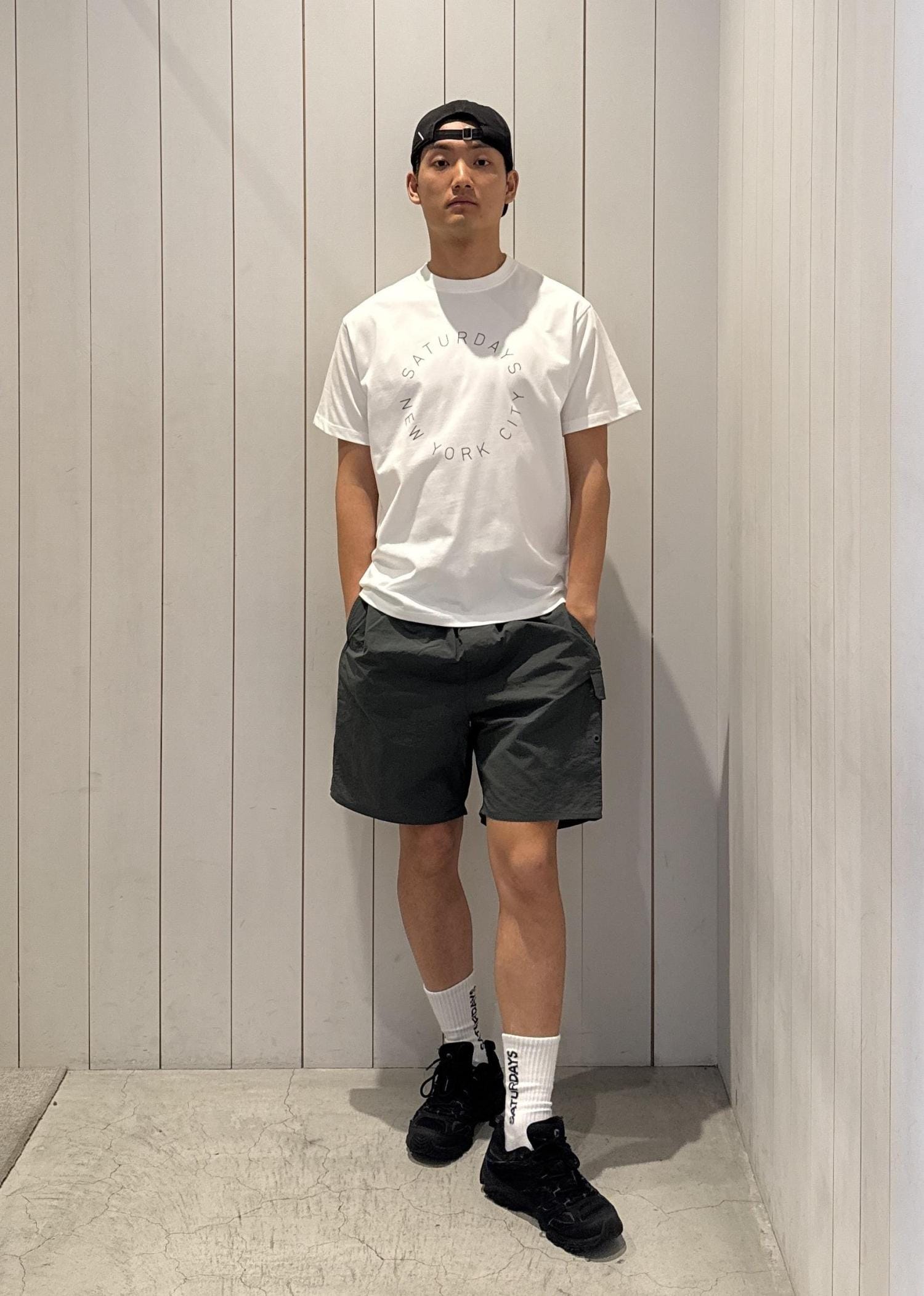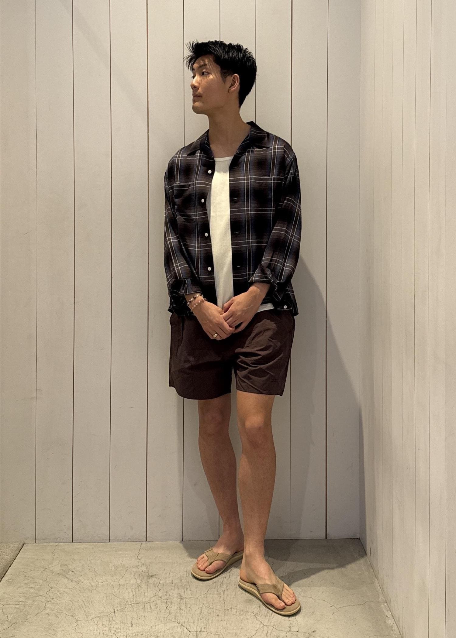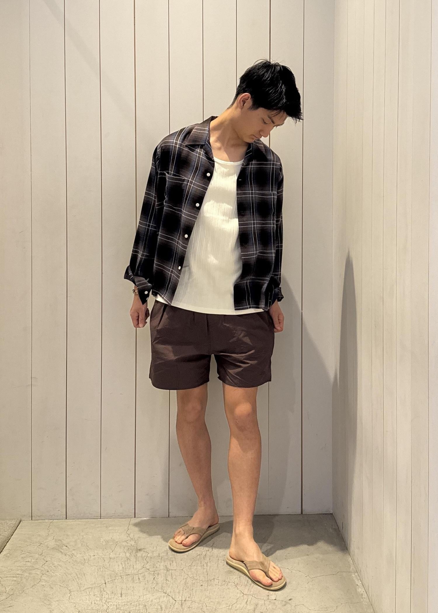今回ご紹介させていただくのは、サタデーズNYCオリジナルで作成した先染めのオンブレチェック柄は上品でありながらヴィンテージ感を漂わせるオープンシャツとサタデーズNYCの新定番カーゴスイムショーツのコーデ!