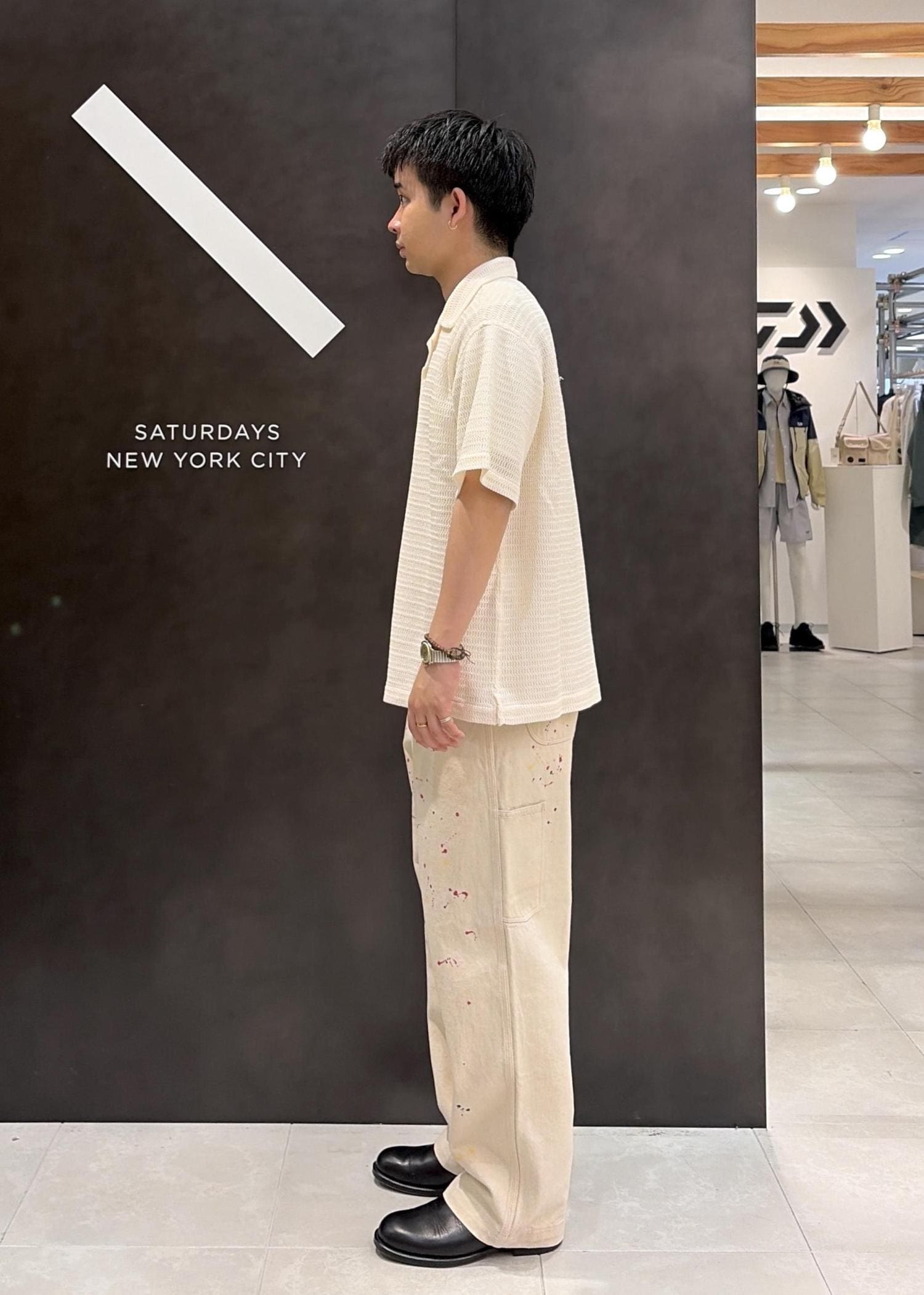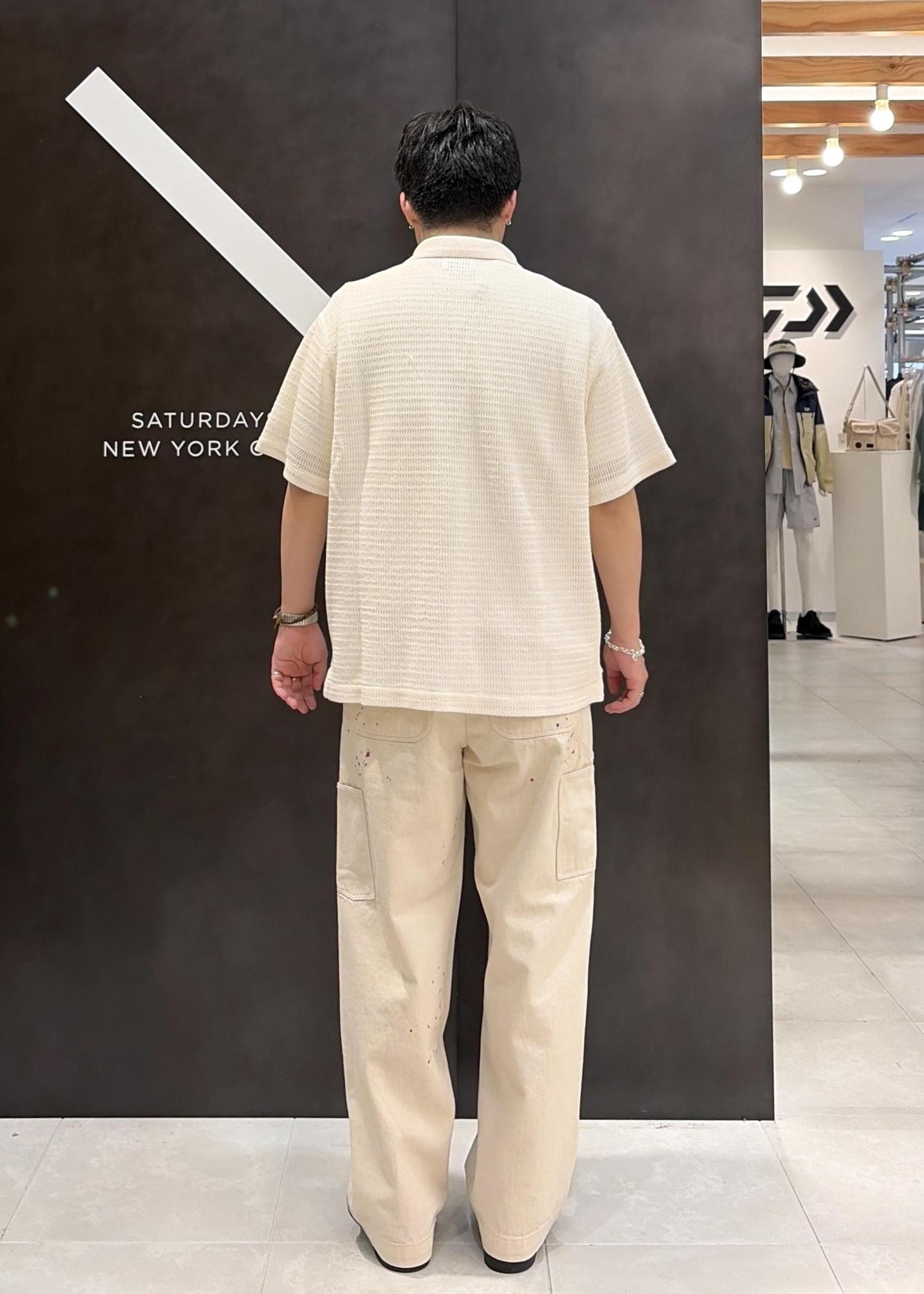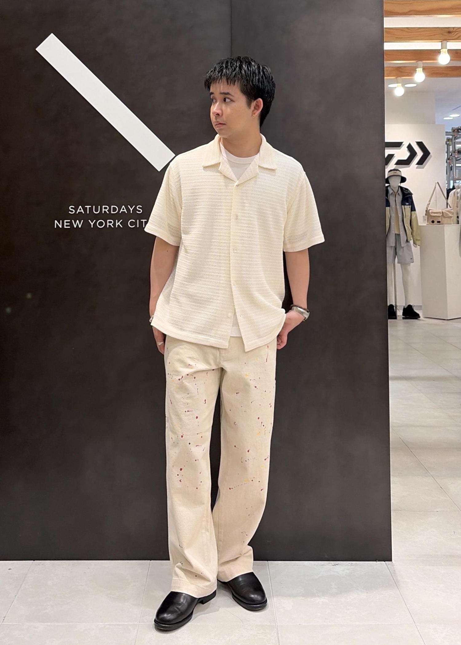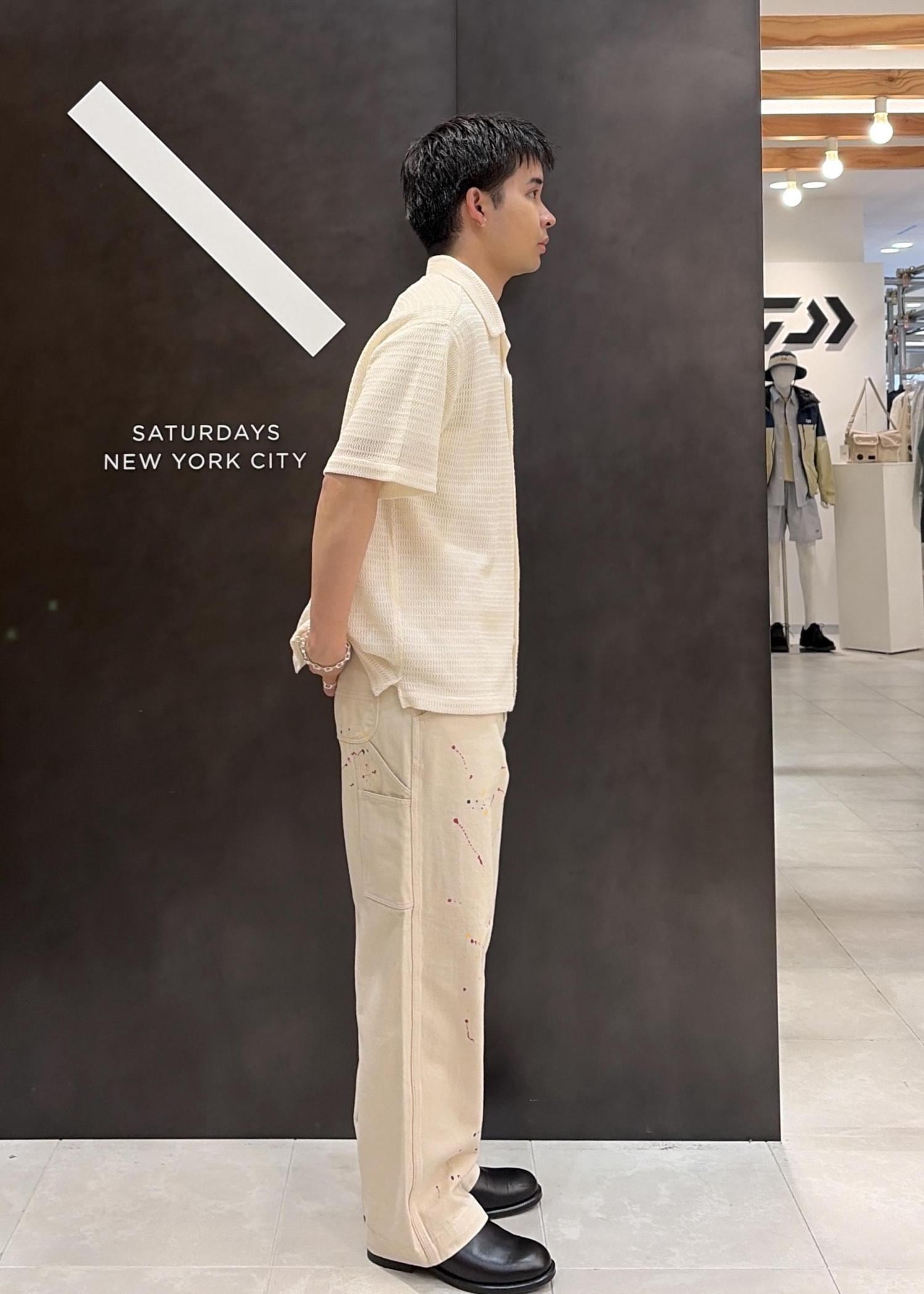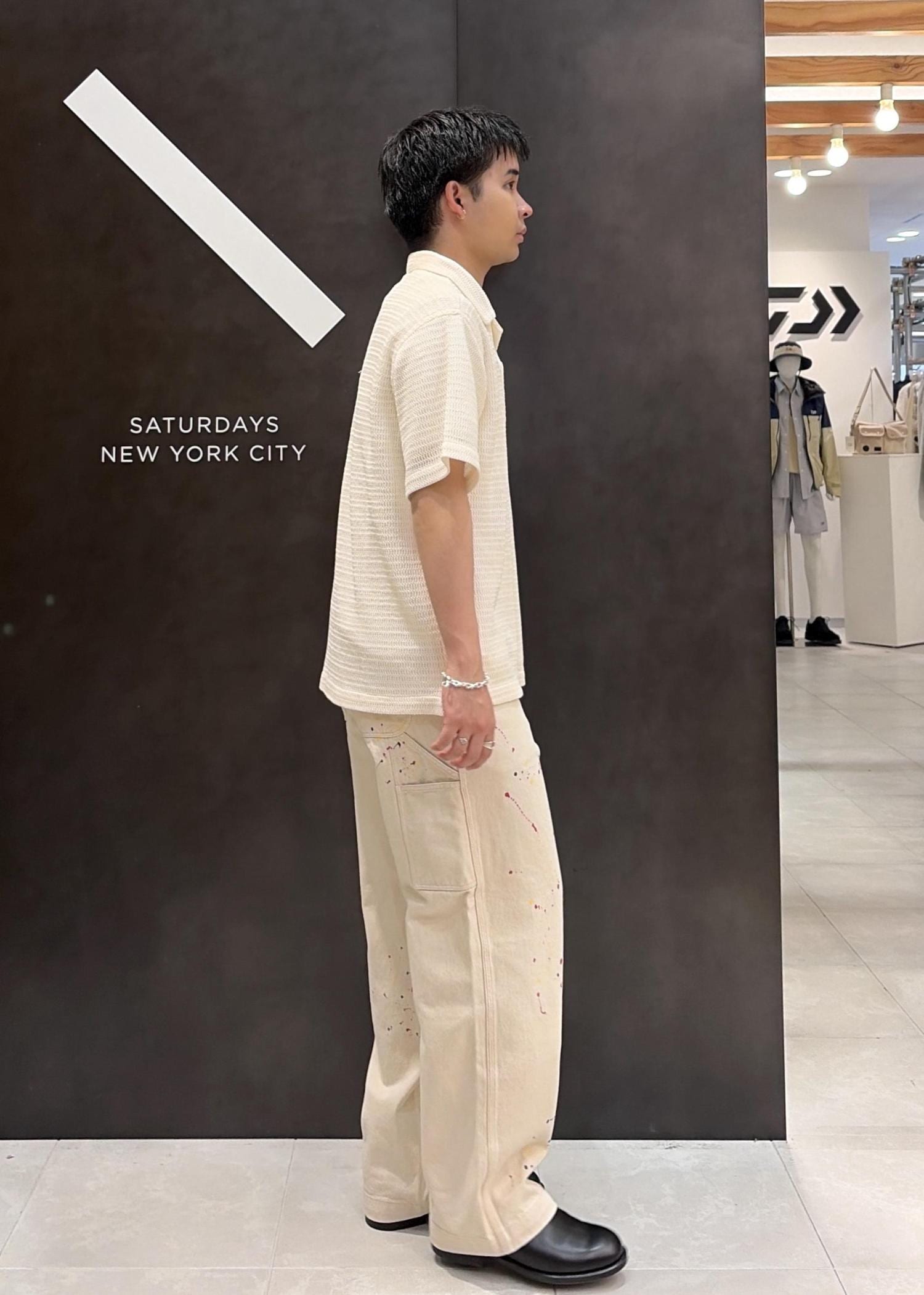 今回着用しておりますのは、ペンキ加工を施したワイドストレートシルエットのペインターパンツです!