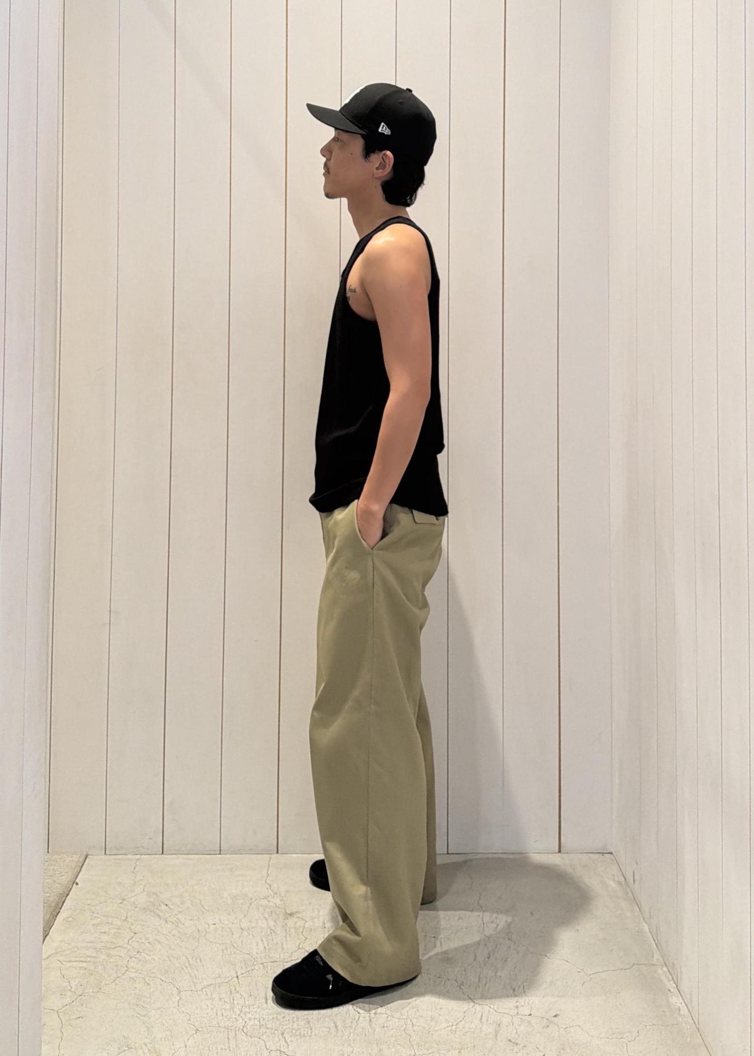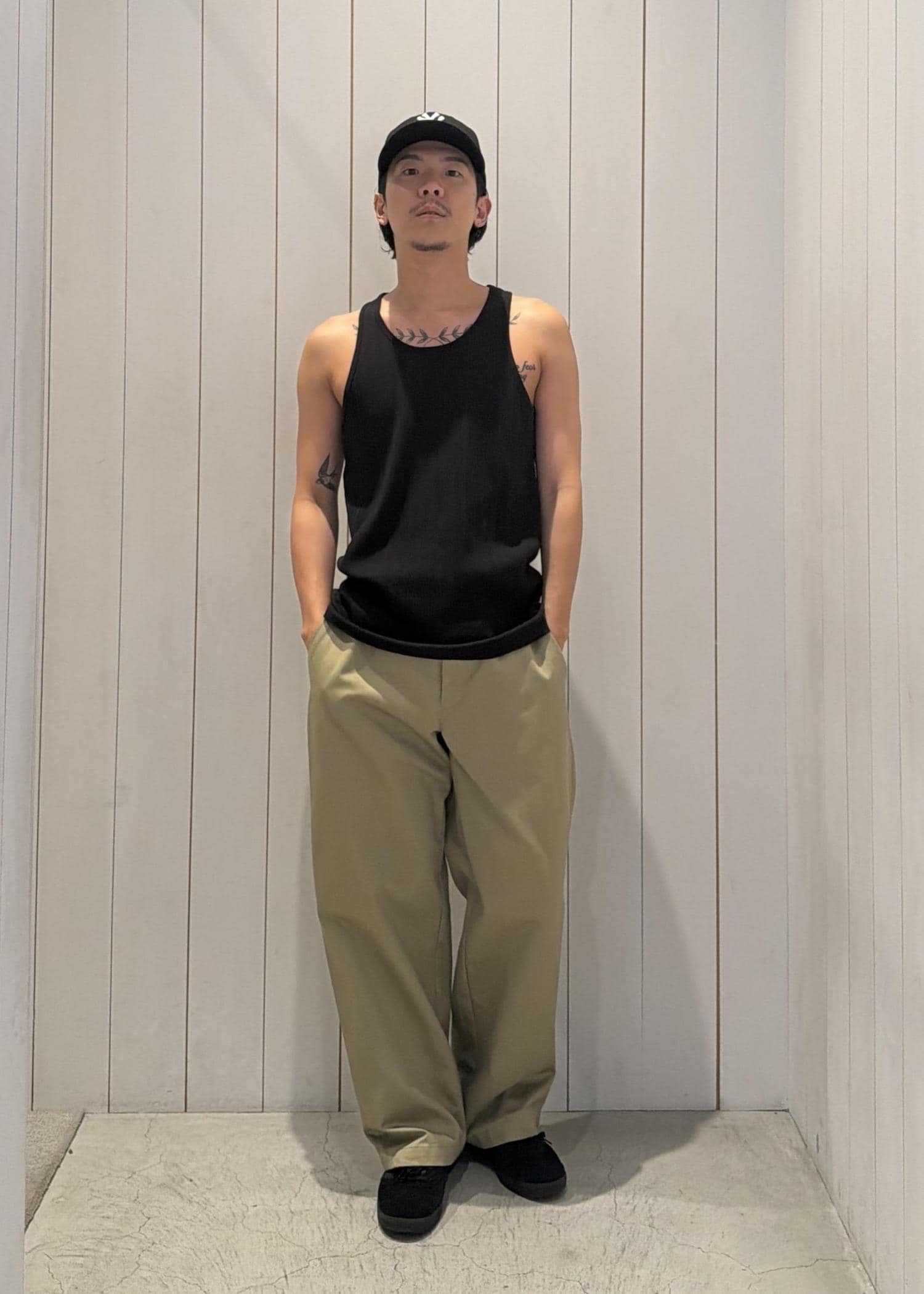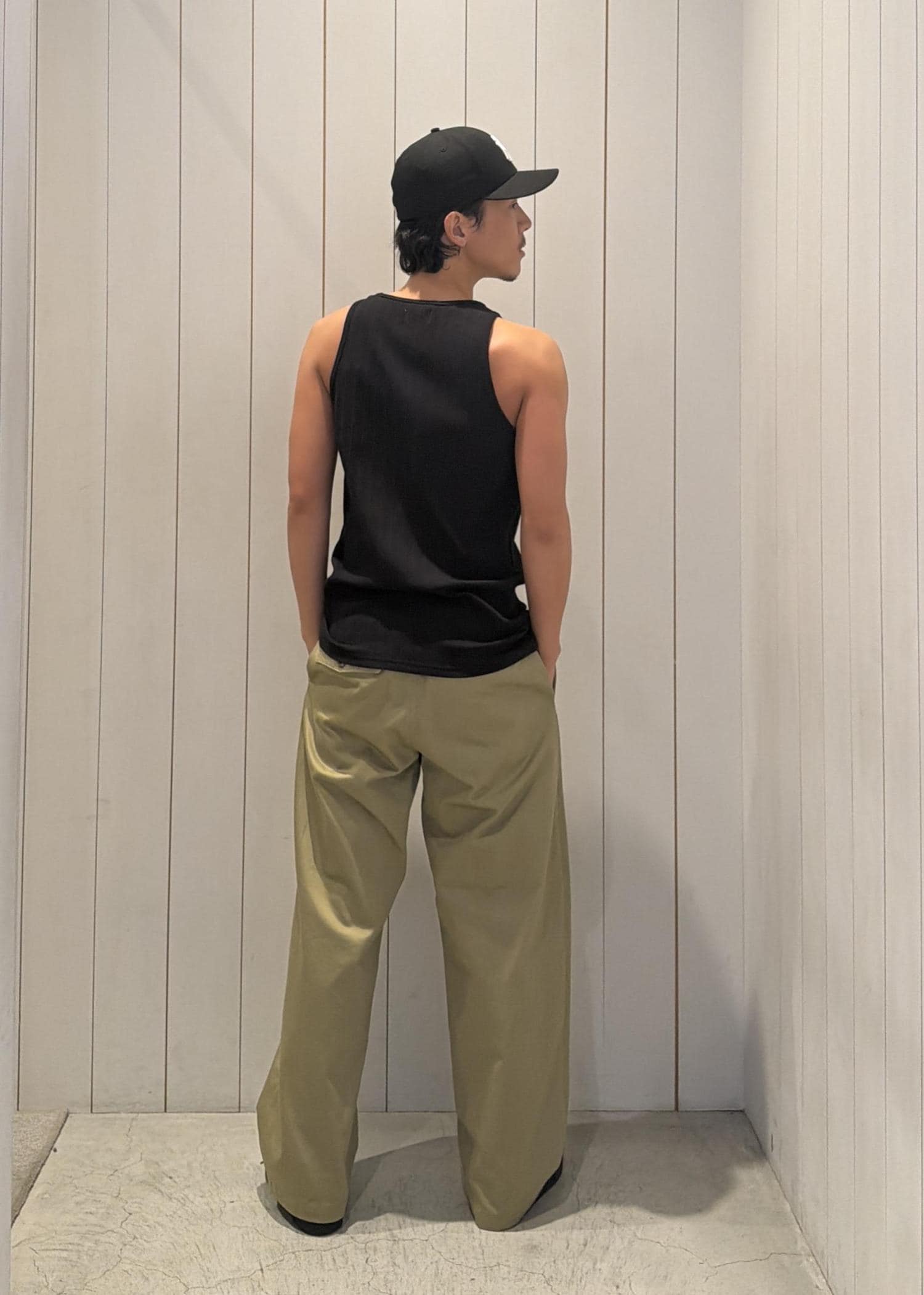 シンプルなタンクトップは、すっきりとしたシルエットで一枚でもサマになるアイテム。