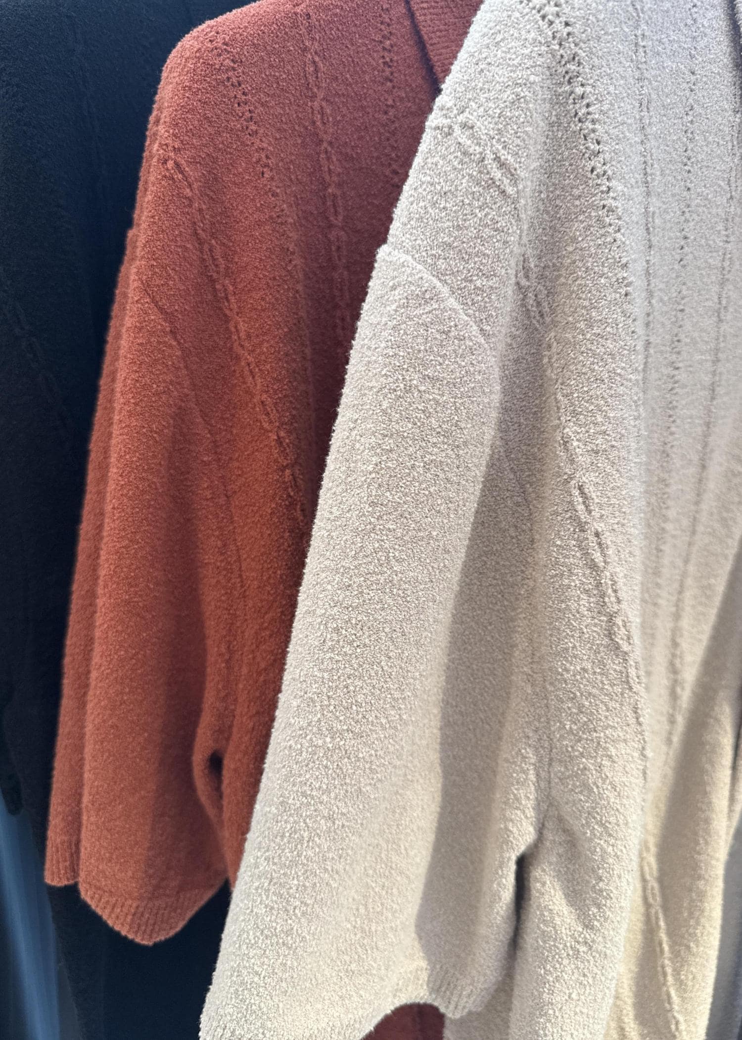 ストライプ状の編地が目を惹くデザインになっています。 -
