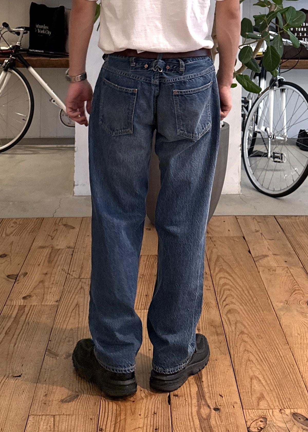 USA製のジーンズで、色落ちやシンチバック、リベットなどのディテールがビンテージ感のある風合いになってます。