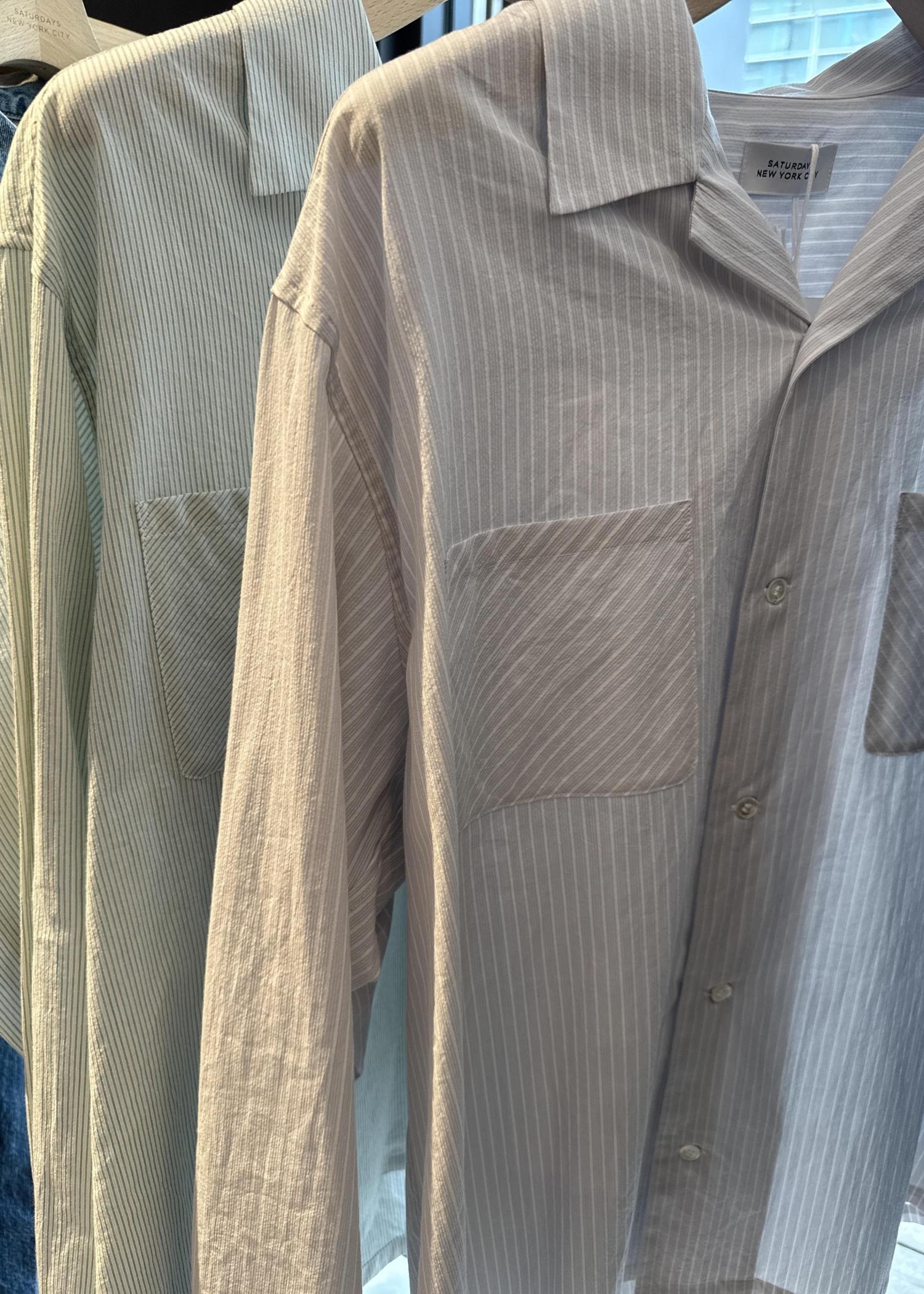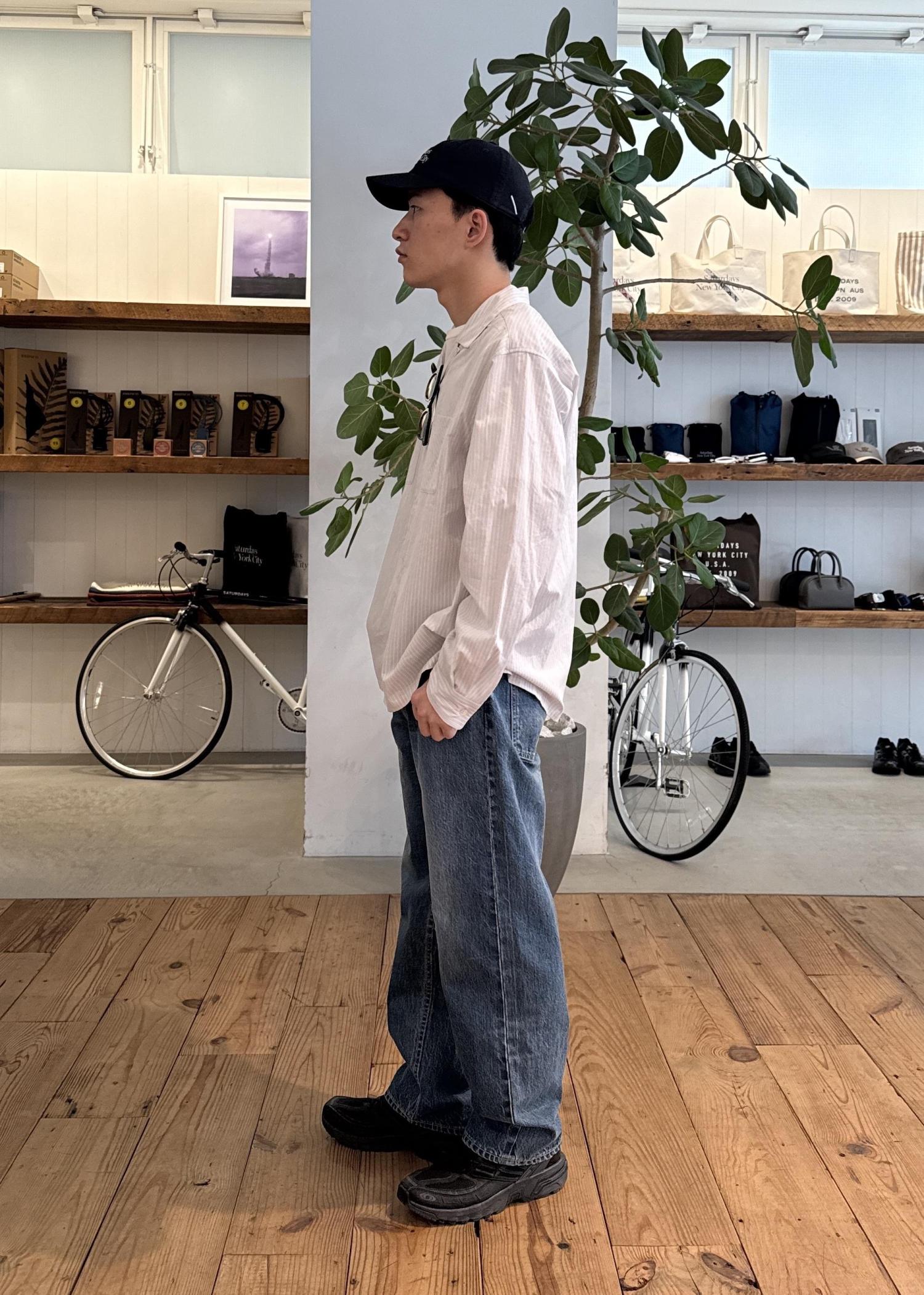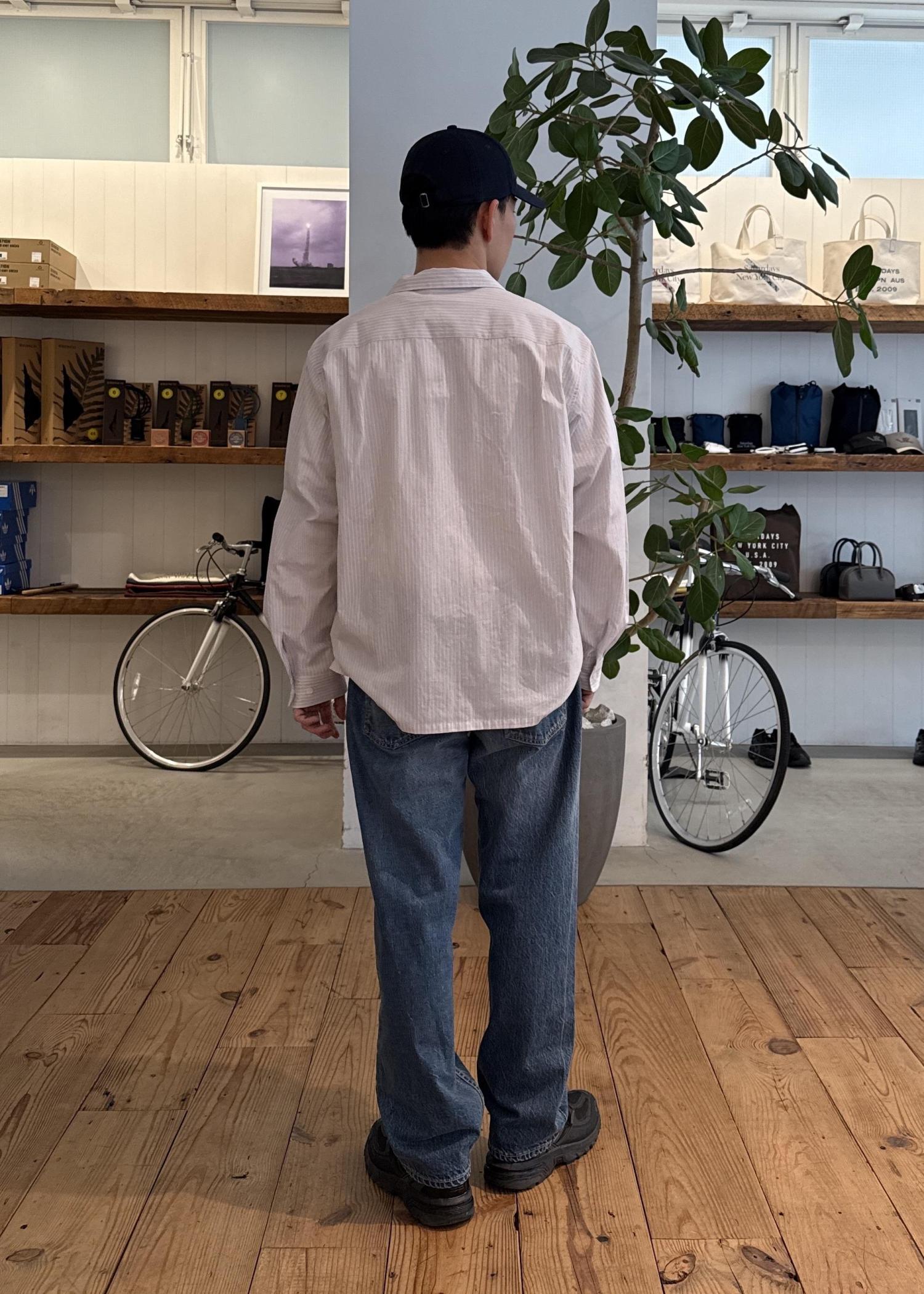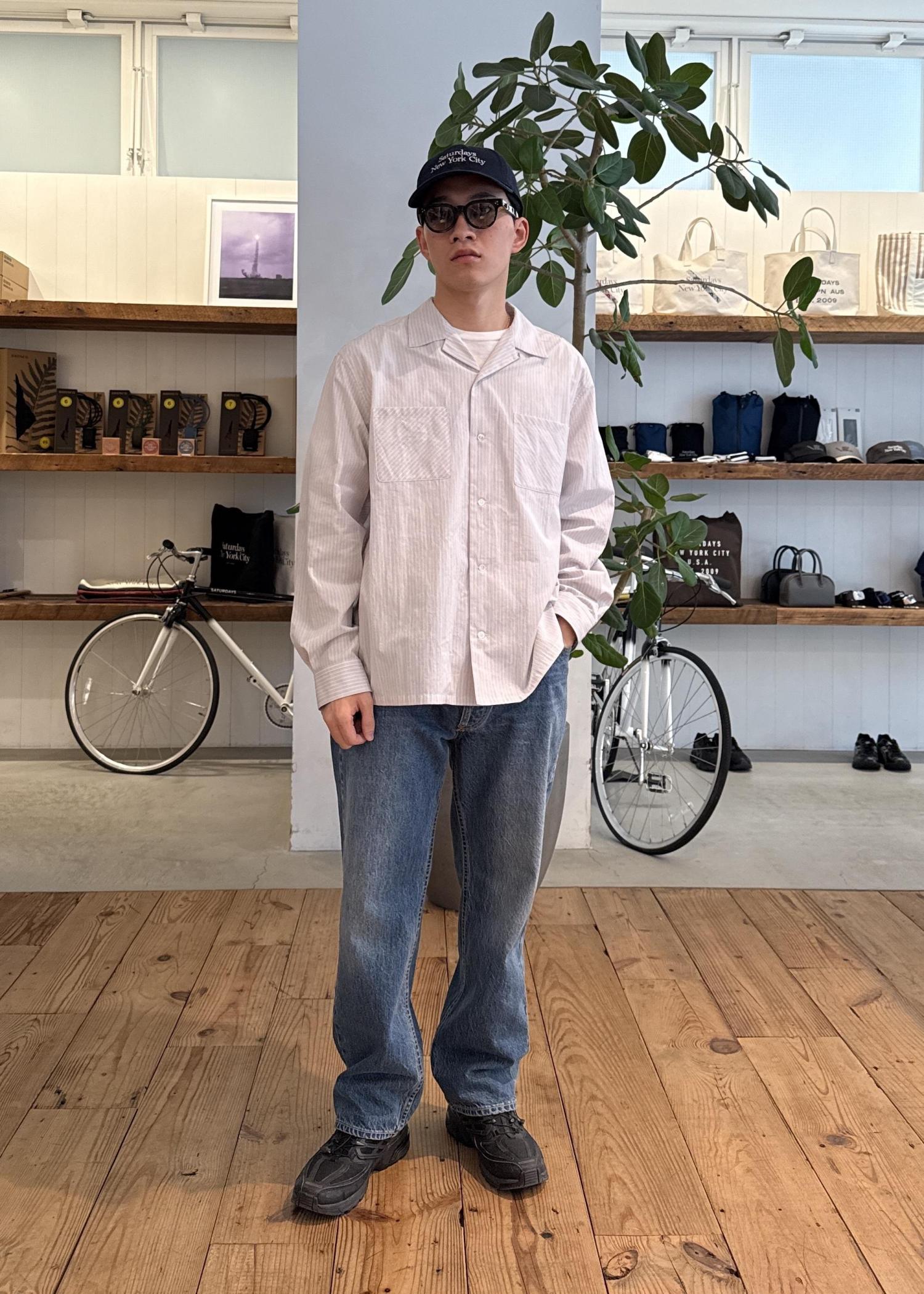 今回はMarco Stripe Open Collar Shirtをメインにコーデを組んでみました。