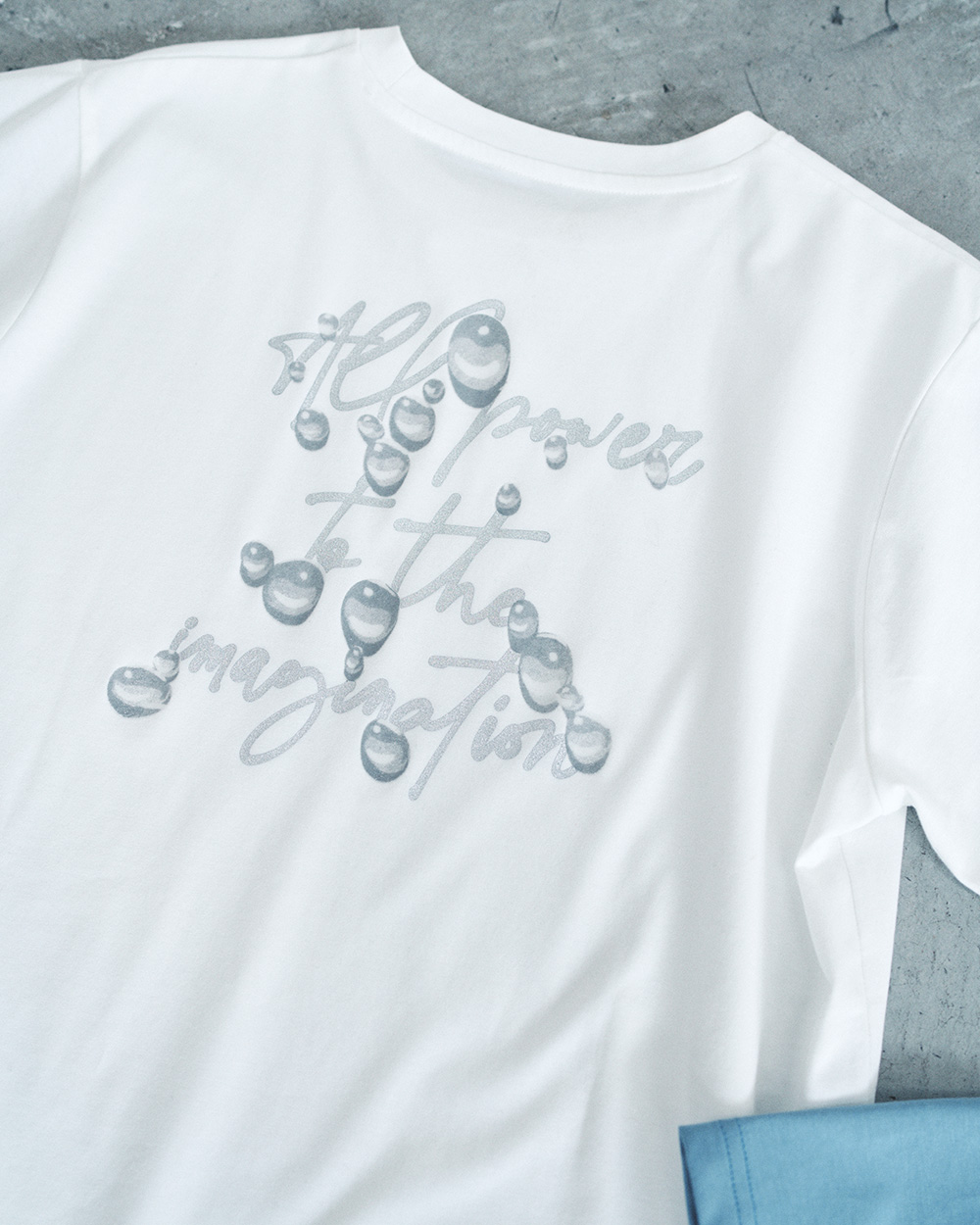 “人間の体は70%水分でできている”ことからインスパイアされたグラフィック。リバーシブルで着用可能なアイテムです。