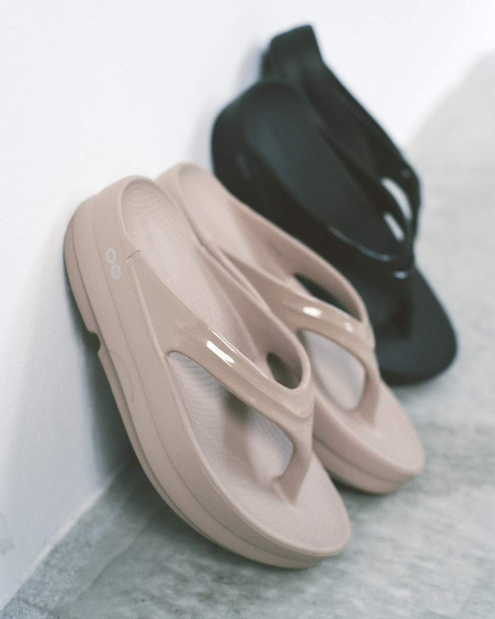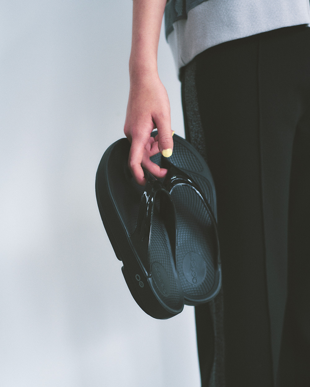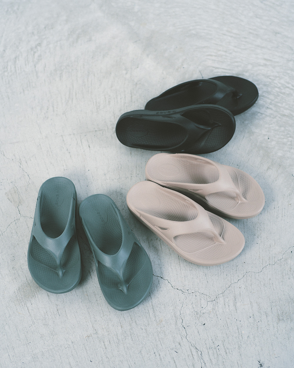 トング部分のツヤ感が女性らしさを漂わせる人気モデル「OOFOS」OOlala。ヨガやジムなどWORKOUTの行き帰りはもちろん、旅行やアウトドア、デイリーユースなど幅広いシーンで活躍します。