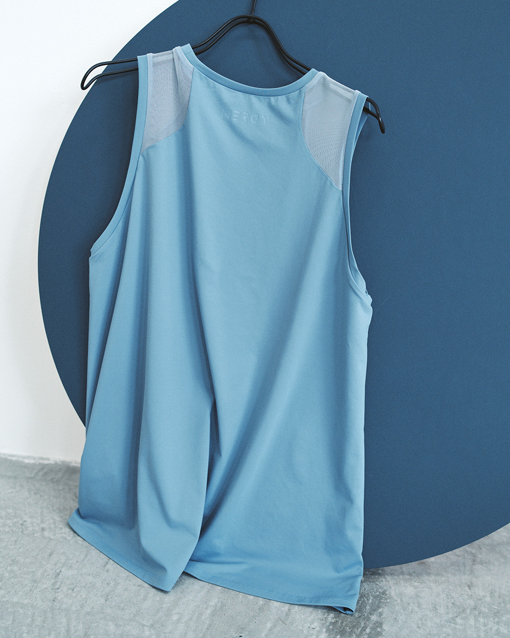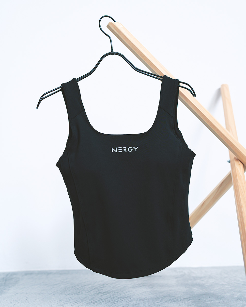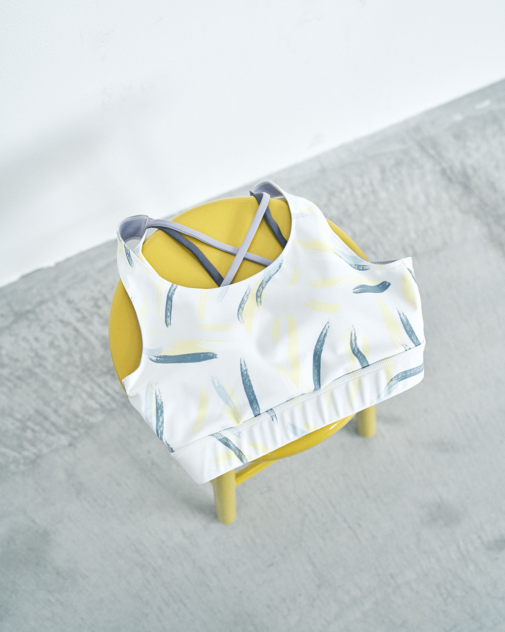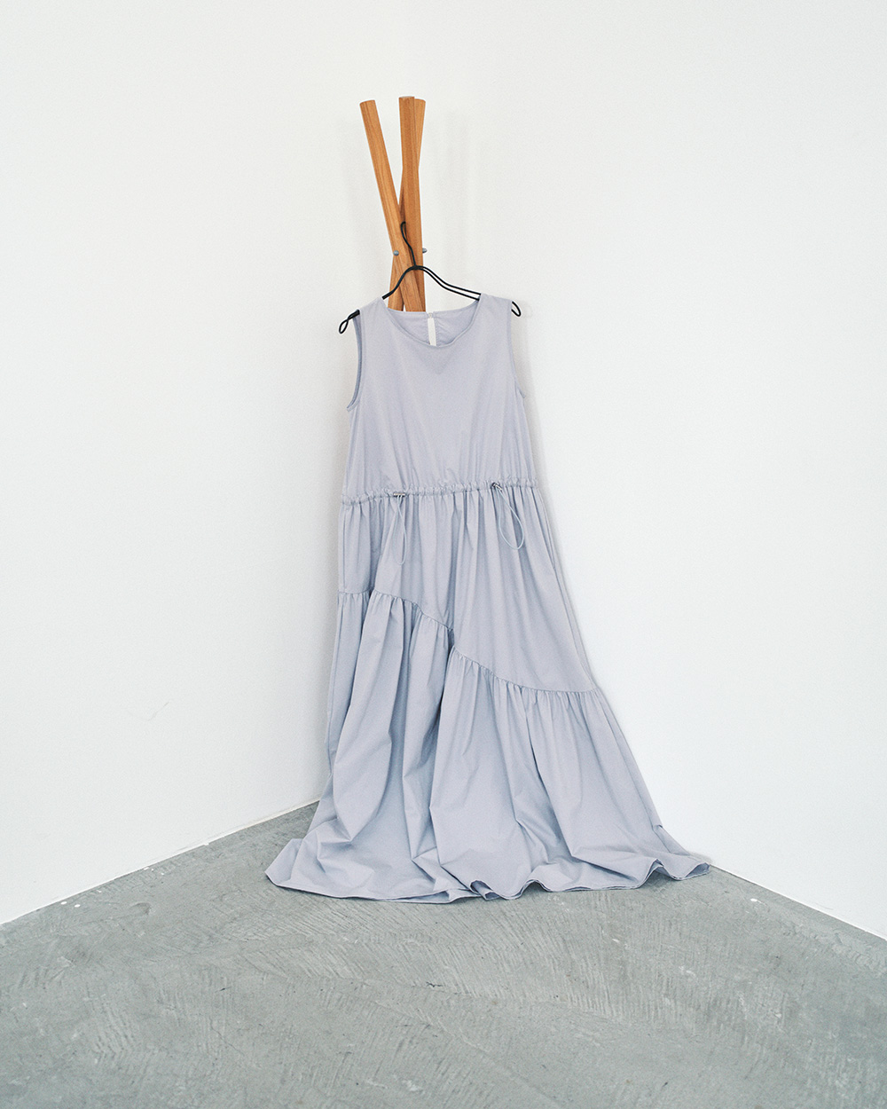 水の柔らかさをイメージいた曲線的な切替、インナーの肩紐をさらっと見せてレイヤード感を楽しめるアイテム。