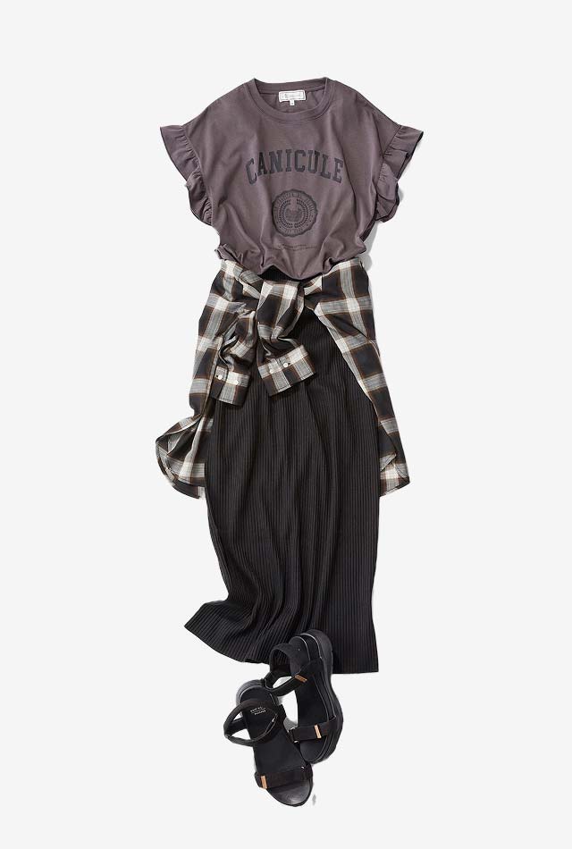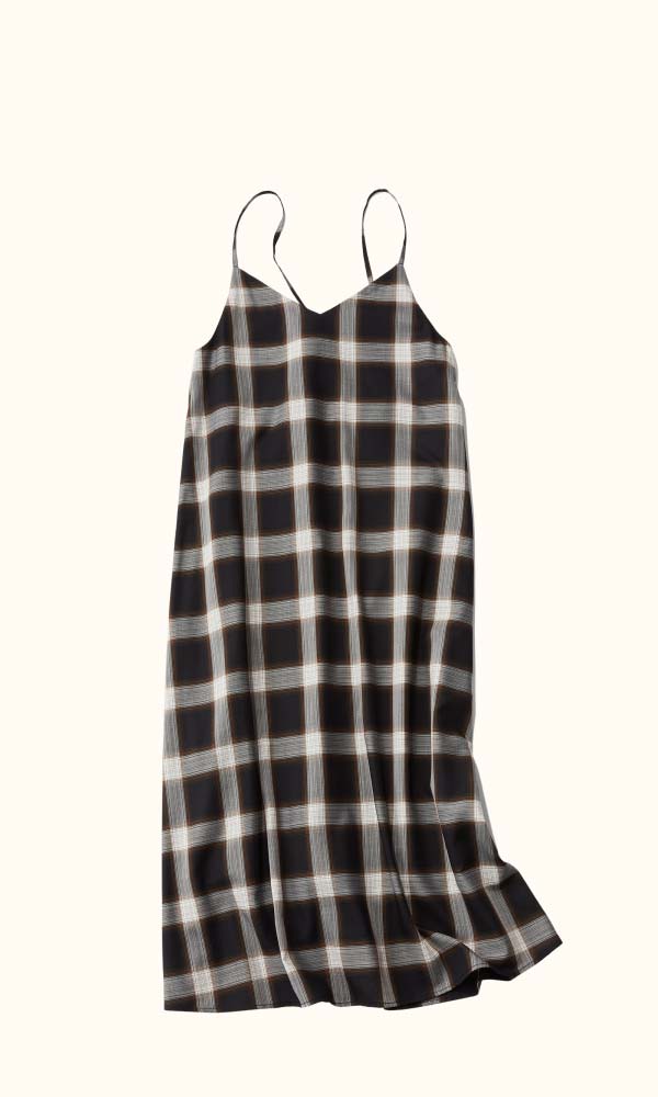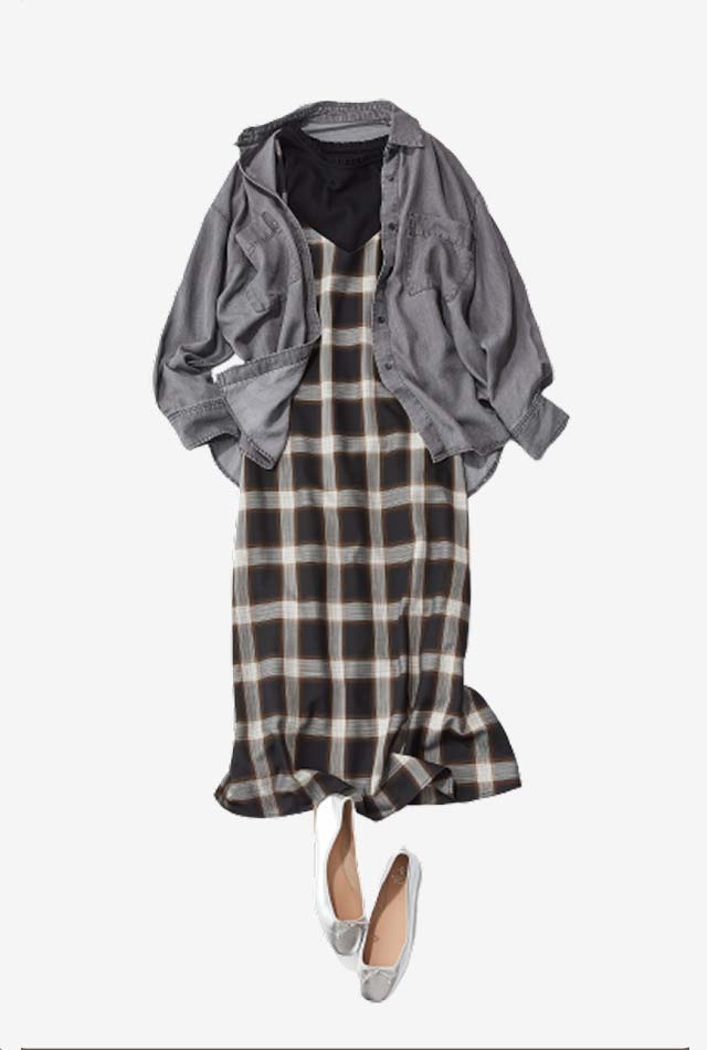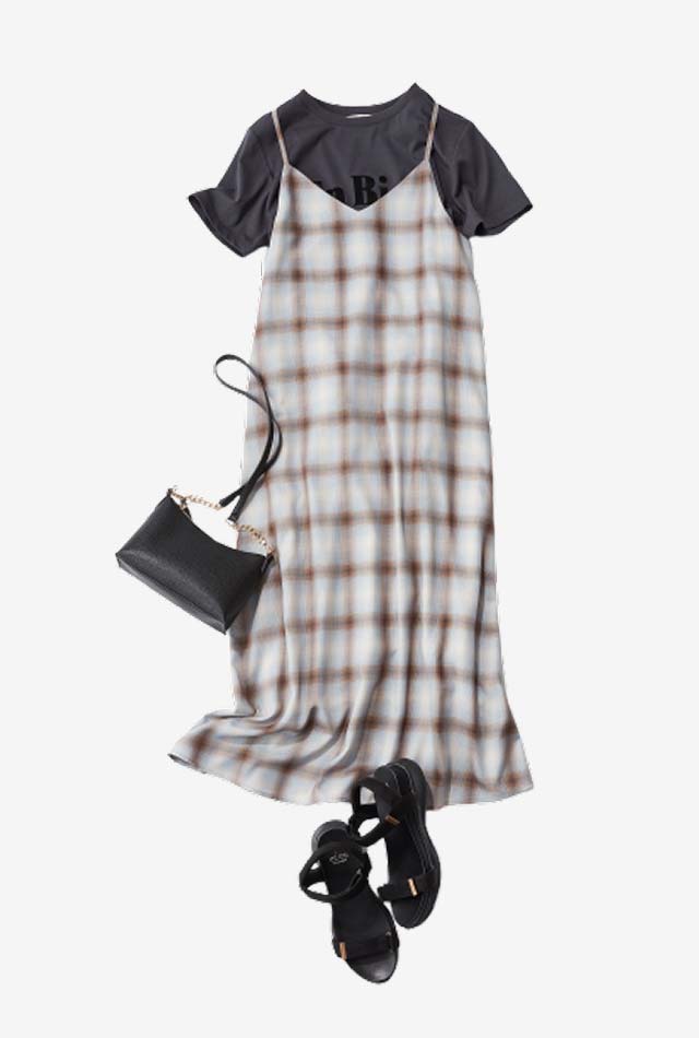 Tシャツに合わせるだけで楽々トレンドスタイルの完成。後ろ姿もかわいいキャミワンピはカジュアルアイテムも程よく上品にまとめてくれます。