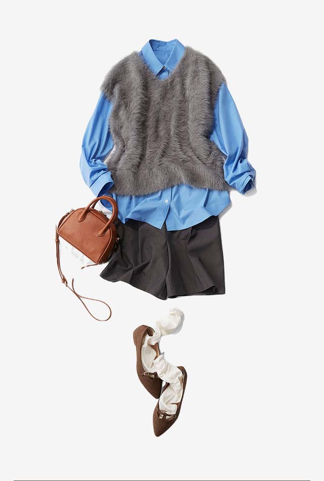着回し力満点のカラバリでどんなカラーアイテムともベストマッチ。オーバーシャツにはハーフパンツでプレッピーなトレンドスタイルが今年の気分。