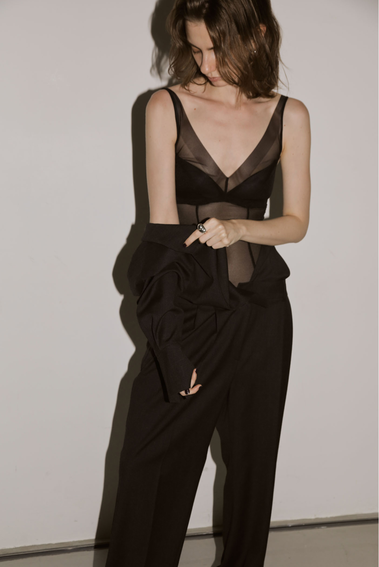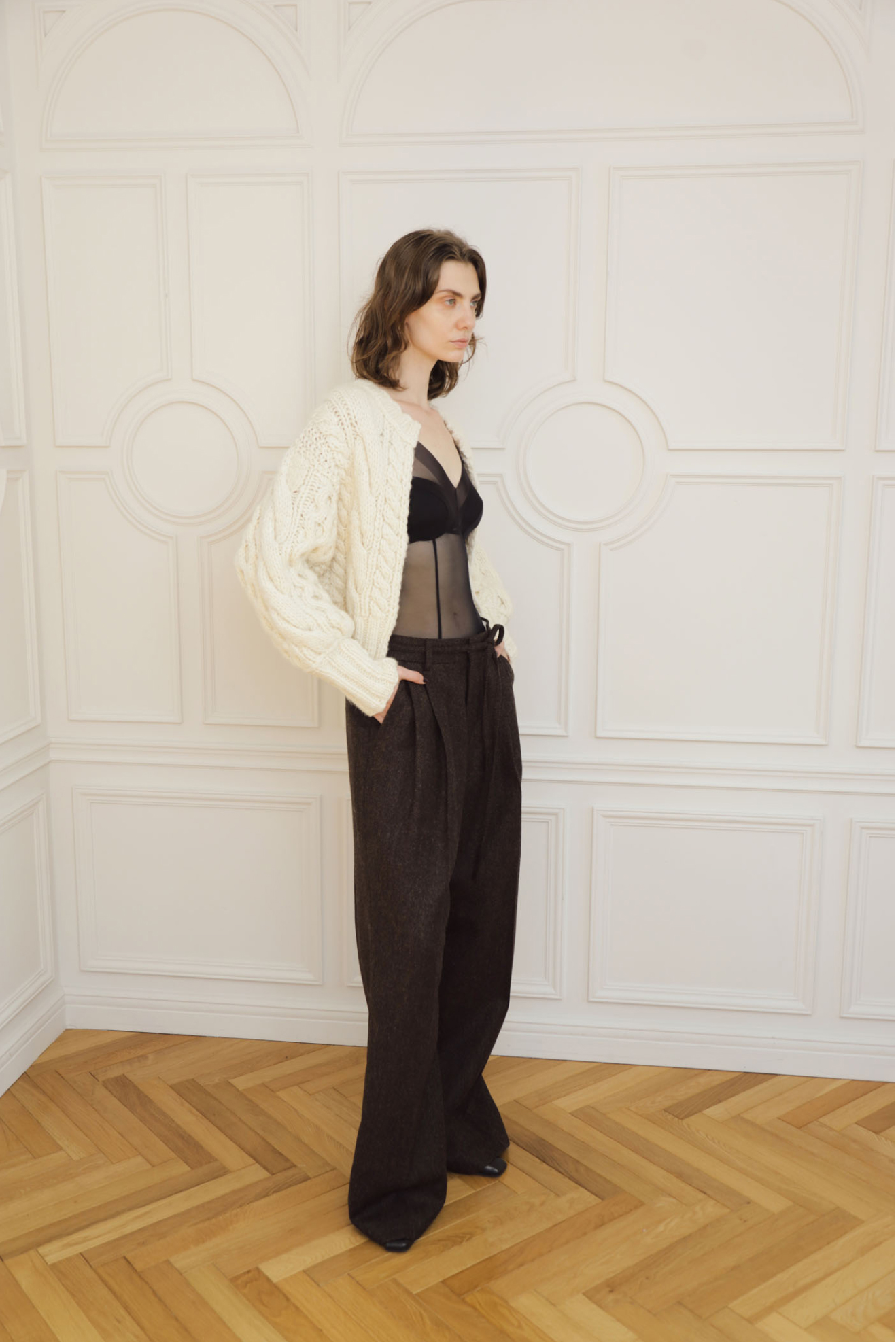 A sophisticated winter collection blending masculine textures with feminine details, expressing the brand's unique aesthetic through thoughtful negative space.