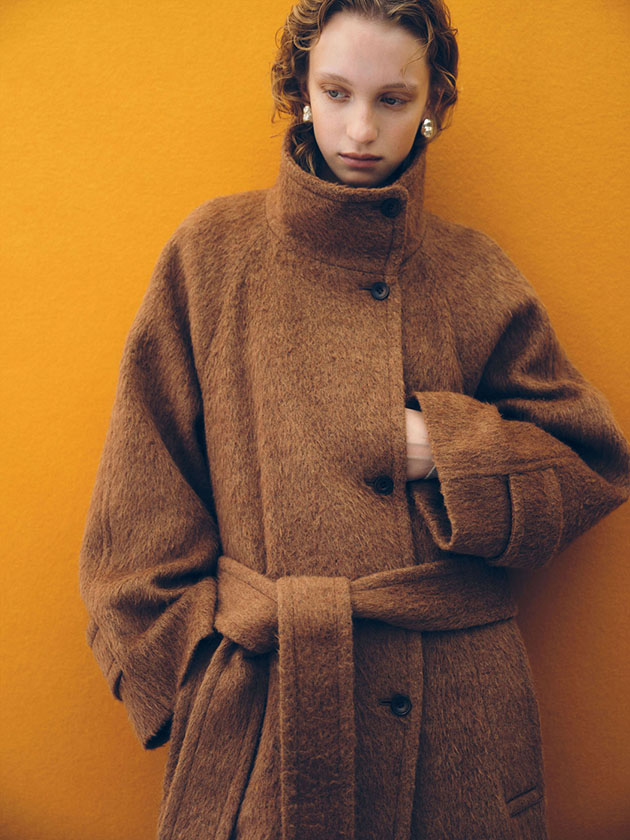 A mid-length wool bonded coat that elegantly colors the winter streets. With its excellent heat retention properties and sturdy bonded construction, this coat keeps you warm and comfortable even on cold days. The mid-length design offers a wide range of styling possibilities and pairs perfectly with both skirts and pants. The elegant silhouette enhances the charm of the mature woman.