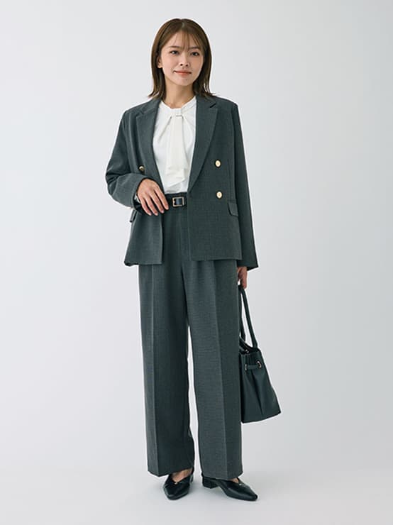 ジャケット同様、低身長さんもバランスよく穿けるサイズ・丈感のものをご用意。オンライン限定で長めの丈感のものもあるので、ご自身のぴったりサイズが見つかります。