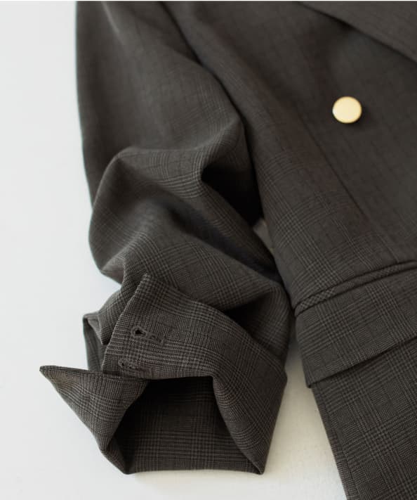 袖口を折り返す際、綺麗に見えるよう袖口の見返しを深めに設定。袖をまくりやすいよう見返しにしていて、折り返しても裏地が見えないのもポイント。