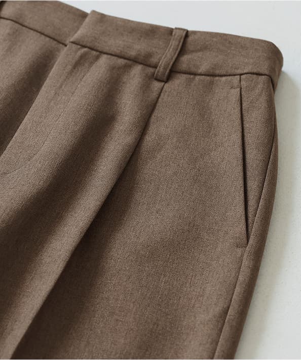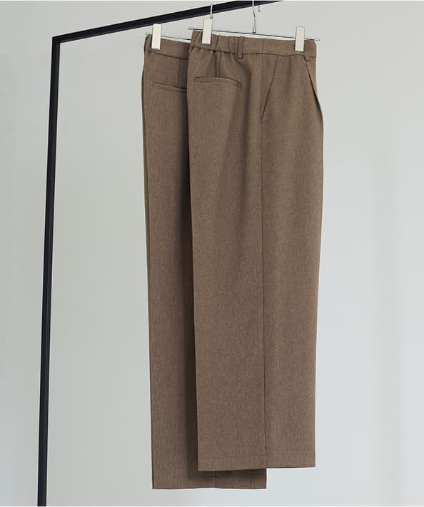 ジャケットとセットアップで着用したときに重くならない絶妙な裾幅に仕立てたストレートタックワイドパンツが登場。太すぎず、細すぎない塩梅のシルエットは、脚のラインをカバーしながら気になる下半身をすっきり見せてくれます。