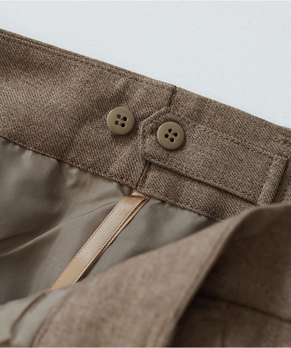 太幅のフロントタックで、広がりすぎないすっきりとしたシルエットを実現。ジャケット合わせでも上品なバランスになるようこだわったやや長めの丈感も、レディな印象をUPさせています。