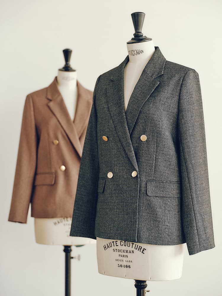 ロペピクニックのシグネチャーアイテムとも言える大人気の金ボタンジャケット。裏地が2/3ほどカットされた背抜き仕立てなので通気性が良く、暑さの残る秋口のアウターとしても重宝します。スタンダードなデザインで、ロングシーズン着用できるのも人気の秘密です。