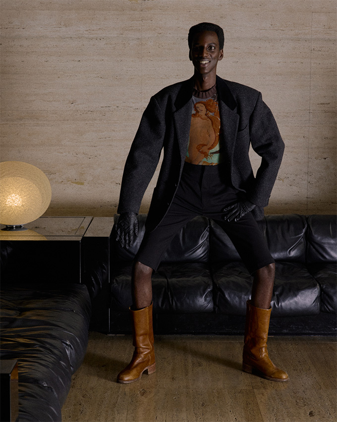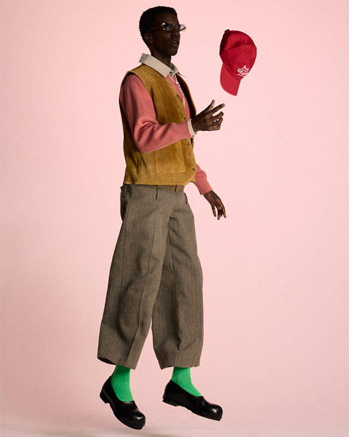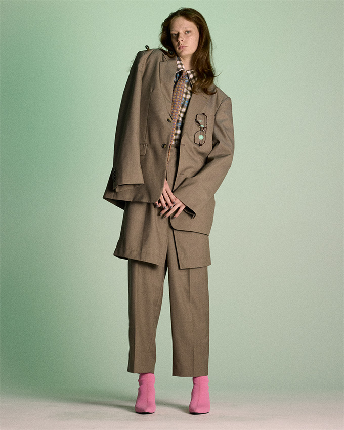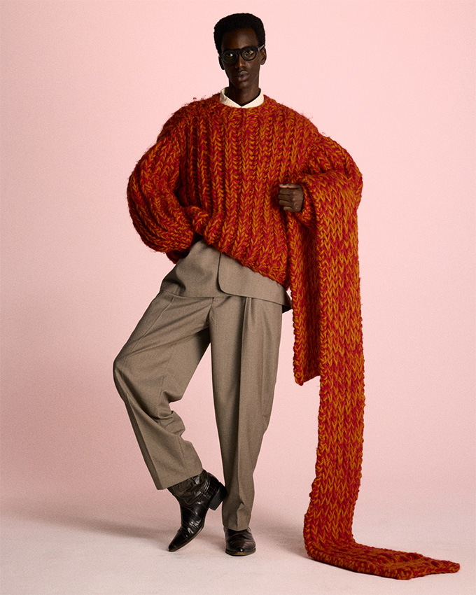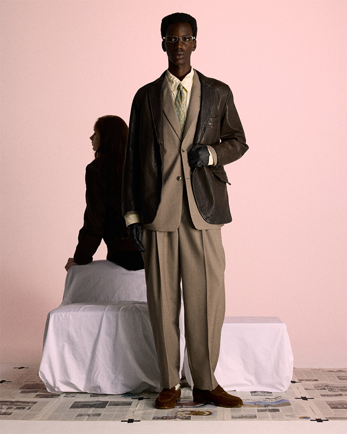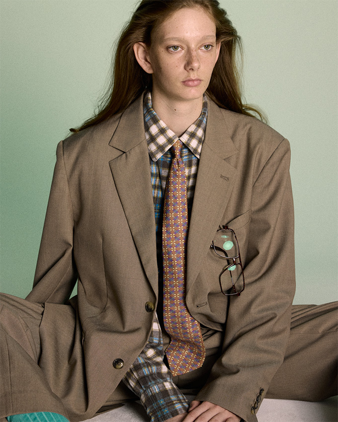 また、ブランドの核である「性差のないファッション」にも焦点を当て、かつて“紳士服”とされたアイテムを、誰もが自由に着こなせるスタイルへとアップデート。ジャケットやシャツなどのクラシックなピースを、フォルムや素材の工夫でジェンダーに縛られない表現へと昇華しました。