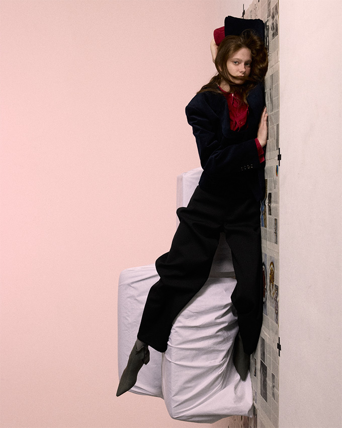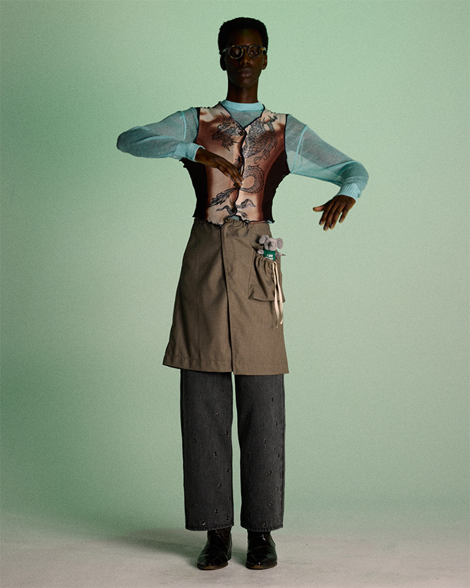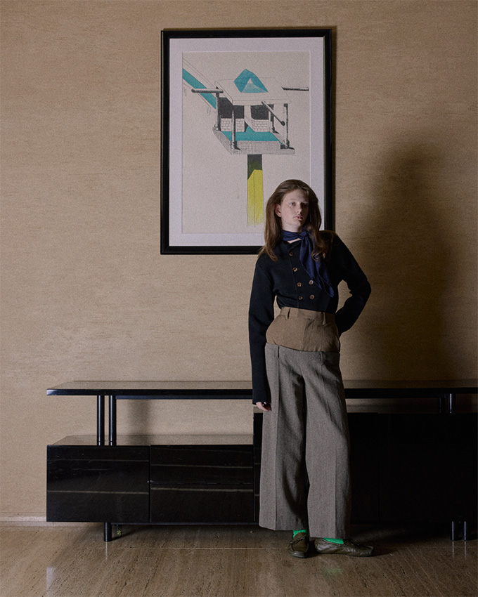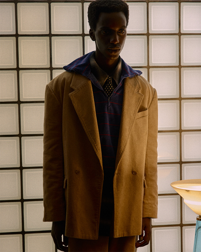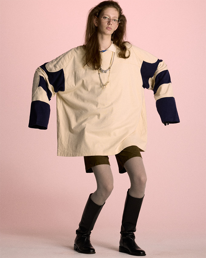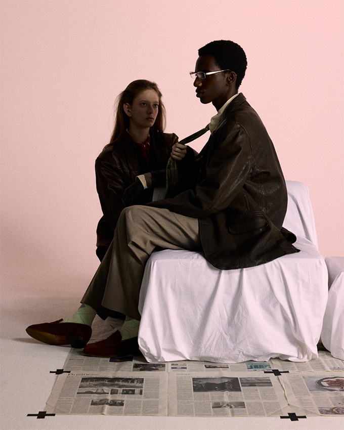 また、ブランドの核である「性差のないファッション」にも焦点を当て、かつて“紳士服”とされたアイテムを、誰もが自由に着こなせるスタイルへとアップデート。ジャケットやシャツなどのクラシックなピースを、フォルムや素材の工夫でジェンダーに縛られない表現へと昇華しました。