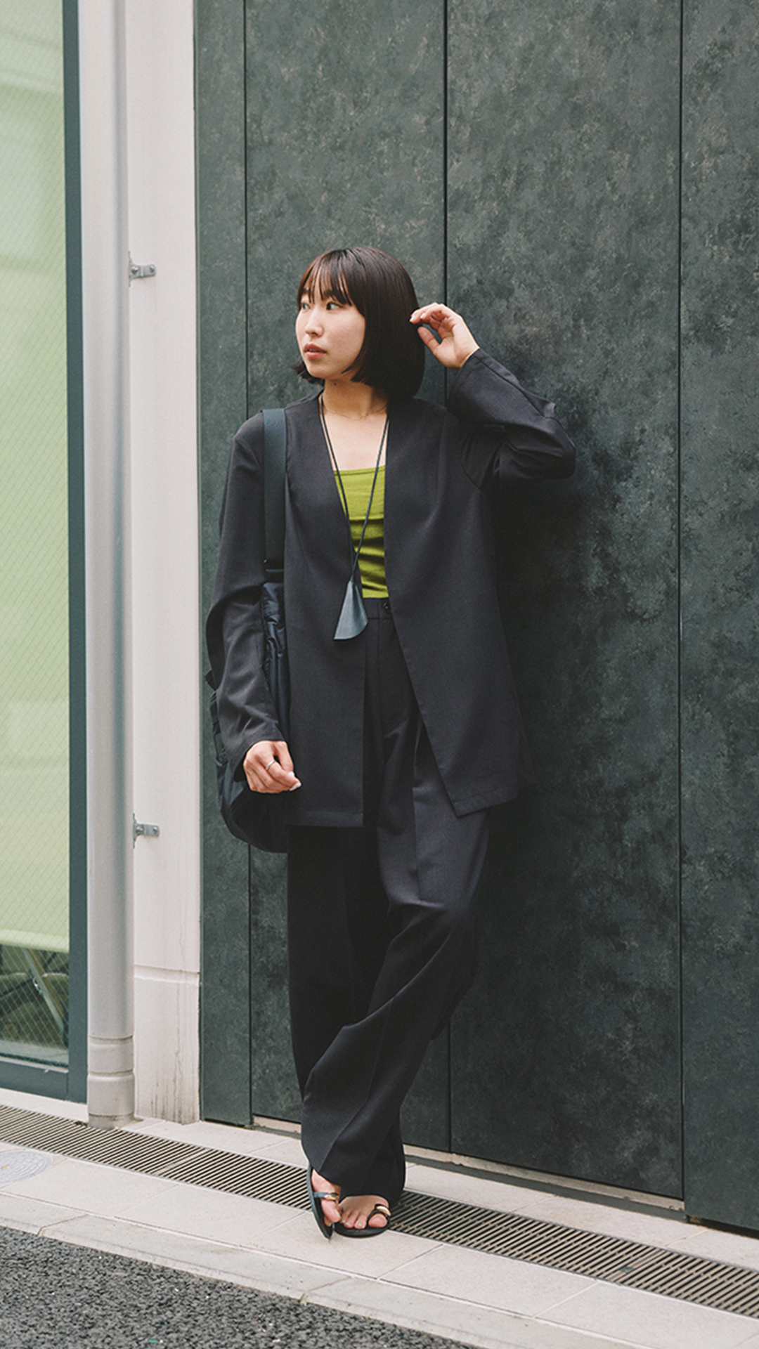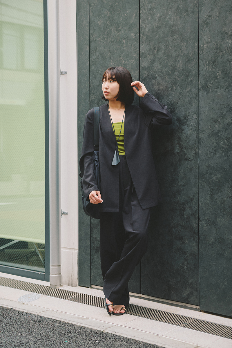 COVEROSS-COLLARLESS JACKET×EASY SLACKS