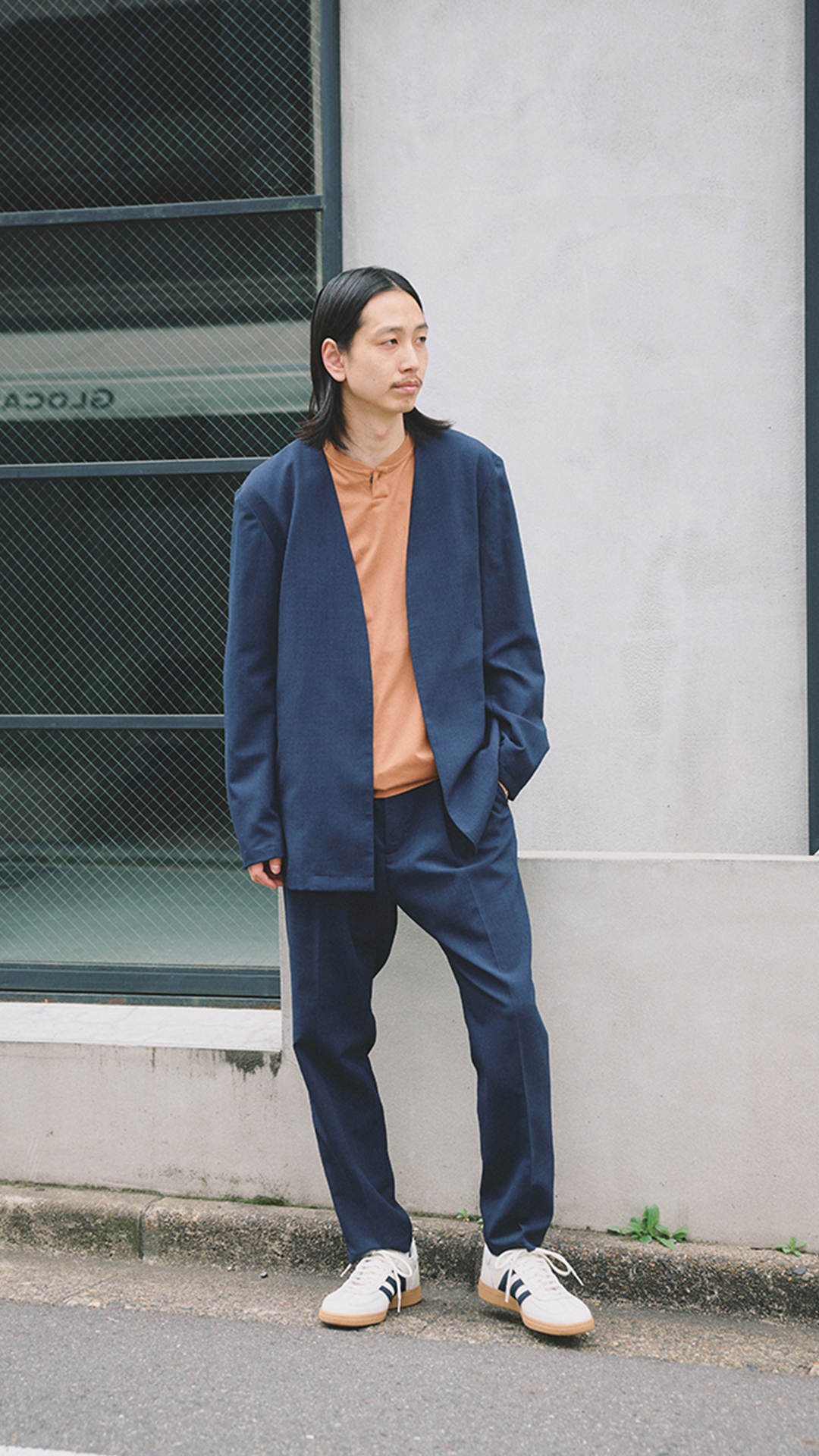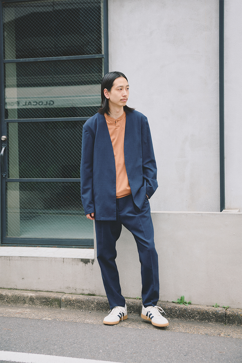 SET UP:COVEROSS-COLLARLESS JACKET×EASY SLACKS