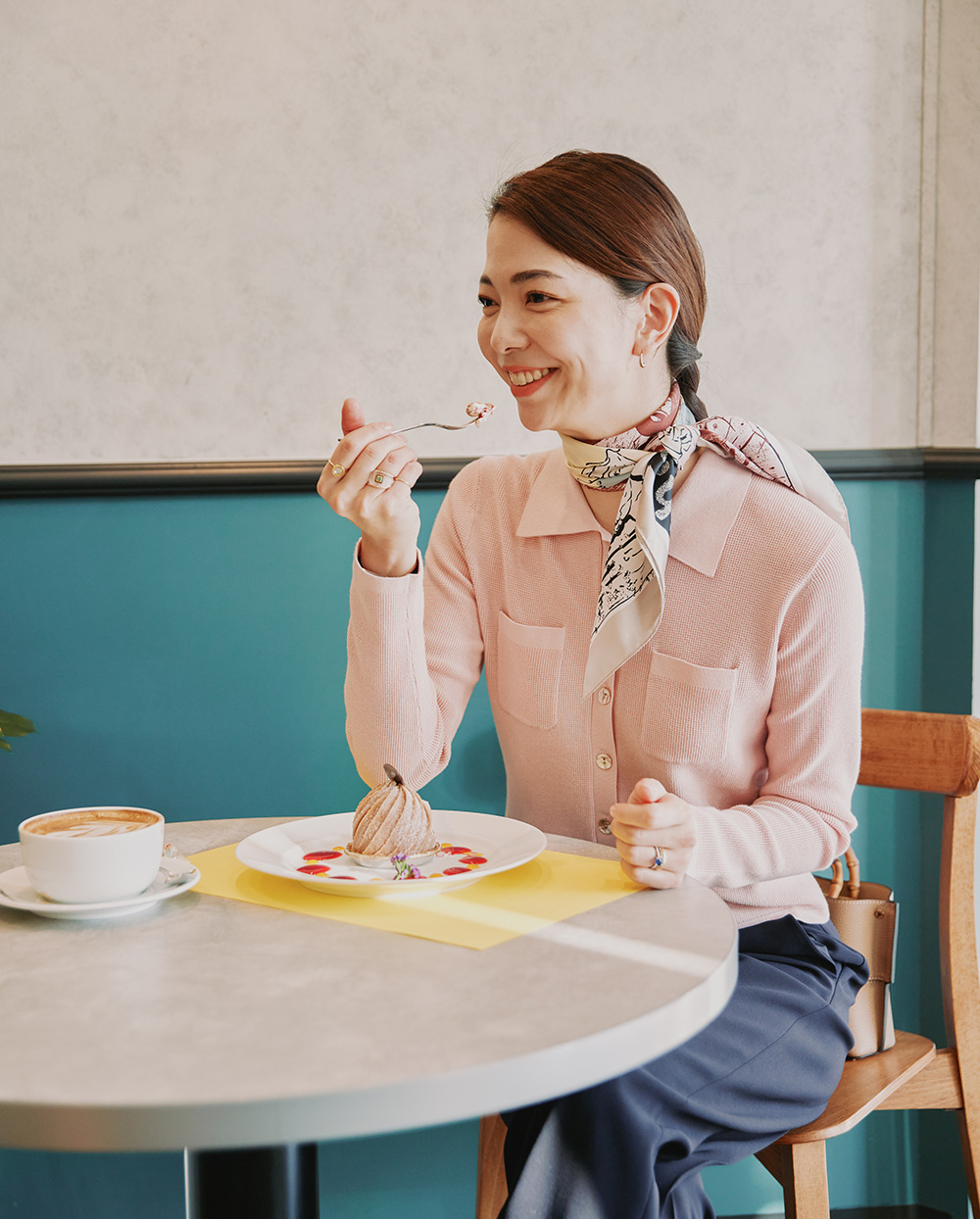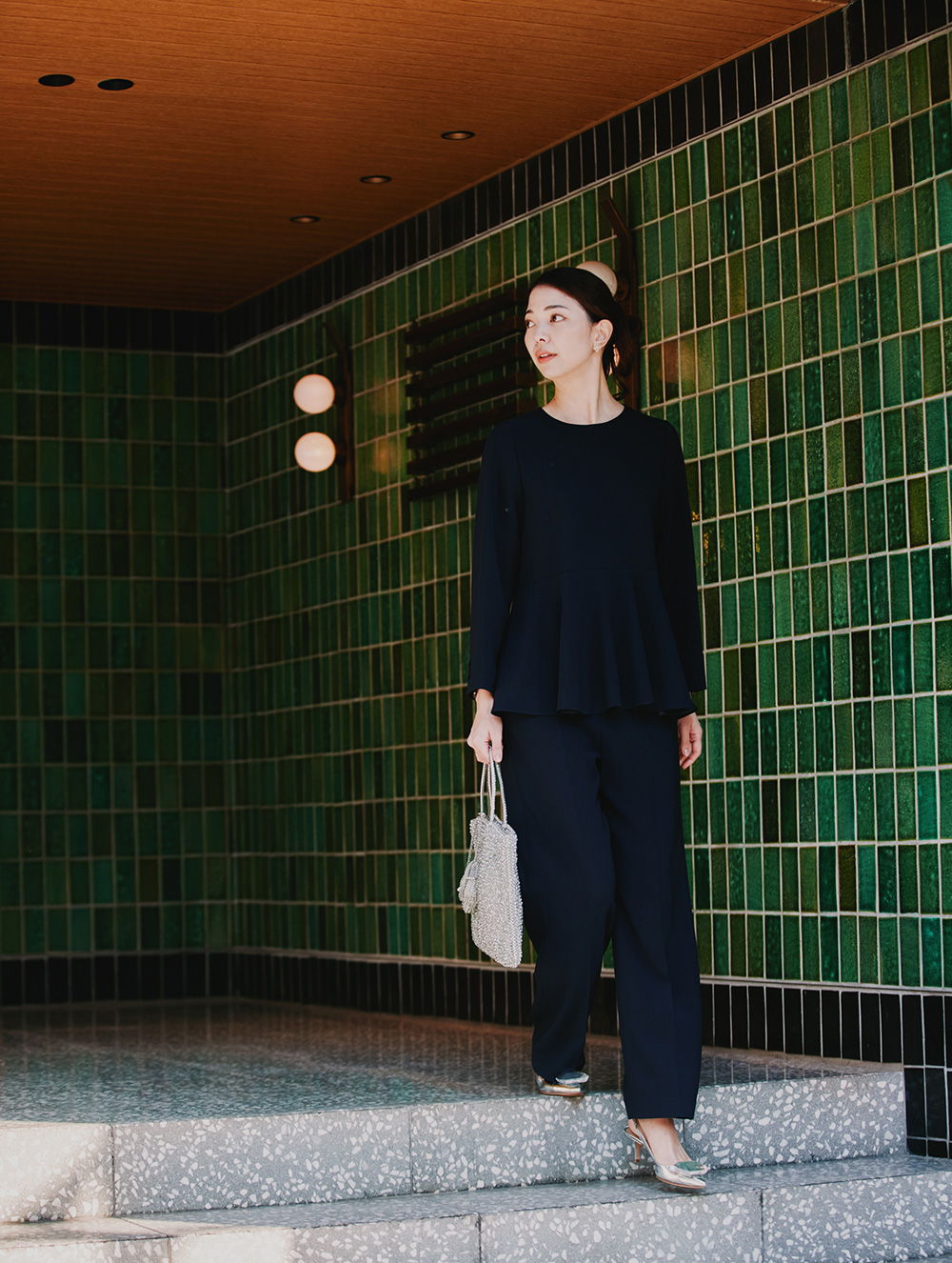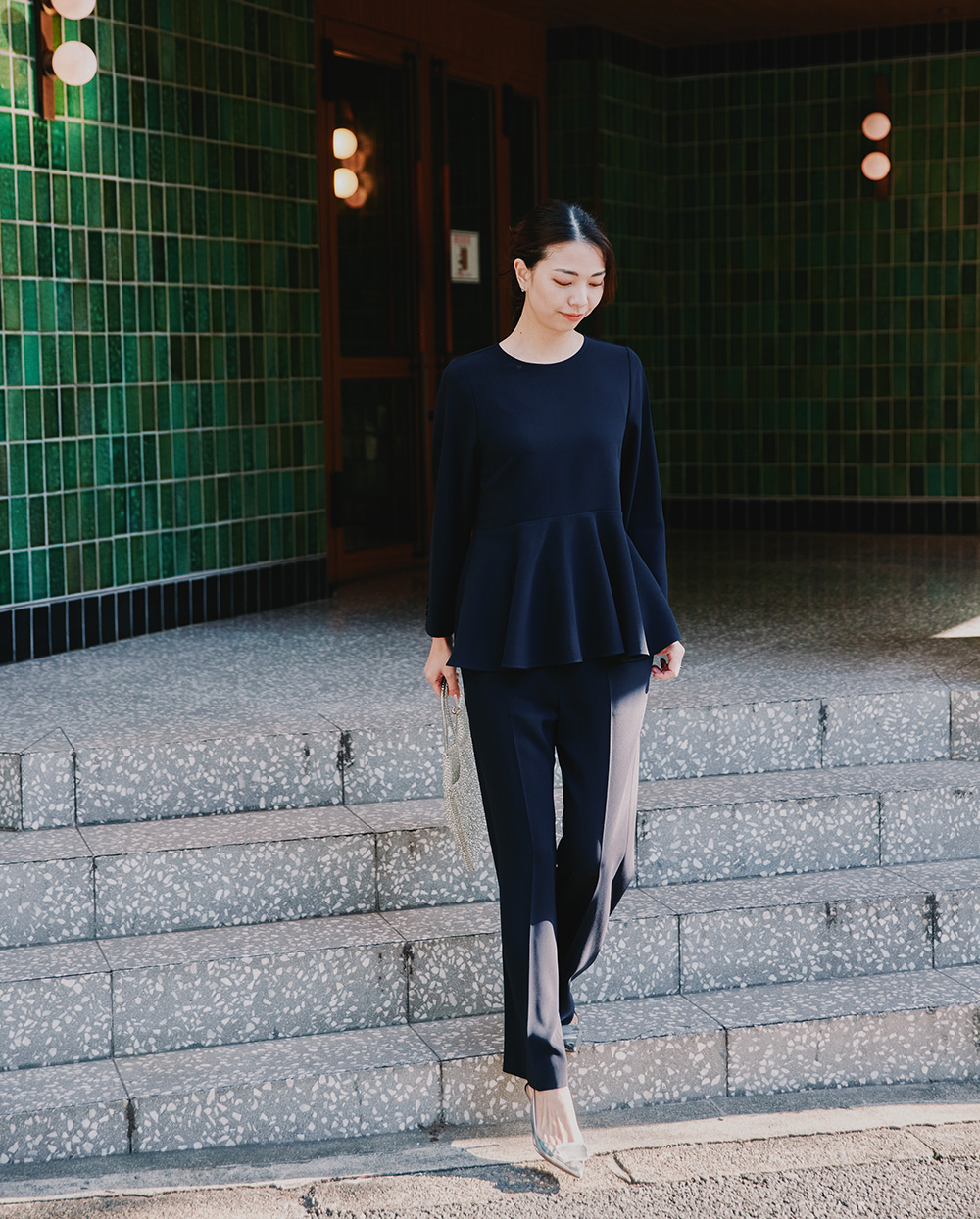 普段は少しマニッシュでシックな装いが好きなので、セレモニーの場ではそこにほんのひとさじの上品さを加えることを意識しています。