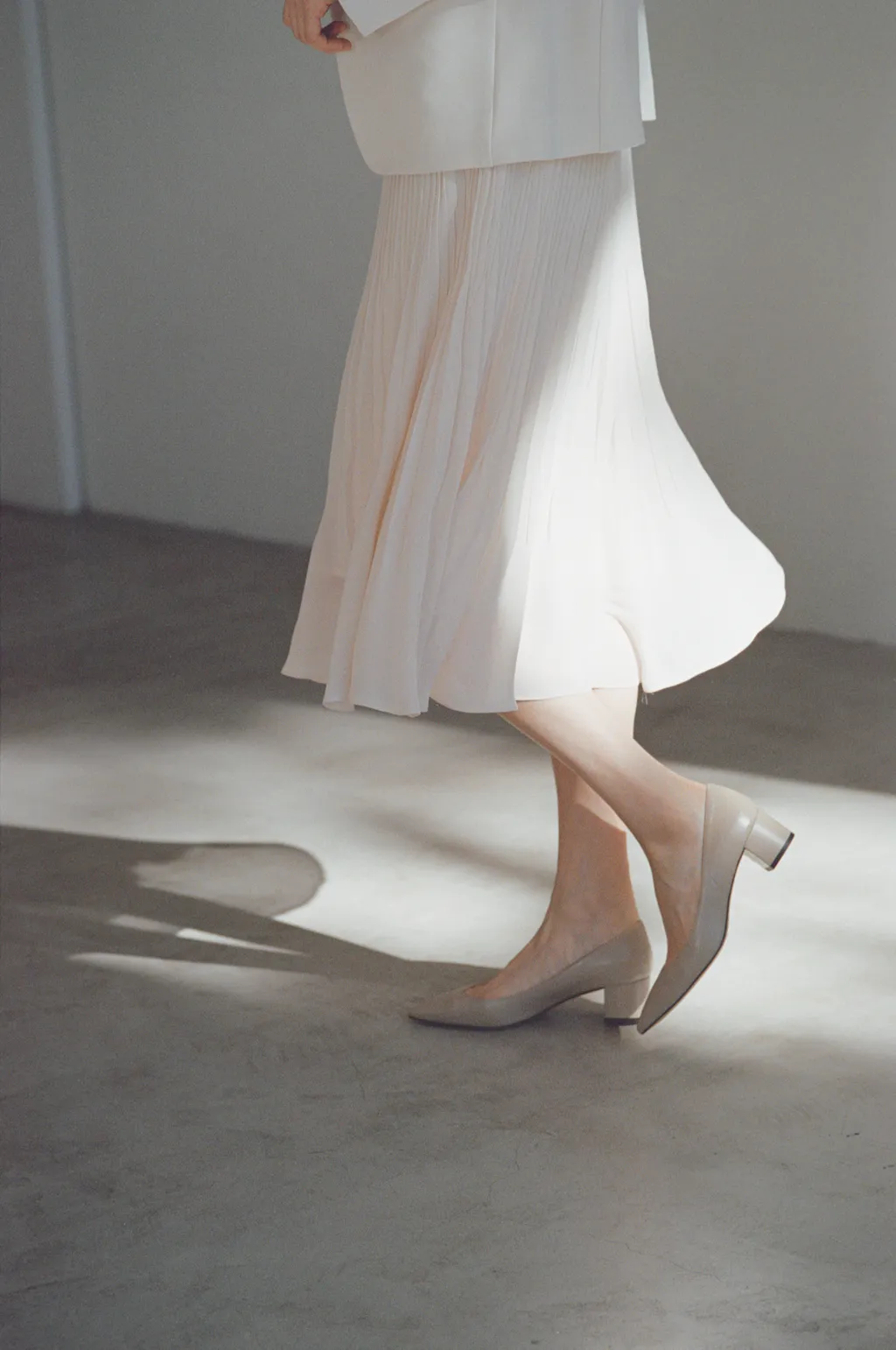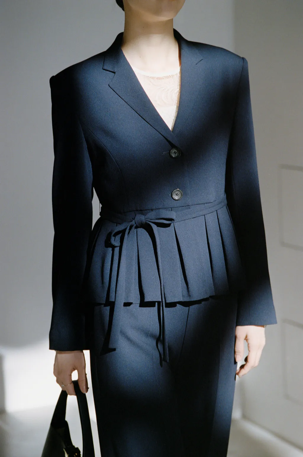 ボックスプリーツをあしらった、存在感のあるペプラムシルエットが印象的。落ち感のあるワイドパンツと合わせれば、構築的でデザインコンシャスなセットアップに。しなやかなジョーゼット素材が季節を問わず心地よく着用でき、フォーマルにもオフィスシーンにも自然に寄り添います。